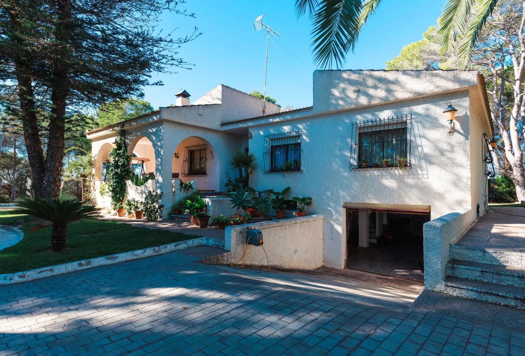 En una posición elevada en Orihuela Costa, esta finca ofrece una privacidad excepcional y una conexión única con la naturaleza. La propiedad se extiende sobre 7.000 m², parte ocupada por un pinar maduro que aporta frescura y sombra, junto a frutales y un césped natural que realzan el auténtico ambiente mediterráneo. La residencia, con una superficie construida de aprox. 230 m² incluyendo patio y garaje subterráneo, fue edificada en los años 80 con una solidez atemporal. Dispone actualmente de 3 dormitorios, 1 baño, y amplias zonas de estar que se abren a las terrazas exteriores. La piscina privada invita al descanso, con vistas al paisaje circundante y al mar en el horizonte. La finca cuenta además con suministro propio de agua gratuita para el riego y la piscina — un recurso valioso que garantiza bajos costes de mantenimiento y un jardín siempre verde durante todo el año. A pesar de su entorno natural, la propiedad disfruta de proximidad inmediata a la infraestructura social y técnica, a zonas de compras y ocio, y se encuentra a tan solo 5 minutos en coche de las playas de Orihuela Costa. Una propiedad que combina la tranquilidad de un refugio natural con la comodidad de la vida costera — una oportunidad discreta para quienes buscan espacio, privacidad y autenticidad en la Costa Blanca. En un futuro próximo está prevista la modificación de la clasificación y del uso permitido del terreno, pasando de “rústico” a “suelo urbano”, lo que aumentará de forma considerable su potencial y valor.