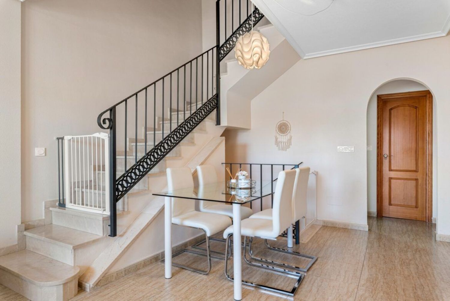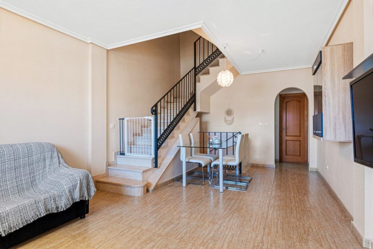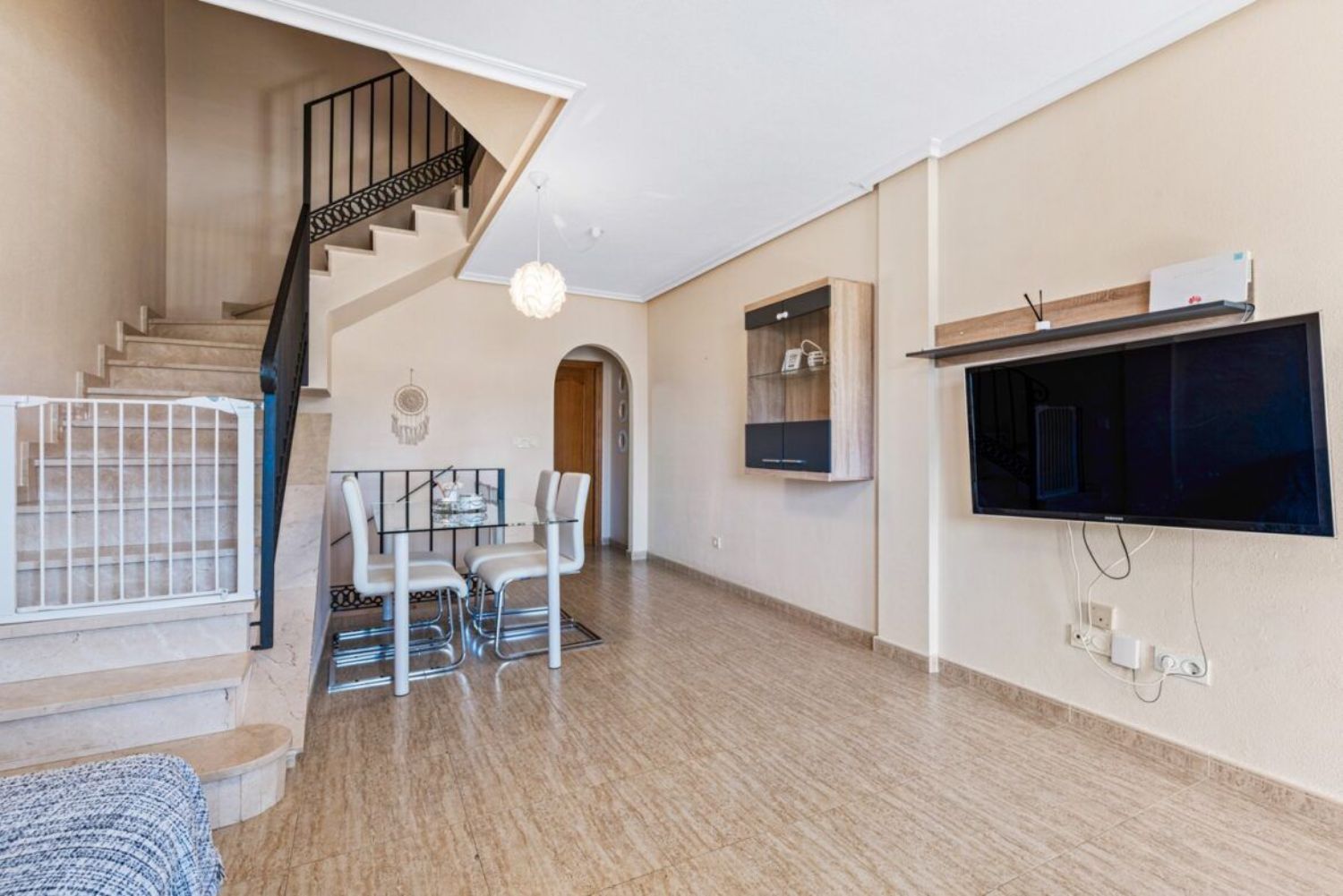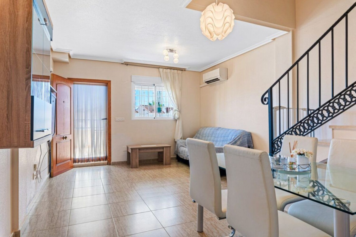 Le traemos a la venta esta rara oportunidad en la solicitada zona del pueblo de Torremendo, esta encantadora casa adosada de 3 niveles con orientación sur.13;13;En la planta baja hay una zona de recepción con terraza exterior, amplio salón, cocina independiente, aseo nbsp; y lavadero de la cocina. Subiendo las escaleras encontrará 2 dormitorios dobles, un baño familiar, muchos armarios empotrados y una bonita terraza al aire libre con impresionantes vistas al campo y a la piscina. Las escaleras conducen al solarium bañado por el sol con más vistas y perfecto para tomar el sol con privacidad.13;13;Desde la sala de estar de abajo hay acceso interno a través de escaleras al garaje subterráneo con amplio espacio no sólo para el coche sino también para guardar cosas.13;13;El IBI es de 300€ al año y los gastos de comunidad de 600€ al año.13;13;La propiedad se beneficia de aire acondicionado y viene amueblada y con electrodomésticos.nbsp; - Adosado - Alicante, Torremendo - Superficie 132 m².