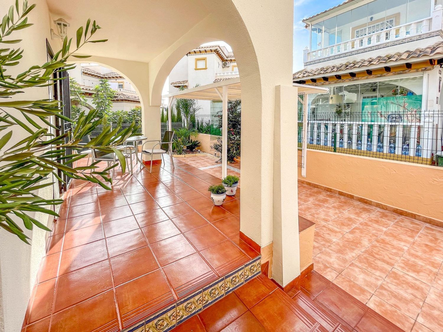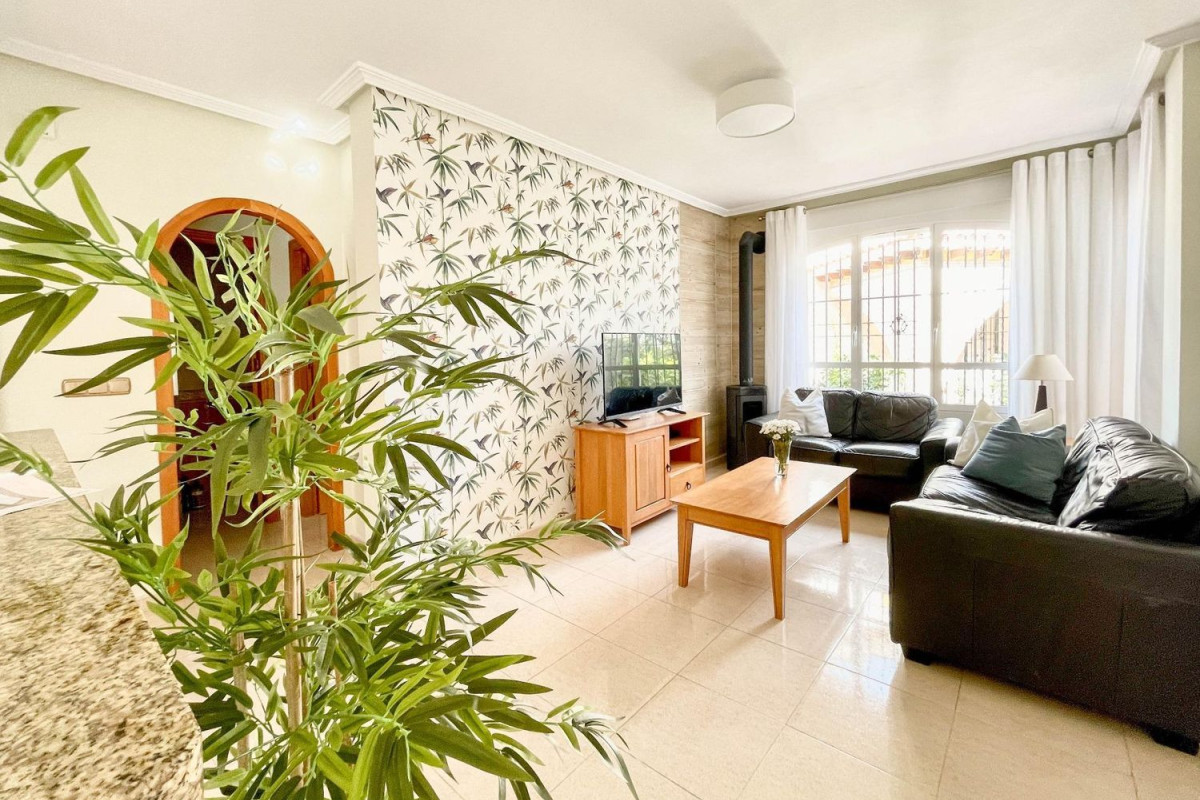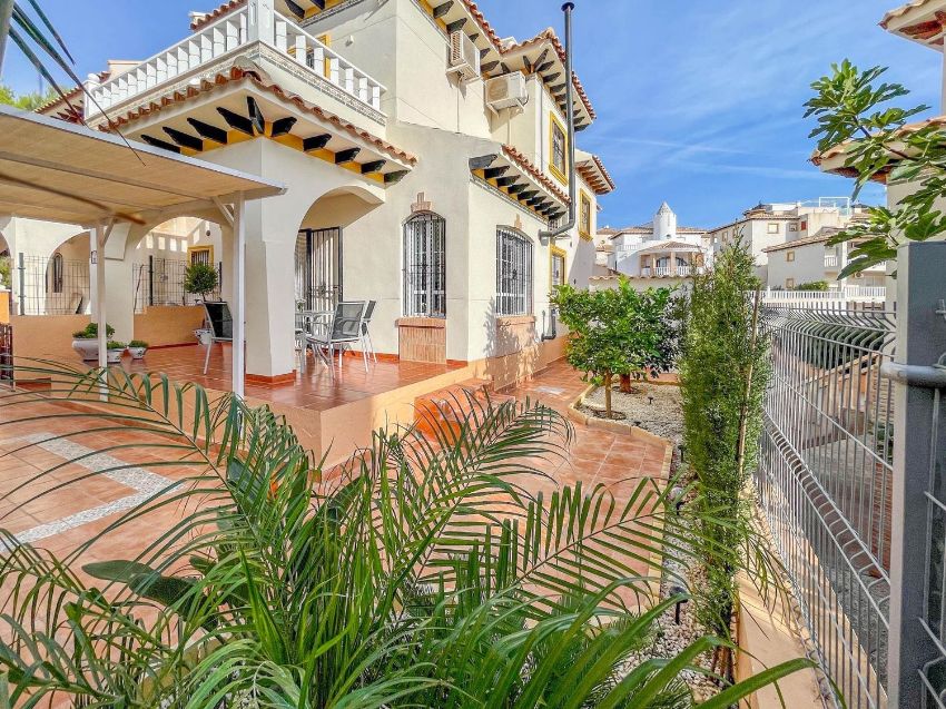 Os presentamos este adosado distribuido en 2 plantas mas solárium privado. Cuenta con 3 amplios dormitorios, 2 baños, salón con chimenea y cocina americana totalmente equipada. Dispone de balcón, solárium y jardín de 60 metros. También en la parte exterior hay un trastero y zona ajardinada. En la parcela hay suficiente espacio para un coche. La vivienda está muy bien equipada y ha sido renovada recientemente, dispone de aire acondicionado y calefacción en todos los dormitorios y salón. Está orientada al sur por lo que se puede disfrutar de fantásticos días soleados en el jardín. El residencial tiene piscina comunitaria.. . Lomas de Cabo Roig está cercana a todo tipo de servicios como restaurantes y tiendas, así mismo el Centro Comercial Zenia Boulevard está a tan solo 5 minutos en coche, así como las playas de Orihuela Costa y Torrevieja.