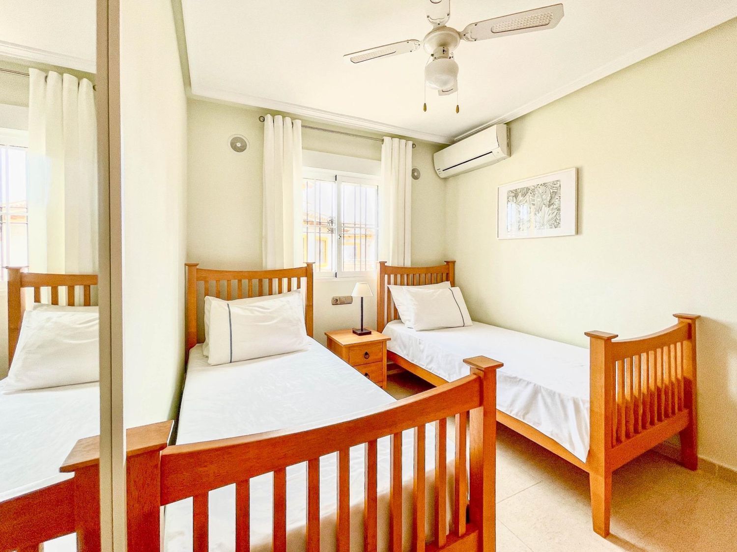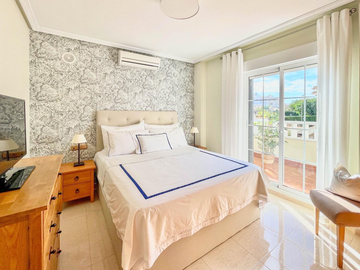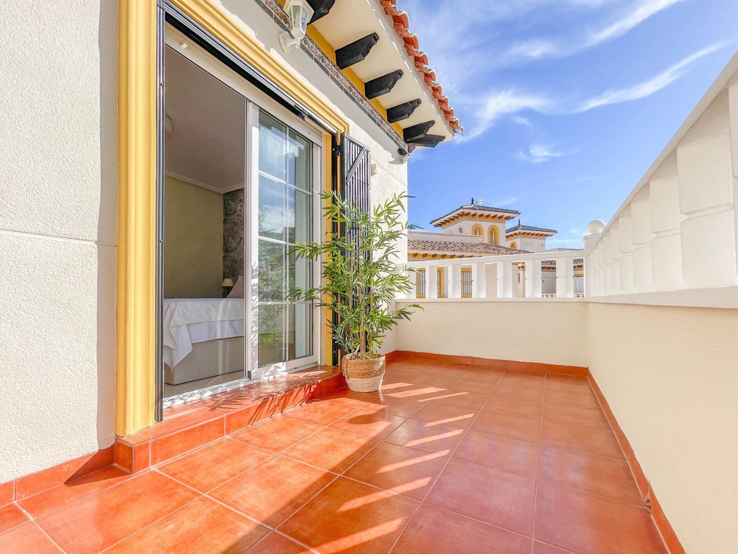 Os presentamos este adosado distribuido en 2 plantas mas solárium privado. Cuenta con 3 amplios dormitorios, 2 baños, salón con chimenea y cocina americana totalmente equipada. Dispone de balcón, solárium y jardín de 60 metros. También en la parte exterior hay un trastero y zona ajardinada. En la parcela hay suficiente espacio para un coche. La vivienda está muy bien equipada y ha sido renovada recientemente, dispone de aire acondicionado y calefacción en todos los dormitorios y salón. Está orientada al sur por lo que se puede disfrutar de fantásticos días soleados en el jardín. El residencial tiene piscina comunitaria.. . Lomas de Cabo Roig está cercana a todo tipo de servicios como restaurantes y tiendas, así mismo el Centro Comercial Zenia Boulevard está a tan solo 5 minutos en coche, así como las playas de Orihuela Costa y Torrevieja.