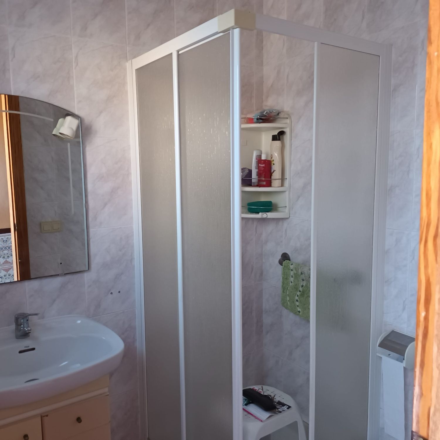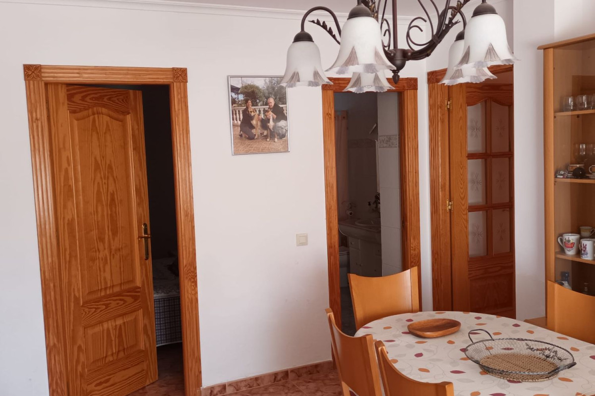 W rejonie San Vicente, w bliskim sąsiedztwie, znajduje się działka o powierzchni 500 m2, w pełni ogrodzona. Na posesji usytuowany jest dom o powierzchni około 150 m2, oferujący trzy przestronne sypialnie, łazienkę oraz oddzielne WC. Znajdziemy tu również przytulny salon z kominkiem, funkcjonalną kuchnię z dodatkową spiżarnią oraz patio z zewnętrzną kuchnią. Posesja posiada również mały ogród oraz przestrzeń całkowicie wyłożoną kostką, w tym garaż z automatyczną bramą, zadaszone miejsce na samochody oraz niewielki basen, który nie jest wyposażony w system filtracji. Nieruchomość utrzymana w dobrym stanie, gotowa do zamieszkania. Teren jest spokojny, z miłymi sąsiadami, a w pobliżu znajduje się miejscowość San Vicente, do której można dojść pieszo.