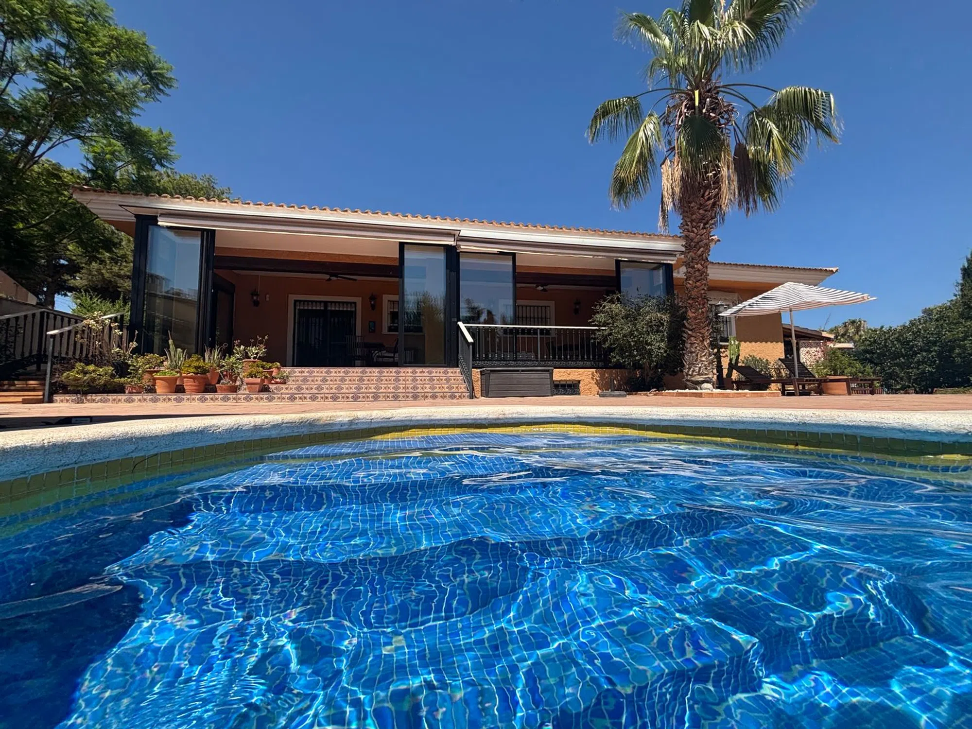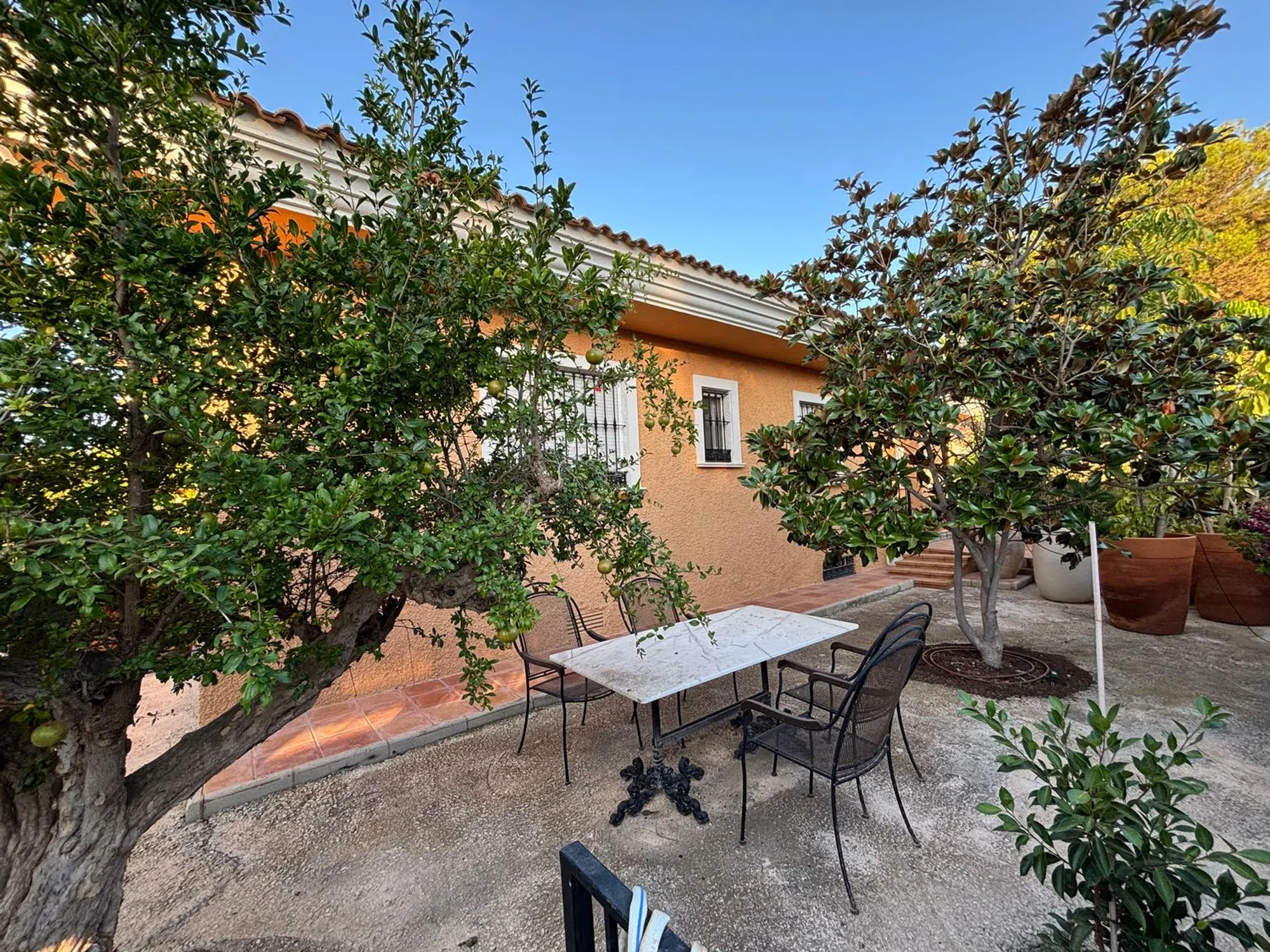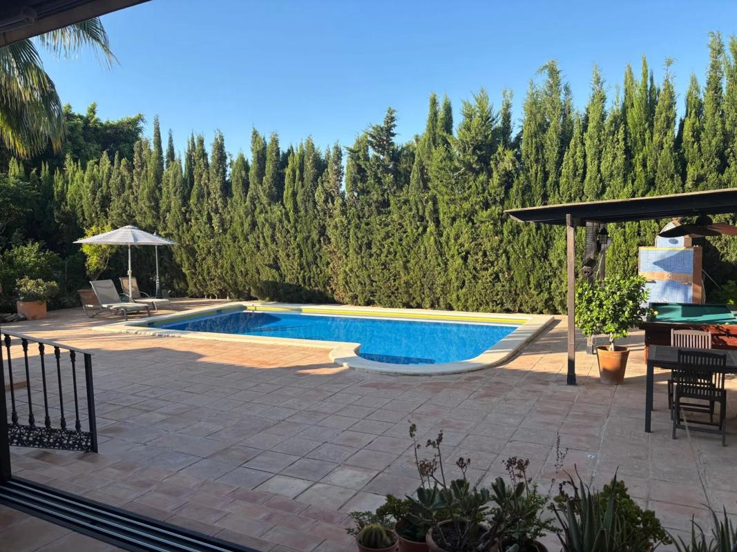Excepcional chalet independiente en una sola planta con detalles de calidad difíciles de encontrar en la provincia de Alicante. Destaca su amplio jardín soleado, con bonita piscina, zona de chill out y diferentes especies de plantas, arboles y flores. En esta zona exterior además existe un edificio anexo con una segunda cocina con horno de leña y un baño, además de una zona de barbacoa. Todo ello muy cuidado y agradable para disfrutar. Mirando al jardín se encuentra un práctico porche que por la orientación, dimensiones y su cerramiento móvil de alta calidad, proporciona un área aprovechable todo el año. La vivienda principal consta de amplio salón con chimenea de mármol, 4 habitaciones, una de ellas con vestidor y baño en suite, gran cocina y un tercer cuarto de baño (2 interiores y uno en zona exterior). En el semisótano hay un estudio loft multiusos, así como un práctico trastero. La parcela está localizada a pocos metros de una parada de bus y de las tiendas de Los Girasoles La calefacción por radiadores con caldera de gasoil exterior, el aire acondicionado en splits repartidos por varias áreas de la casa, los toldos eléctricos y la calidad de los materiales de la construcción interna y externa, completan una oferta excepcional. ABSTENERSE AGENCIAS POR FAVOR.
