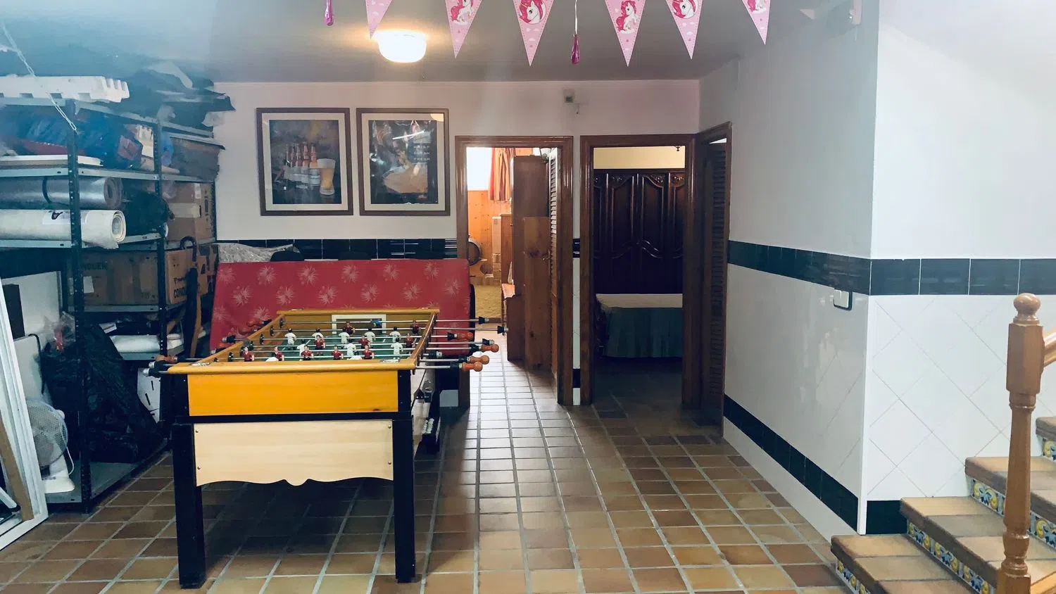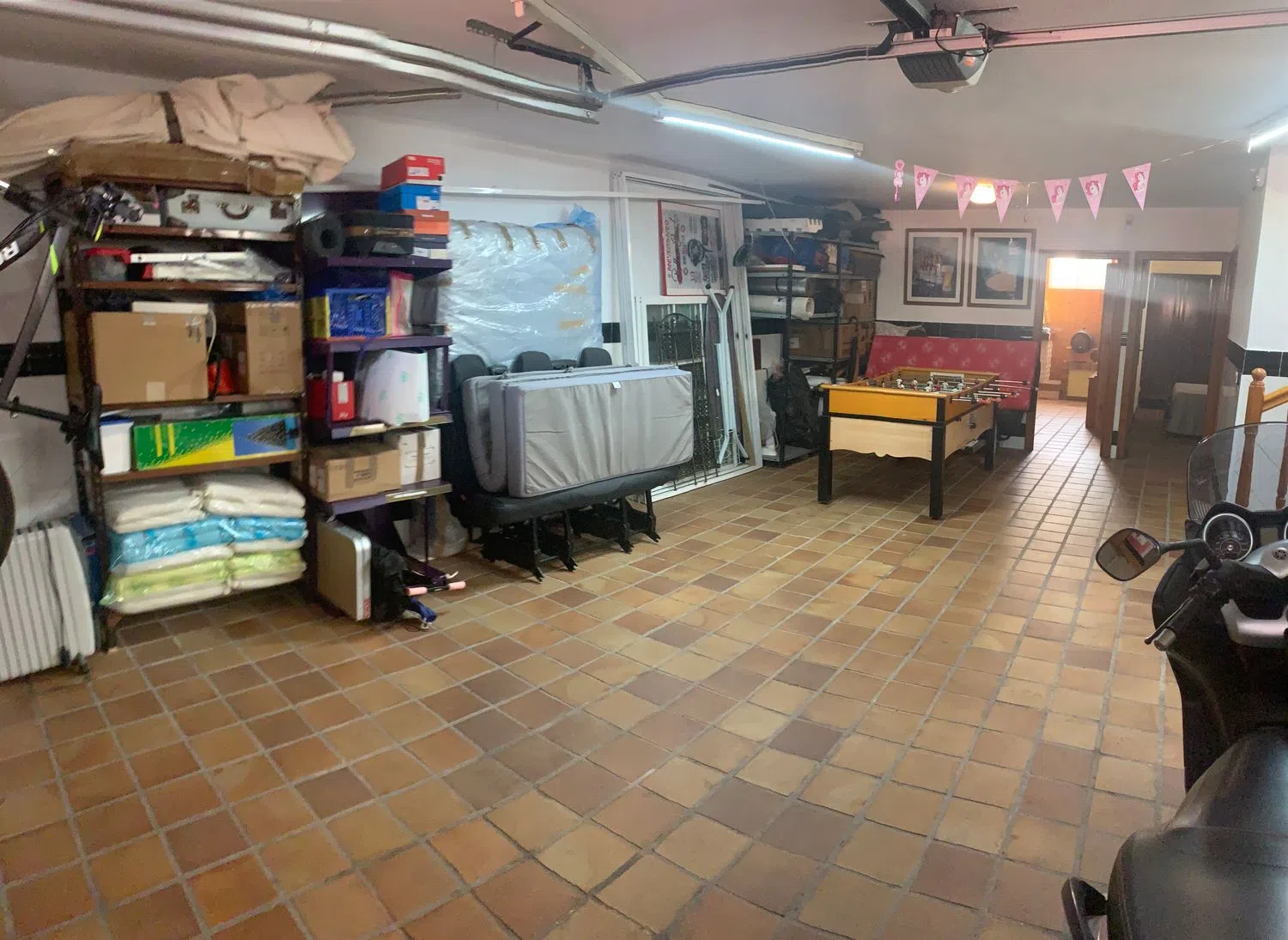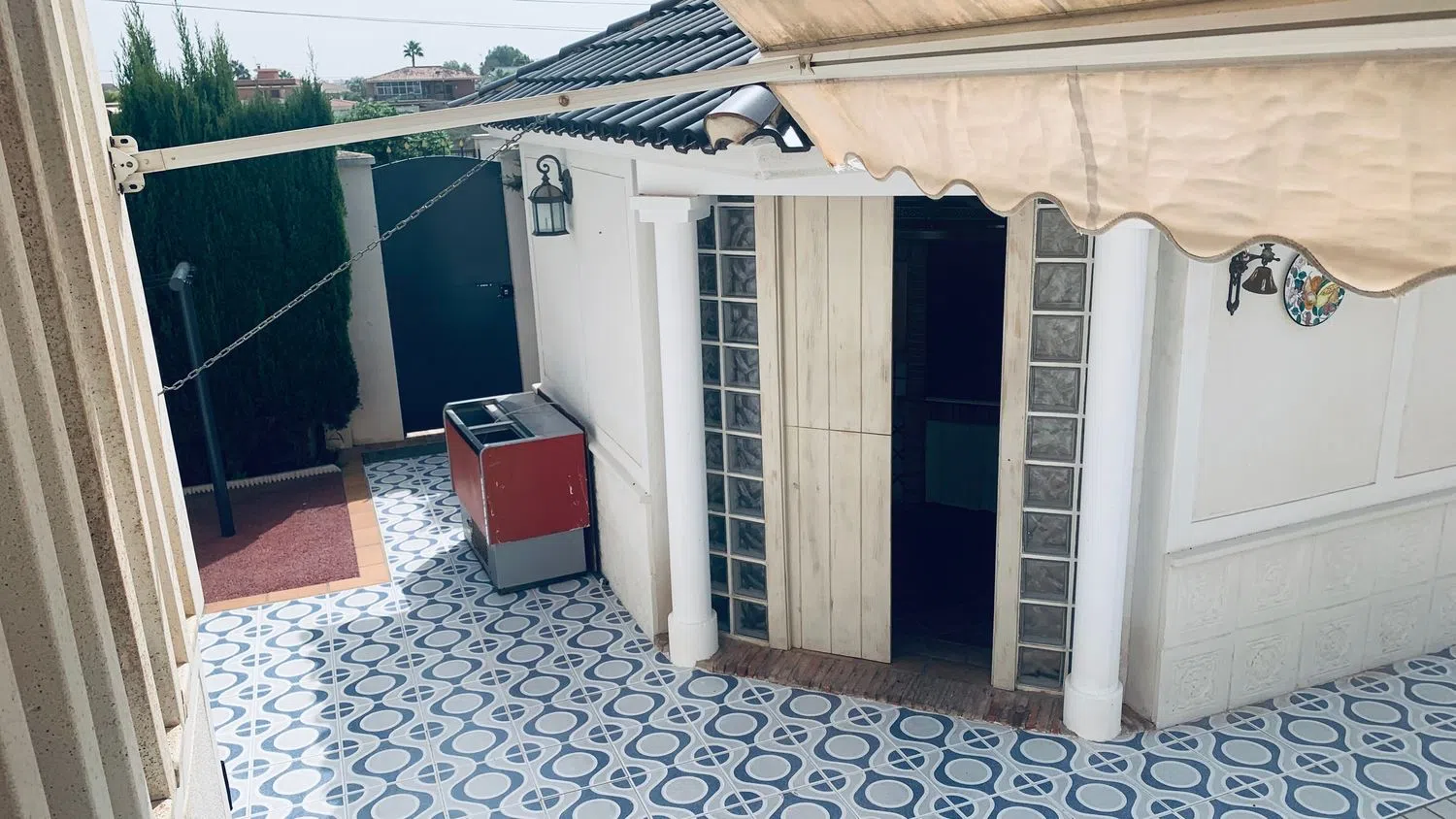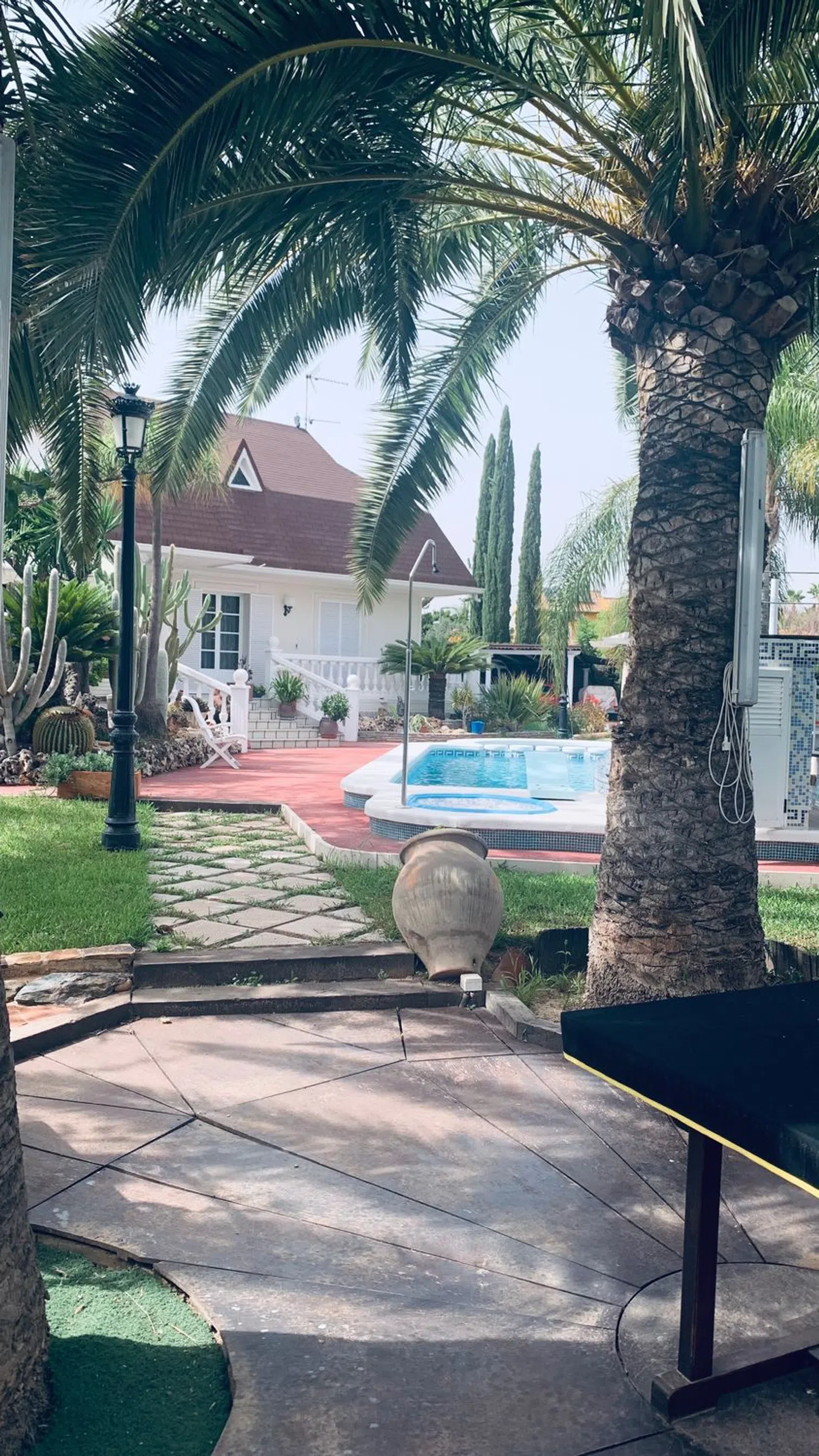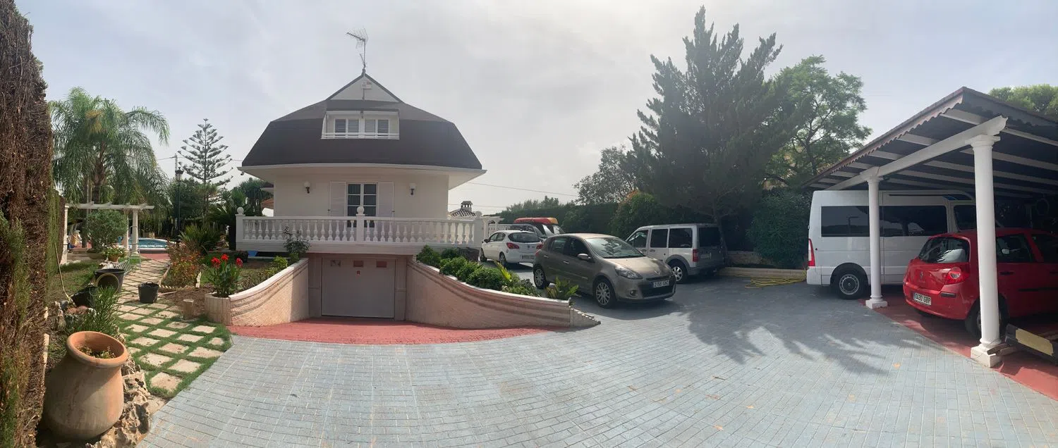 Amplio chalet dividio en 3 plantas. En la planta -1 hay un gran trastero, un garaje con capacidad para varios vehículos, un baño completo y dos habitaciones, una de ellas con chimenea. En la planta 0 hay una cocina con galería y terraza, chimea, un baño completo y un gran comedor con dos alturas. En la planta 1 hay dos habitaciones dobles, una de ellas con aseo en suit, dos habitaciones individuales, un baño con jacuzzi. La casa dispone de aire acondicionado por conductos. El exterior cuenta con un patio andaluz con una cocina independiente en la que hay un horno de leña y barbacoa. Parking techado con acceso a un segundo trastero. Jardín con césped, palmeras y cactus. Zona Chill out con barra que queda detrás de una piscina que cuenta con tobogán, trampolín y ducha.