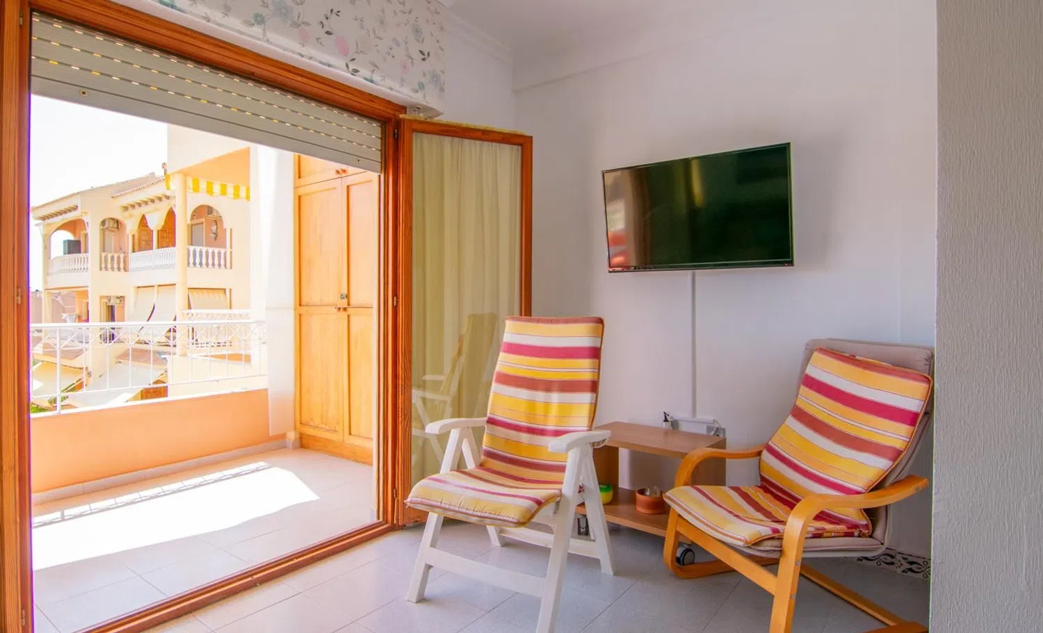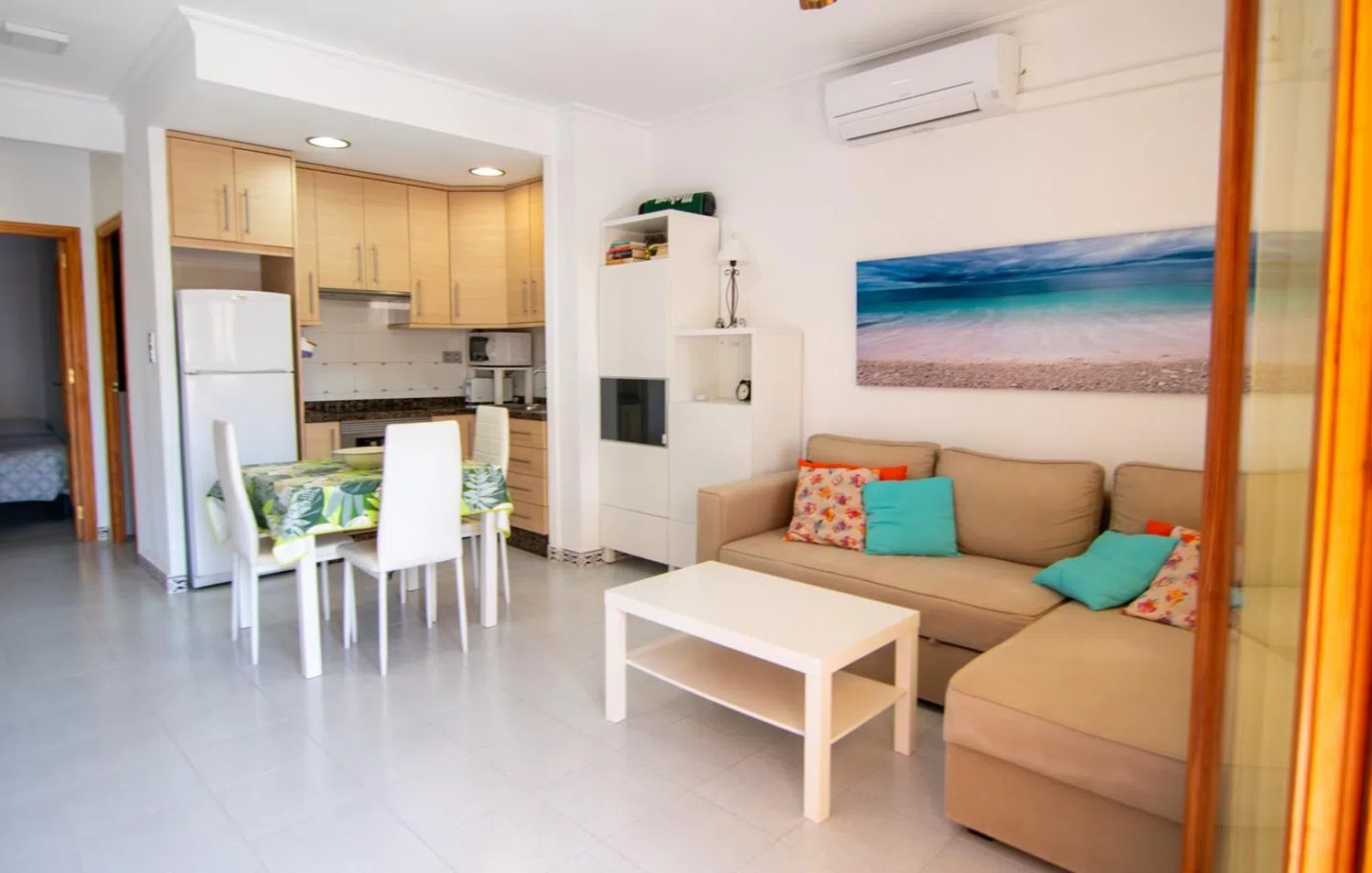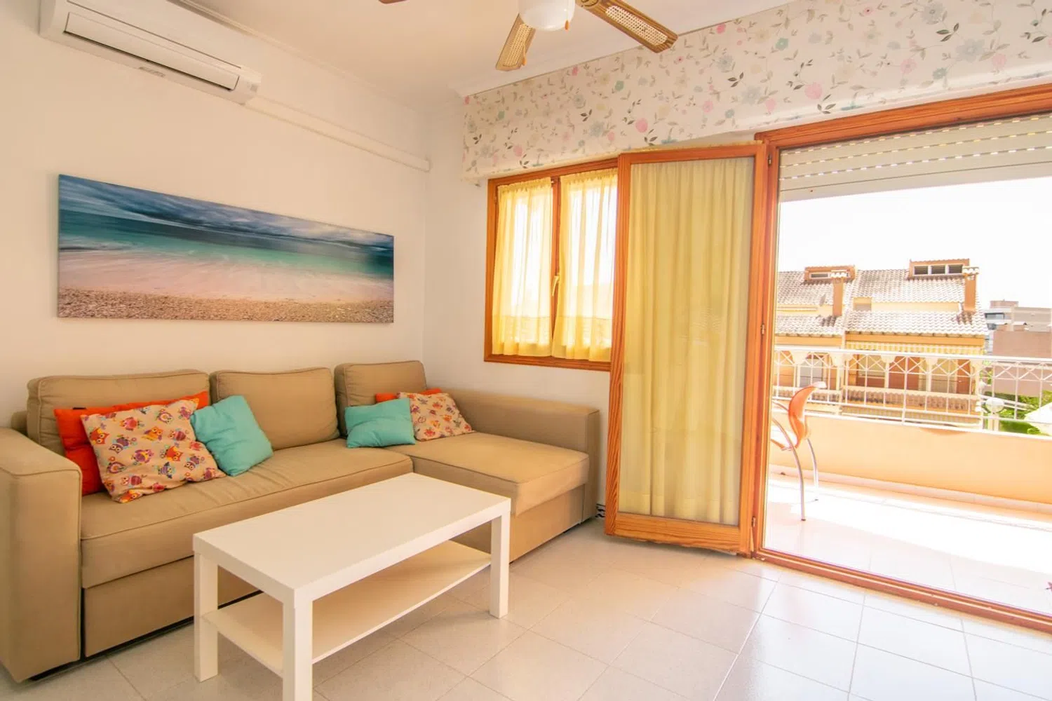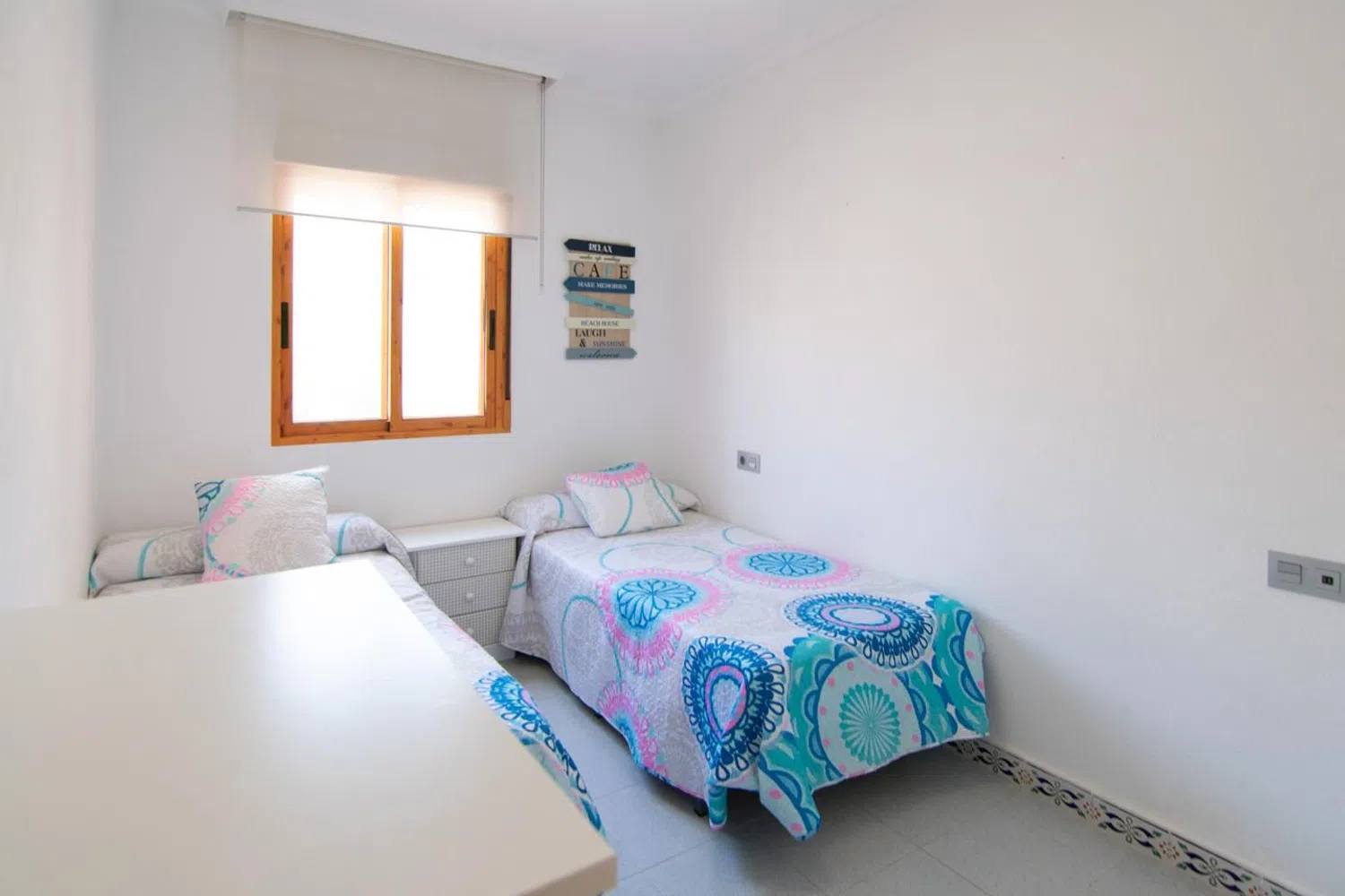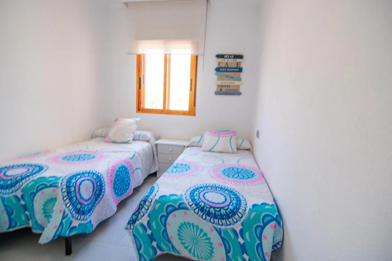 Przestronne mieszkanie z dwoma sypialniami i łazienką, z tarasem oraz dostępem do wspólnego basenu, położone zaledwie krok od plaży. Nieruchomość znajduje się w zamkniętej urbanizacji otoczonej pięknymi ogrodami, z dogodnym dostępem do plaży. Mieszkanie usytuowane jest na pierwszym piętrze.