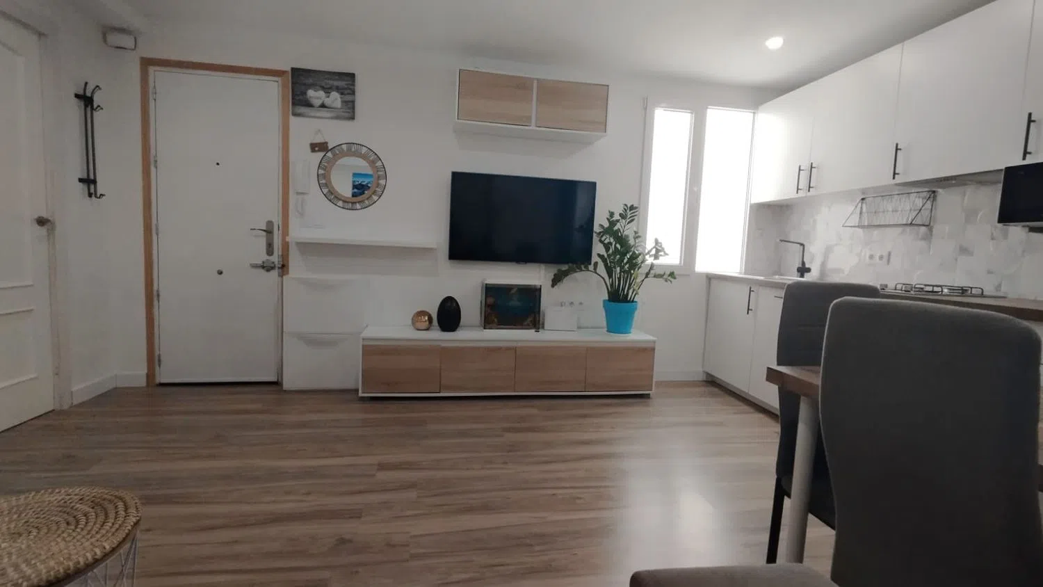 Odkryj swoje nowe mieszkanie w sercu Santa Pola! To urokliwe mieszkanie o powierzchni 76 m² oferuje niespotykaną lokalizację, znajdując się zaledwie minutę od popularnego supermarketu i otoczone parkami oraz sklepami. Z trzema sypialniami, łazienką oraz otwartą kuchnią na salon, ta odnowiona nieruchomość jest gotowa do zamieszkania. Ciesz się wygodą bliskości stacji autobusowej oraz targowiska, a także możliwością spaceru do zamku lub portu jachtowego w mniej niż pięć minut. Mieszkanie, usytuowane na drugim piętrze budynku z windą, dysponuje tarasem i balkonem, które umożliwiają cieszenie się wschodnią orientacją oraz świeżym powietrzem. Dodatkowo, wyposażone jest w klimatyzację oraz ogrzewanie z pompą ciepła dla maksymalnego komfortu przez cały rok. Wbudowane szafy zapewniają dodatkową przestrzeń do przechowywania, sprawiając, że każdy kąt staje się funkcjonalny. Nie przegap okazji, aby zamieszkać w centralnej i dobrze skomunikowanej okolicy, idealnej do korzystania ze wszystkiego, co Santa Pola ma do zaoferowania. Przyjdź i zakochaj się w tym miejscu!