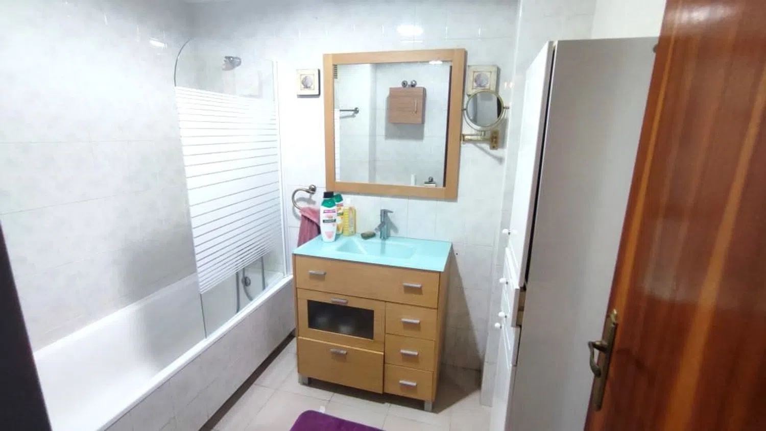 Salon jest obszerny i jasny, a jego dodatkowym atutem jest taras, który świetnie nadaje się do relaksu przy panującym klimacie śródziemnomorskim. Oddzielna kuchnia uzupełniona jest o prywatny patio, co zapewnia dodatkową przestrzeń na codzienne potrzeby. Apartament dysponuje także dwoma pełnymi łazienkami, co gwarantuje komfort i funkcjonalność dla mieszkańców.