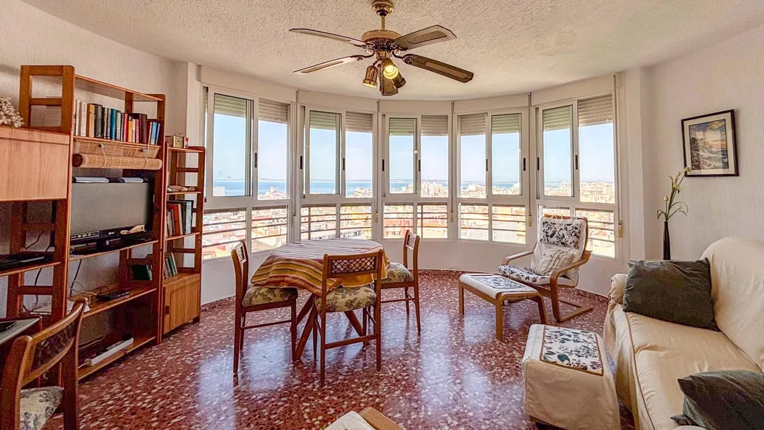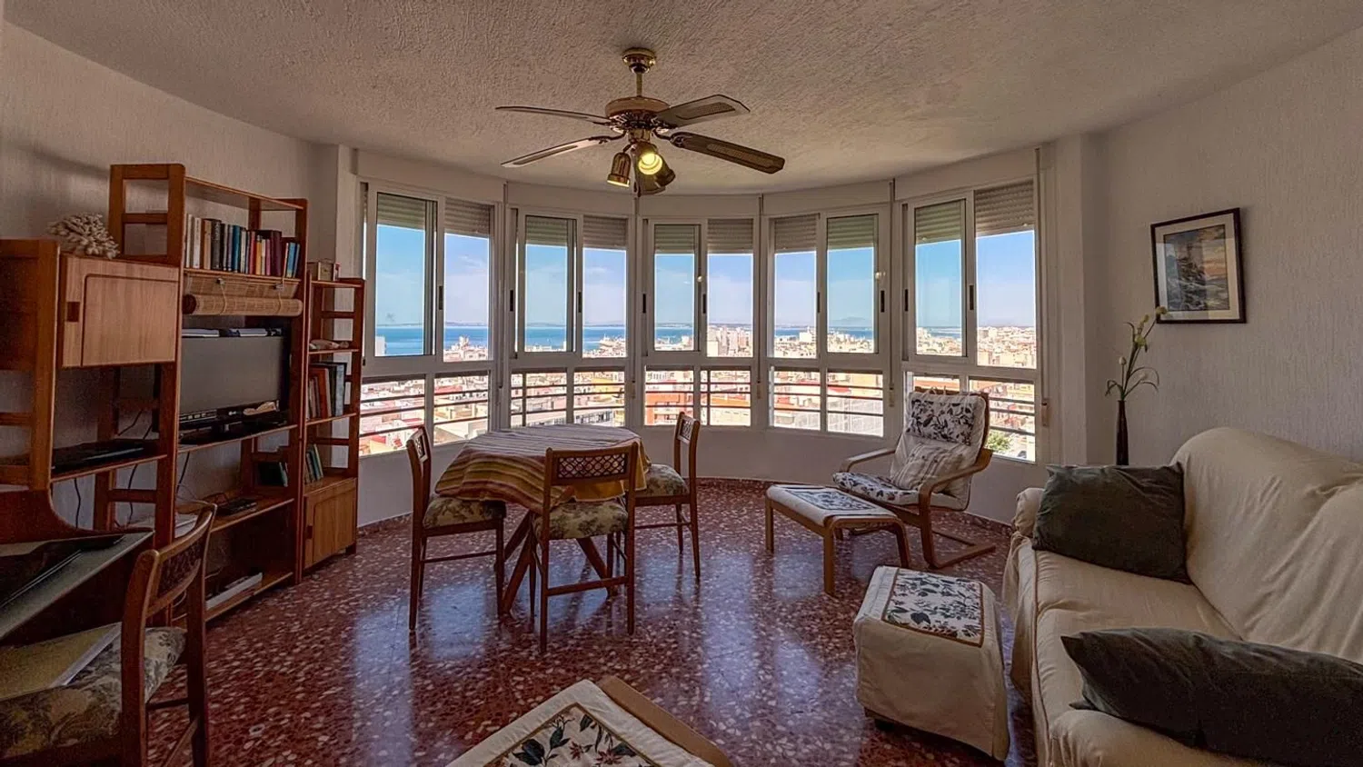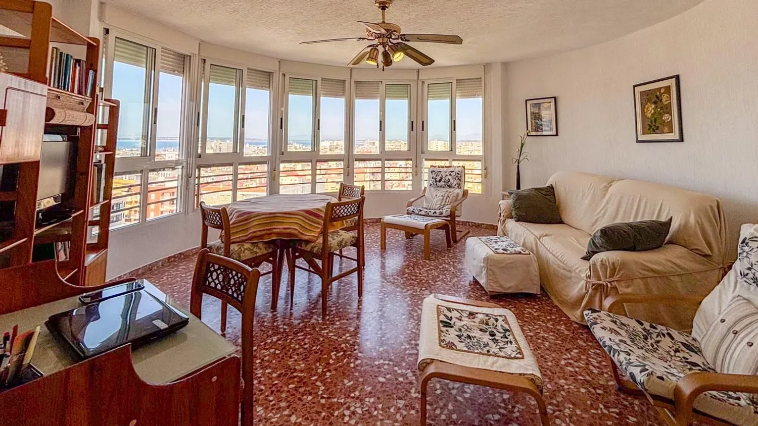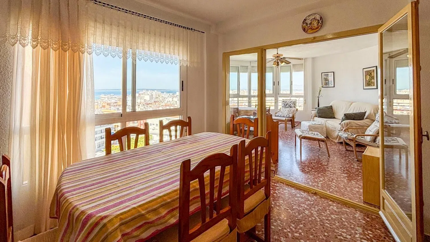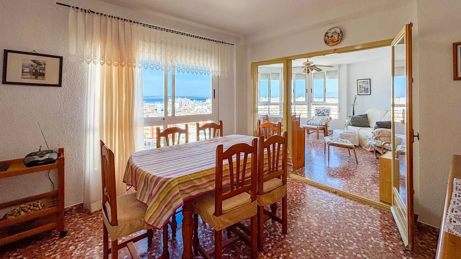 Przestronny apartament z 3 sypialniami i 2 łazienkami, oferujący malownicze widoki na morze, położony zaledwie kilka kroków od plaży. Znajduje się na ósmej piętrze budynku z windą, co zapewnia wygodny dostęp. Mieszkanie dysponuje dwiema miejscami parkingowymi - jedno zamknięte i prywatne, a drugie w strefie wspólnej. W okolicy dostępne są liczne zacienione tereny, dzięki bujnej roślinności oraz drzewom, a także różnorodne udogodnienia, takie jak boisko do koszykówki, place zabaw oraz wspólne prysznice.