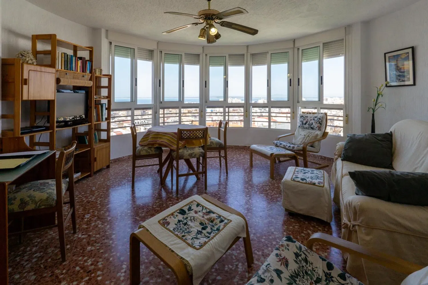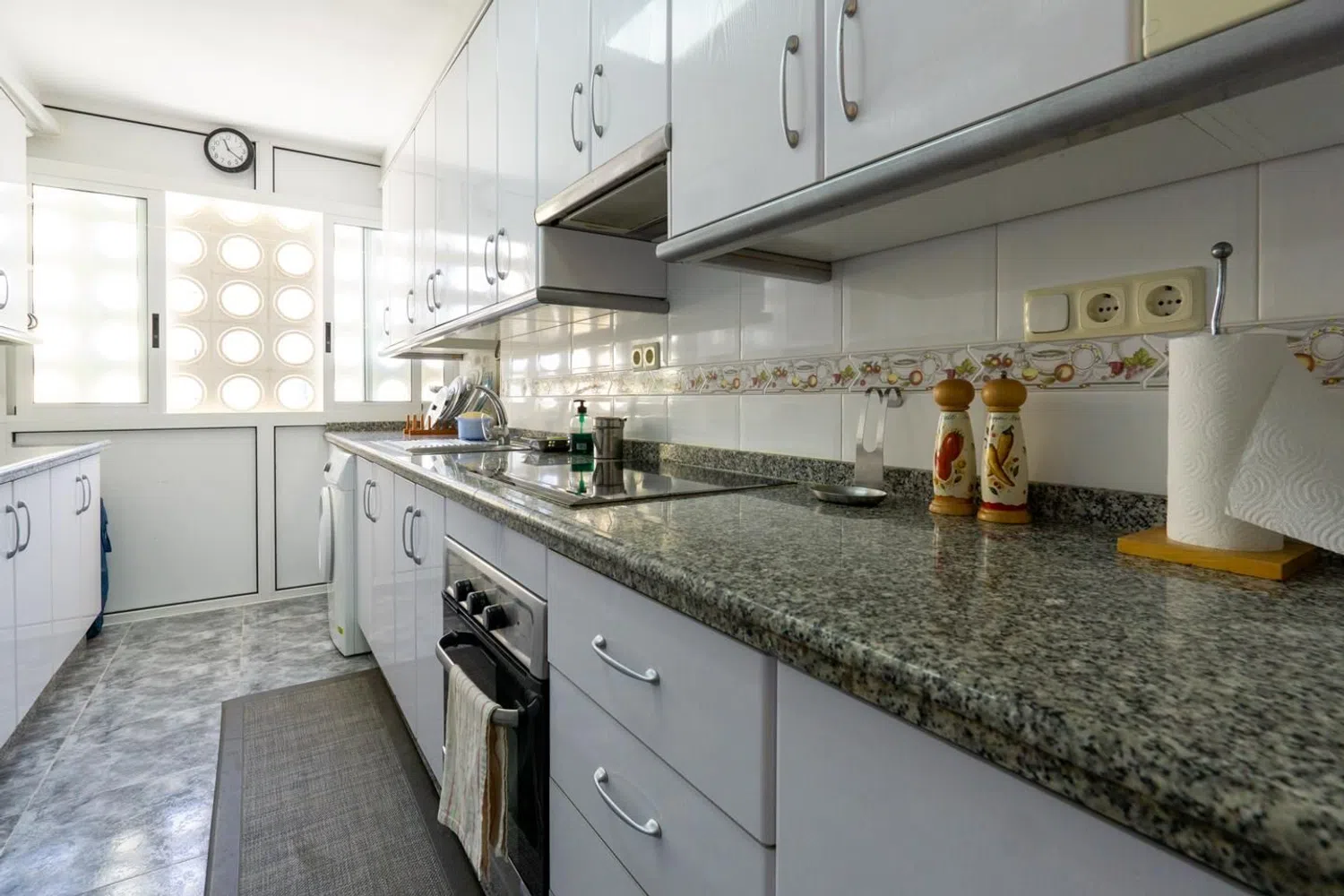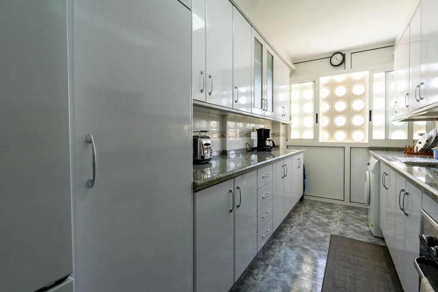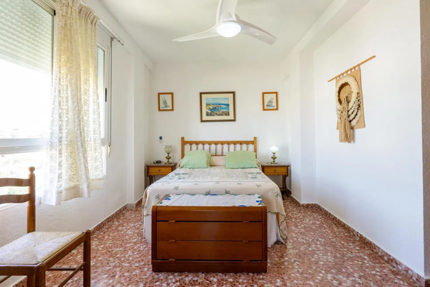 Przestronny apartament z 3 sypialniami i 2 łazienkami, oferujący malownicze widoki na morze, położony zaledwie kilka kroków od plaży. Znajduje się na ósmej piętrze budynku z windą, co zapewnia wygodny dostęp. Mieszkanie dysponuje dwiema miejscami parkingowymi - jedno zamknięte i prywatne, a drugie w strefie wspólnej. W okolicy dostępne są liczne zacienione tereny, dzięki bujnej roślinności oraz drzewom, a także różnorodne udogodnienia, takie jak boisko do koszykówki, place zabaw oraz wspólne prysznice.