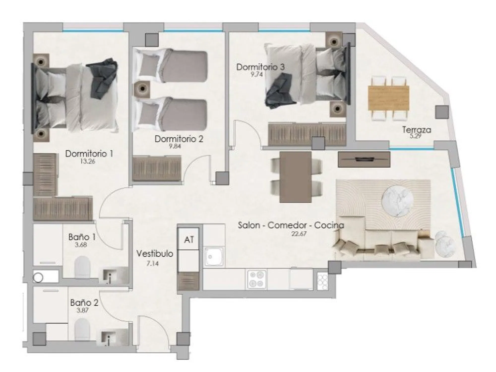 ¡Descubre tu nuevo hogar en Santa Pola! Este moderno residencial cerrado ofrece viviendas de 1, 2 y 3 dormitorios con acabados de alta calidad y un estilo contemporáneo. Con 87 m² construidos, esta propiedad de 3 dormitorios y 2 baños completos es perfecta para cualquier familia. Disfruta de amplias terrazas y balcones que te permitirán relajarte al aire libre. Las zonas comunes incluyen una piscina, un gimnasio y áreas ajardinadas ideales para paseos y momentos de relax. Además, la ubicación es inmejorable: junto al centro de Santa Pola y el palmeral, cerca del paseo marítimo y con una amplia oferta de restaurantes, bares y supermercados. La excelente conexión con la carretera nacional 332 te permitirá llegar al aeropuerto en tan solo 15 minutos. Los apartamentos cuentan con calefacción eléctrica, aire acondicionado y armarios empotrados. La plaza de párking + un trastero se adquieren desde 13.500€ adicionales. ¡No pierdas esta oportunidad única para invertir en una residencia permanente, casa de vacaciones o como inversión! * Se indica el precio mínimo ** Se indica el número máximo de dormitorios, baños y superficie ref: MEL1045.