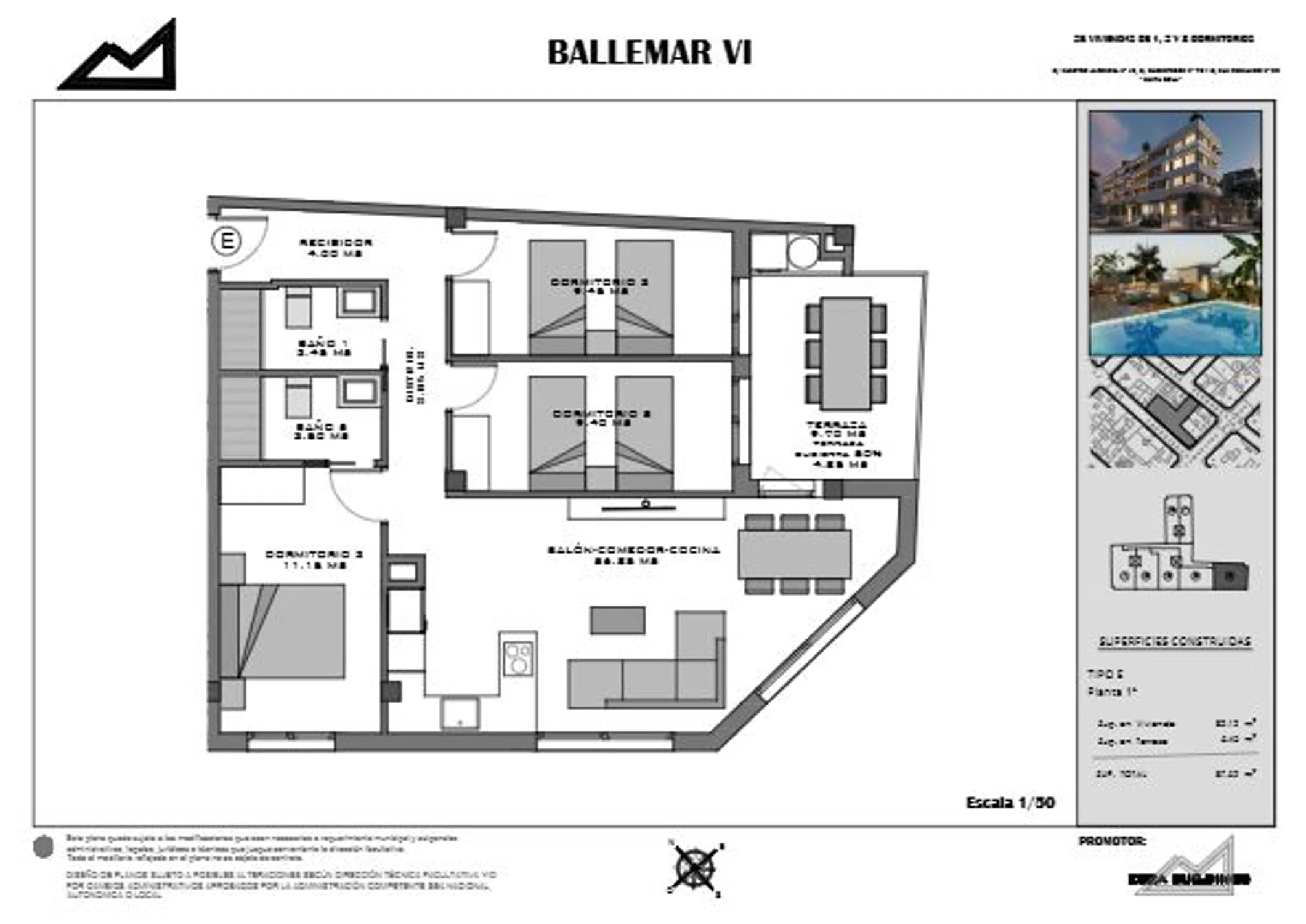 Ballemar VI: 28 viviendas con olor a mar. Ballemar VI es mucho más que una nueva promoción residencial, es una oportunidad para vivir con calidad, comodidad y privilegio de tener al mar muy cerca. Situado en la calle Maestro Alfonsea, 13, en Santa Pola, es exclusivo edificio alberga 28 viviendas de 1, 2 y 3 dormitorios, diseñadas pensando en el bienestar y el estilo de vida mediterráneo. Cada vivienda incluye plaza de garaje y trastero, añadiendo funcionalidad y valor a tu hogar. Además, las viviendas tienen todos los electrodomésticos incluidos. En la cubierta del edificio, los residentes podrán disfrutar de unas zonas comunes únicas, con piscina y solárium, ideales para relajarse, tomar el sol o compartir momentos en familia o con sus amigos mientras se contempla el horizonte. Ballemar VI destaca por su excelente localización, con todos los servicios necesarios al alcance. A tan solo 400 metros de la estación de autobuses de Santa Pola, 300 metros de grandes supermercados y a 700 metros del centro urbano, disfrutarás de una conectividad y comodidad excepcionales. La playa se encuentra a 900 metros, permitiéndote ir caminando a disfrutar del mar siempre que lo desees. El aeropuerto está a apenas a 14 km, lo que facilita los desplazamientos tanto para residentes como para visitantes. Ballemar VI será una promoción de referencia en la zona gracias a su cuidado diseño arquitectónico, sus excelentes prestaciones y la alta calidad de los materiales empleados en la construcción. Cada detalle ha sido pensado para ofrecer espacios funcionales, modernos y confortables, que respondan a las necesidades del día a día sin renunciar al estilo. Fecha de inicio de las obras: 4º trimestre 2025. Fecha fin de las obras: 2º trimestre 2027.