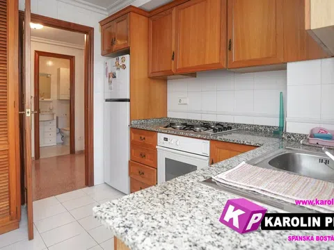 En la popular zona de Santiago Bernabeu en Santa Pola, se encuentra este apartamento en planta baja con 2 amplias terrazas y parking. Anteriormente la vivienda contaba con 3 dormitorios que se han reconvertido en un dormitorio grande, pero se pueden convertir fácilmente en 2 o 3 dormitorios de nuevo; además también cuenta con 2 baños completos. Salón con acceso a las terrazas desde las que se puede vislumbrar el mar Mediterráneo. Cocina con lavadero independiente. A 1 minuto andando de la playa, a 2 minutos de un pequeño centro comercial y a 500 metros del centro de Santa Pola. En la urbanización cerrada hay varias plazas de aparcamiento comunitarias. Santa Pola es un acogedor pueblo pesquero español con unos 40.000 residentes durante todo el año y que viven todo el año. Aquí encontrará todo lo que necesita, además de cientos de restaurantes. Paseo marítimo de 10 km y playas ilimitadas a lo largo de toda la ciudad. El popular puerto deportivo con todos los restaurantes, el puerto de taxis acuáticos donde los barcos le llevan a la isla mediterránea de Tabarca en unos 15 minutos. El puerto pesquero donde los pescadores venden sus capturas que consisten en todo lo que se puede encontrar en el Mediterráneo como mariscos, pescados de todo tipo, calamares, etc. Todo esto al sur y detrás de Santa Pola se encuentran las salinas con producción de sal y reservas naturales para paseos agradables y naturaleza mediterránea. Gran mercado 2 veces por semana durante todo el año y el mercado cubierto que está abierto de lunes a sábado todo el año. A 15 min del aeropuerto de Alicante/Elche, a 20 min de la ciudad de Elche y a 20 min de la ciudad de Alicante. ¡Contáctenos en el inmobiliaria KP Karolin Persson para obtener más información o programar una visita! Inmobiliaria registrada, con experiencia desde 2006 y buen conocimiento local. TENEMOS LA VIVIENDA QUE BUSCAS.