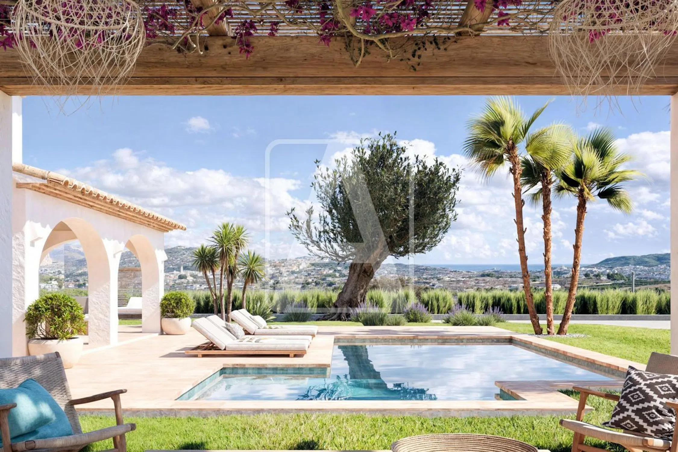 Villa rústica mediterránea de lujo con vistas al mar y a las montañas. Descubra esta elegante villa de estilo rústico-mediterráneo, situada entre Benissa y Teulada, en una extensa parcela que combina privacidad y un entorno natural inigualable. Con unas impresionantes vistas al mar y a las montañas, esta exclusiva propiedad ofrece el encanto de una casa de campo tradicional con todas las comodidades modernas. Se encuentra ubicada en una parcela de 10.000 m2 y tiene una superficie total construida de 545 m2 distribuidos en 2 plantas (+ planta sótano) de la siguiente manera: en la planta principal tenemos el porche y hall de entrada, distribuidor, 3 amplios dormitorios (18 m2 + 14 m2 + 13 m2), 3 baños en-suite, 1 aseo de cortesía, lavadero, despensa, impresionante salón-comedor-cocina (concepto todo abierto, con isla, en conjunto 60 m2), porche de 25 m2 (riurau) y porche de 20 m2 (con barbacoa y cocina de verano integrados), que se fusiona con la impresionante terraza exterior de 85 m2 donde tenemos una estupenda piscina rectangular de 50 m2 (con zona de playa integrada) y una zona chill-out y relax con una pérgola de 18 m2. Se accede a la planta alta y a la planta sótano a través de una bonita escalera interior. En la planta alta tenemos una zona de oficina (10 m2) y 1 dormitorio principal (25 m2) con vestidor (15 m2) y 1 baño en-suite. En la planta sótano (175 m2), tenemos un amplio garaje de 30 m2, gimnasio de 85 m2, 1 baño completo, trastero de 20 m2, trastero de 15 m2 y cuarto técnico. Los interiores destacan por sus materiales de alta calidad, con un diseño que combina elementos rústicos y mediterráneos, grandes ventanales y carpintería Technal, que maximizan la conexión con el paisaje. El confort está garantizado gracias al sistema de suelo radiante y el aire acondicionado por conductos. El exterior invita a disfrutar de la vida al aire libre con amplios espacios abiertos, jardines y terrazas que aprovechan al máximo las vistas panorámicas. La propiedad también cuenta con amplia zona de aparcamiento exterior y con una pérgola de 36 m2 para 2 vehículos. Además, 6.000 m2 de la finca están utilizados para la producción de la tradicional uva de moscatel de la zona. Esta villa es única y combina el lujo contemporáneo con el carácter rústico, ideal para quienes buscan un estilo de vida exclusivo tranquilo pero cercano a las playas y todos los servicios. *Esta información puede estar sujeta a errores y no forma parte de ningún contrato, (no tiene carácter ni contractual ni vinculante). La oferta puede ser modificada o retirada sin previo aviso. El precio no incluye los gastos de la compra. Para recibir más información sobre esta propiedad, póngase en contacto con AREA Costa Blanca. AREA Costa Blanca - su agente para propiedades en venta en Benissa - Costa Blanca - España. AREA Costa Blanca está orgullosa de ser una de las mejores agencias inmobiliarias en la Costa Blanca. En AREA Costa Blanca trabajamos para ofrecer el mejor servicio asesorando a nuestros clientes en la compraventa de propiedades inmobiliarias. Contamos con un equipo profesional de larga experiencia en el sector inmobiliario. Nuestro principio fundamental es la calidad del servicio prestado y la satisfacción del cliente. Nuestra experiencia y actitud, su garantía de éxito.