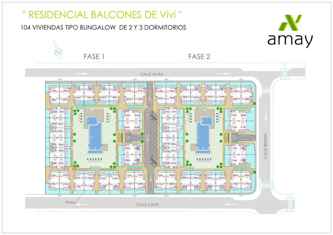 Este conjunto está compuesto por 25 bungalows que están construidos con materiales de alta calidad. Las plantas bajas cuentan con una amplia parcela con jardín, mientras que las plantas alt...