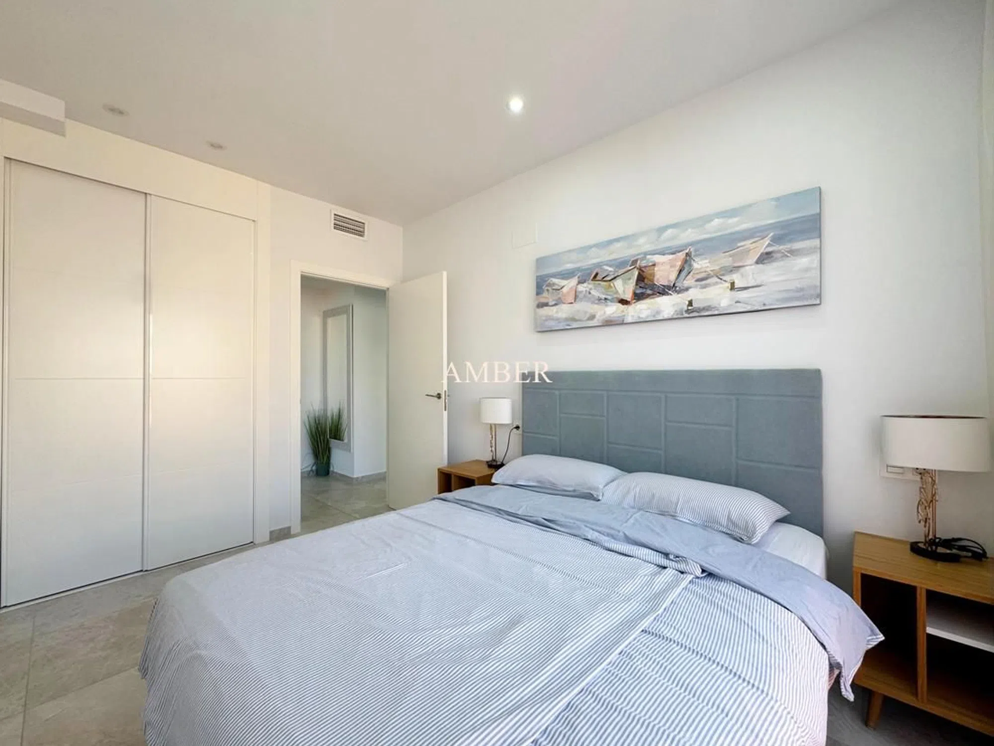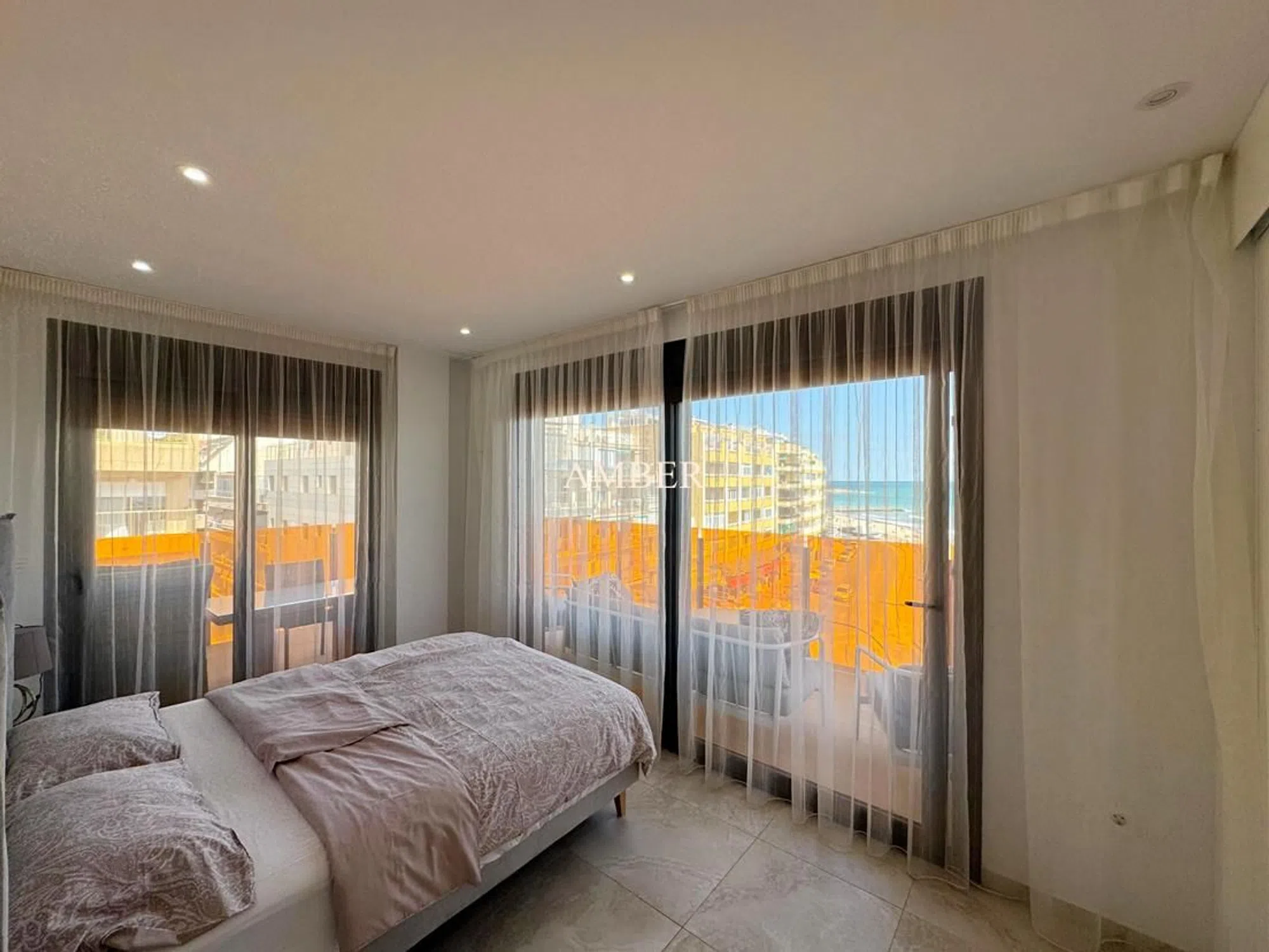 Lujoso apartamento con vistas directas al mar en el centro de Torrevieja. Apartamento nuevo, amplio y moderno con vistas directas al mar situado en el corazón de Torrevieja, a pocos pasos de la playa de Playa del Cura. El apartamento amueblado con buen gusto consta de un amplio salón de planta abierta con una cocina totalmente equipada. 3 dormitorios, 2 baños y un aseo. Un dormitorio con baño en suite y vistas directas al mar. Todas las habitaciones tienen acceso a un balcón. Todos los dormitorios y el pasillo tienen armarios empotrados. Aire acondicionado central. El edificio cuenta con piscina y sauna. La plaza de aparcamiento privada en el garaje subterráneo está incluida en el precio. Se vende con muebles y decoraciones. El aeropuerto más cercano es el aeropuerto de Alicante (50 km).