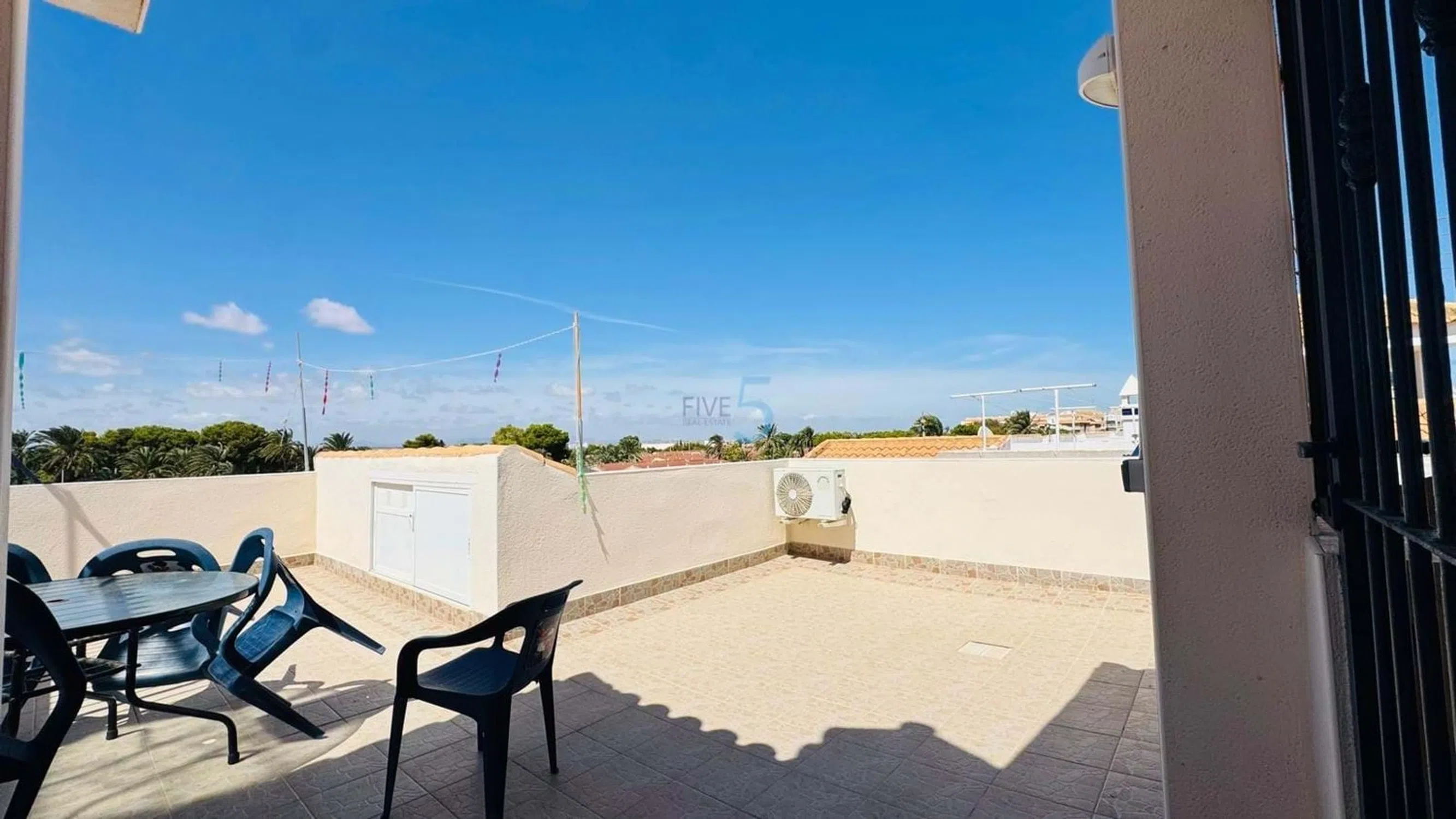 Este encantador apartamento de dos dormitorios totalmente amueblado está idealmente situado en Torrevieja, a poca distancia de la playa y a poca distancia de una amplia selección de tiendas, bares y restaurantes. Ubicado en una comunidad cerrada y bien mantenida, los residentes disfrutan de acceso a una piscina privada reservada exclusivamente para la urbanización. Una de las características más destacadas de esta propiedad es el solárium privado y seguro en la azotea, que ofrece un generoso espacio al aire libre para relajarse, tomar el sol o cenar bajo el cielo mediterráneo. En el interior, el apartamento ofrece una sala de estar y comedor luminosa y con aire acondicionado con acceso directo a un balcón privado con vista a un parque tranquilo, lo que proporciona un telón de fondo sereno para disfrutar del sol. Ambas habitaciones dobles están equipadas con aire acondicionado, lo que garantiza el confort durante todo el año. La espaciosa cocina está totalmente equipada con todos los electrodomésticos necesarios, y el moderno baño familiar cuenta con una cómoda ducha a ras de suelo. Ya sea que esté buscando una casa de vacaciones, una oportunidad de inversión o una residencia permanente, este apartamento ofrece una ubicación fantástica en una urbanización tranquila pero céntrica, con un hermoso entorno verde y todos los servicios locales al alcance de la mano. 5 Real Estate es la agencia inmobiliaria internacional de servicio completo y tarifa fija de más rápido crecimiento en España, con numerosas oficinas en el norte y sur de la Costa Blanca, así como en la región de Murcia. Estamos comprometidos a brindar un servicio transparente y de primera clase a todos nuestros clientes, ya sean compradores o vendedores. Desde el momento en que se ponga en contacto con nosotros por primera vez, se dará cuenta de la diferencia que ofrecemos y promovemos como estándar. Puede estar seguro de que está tratando con profesionales eficientes y confiables con muchos años de experiencia en bienes raíces españoles. En 5 Real Estate solo vendemos propiedades que están listadas directamente con nosotros, lo que significa que conocemos personalmente a cada uno de los vendedores, sus casas y las áreas en las que se encuentran. Dada nuestra amplia cartera de propiedades listadas directamente, estamos seguros de que podemos encontrar la propiedad adecuada para satisfacer sus necesidades. Por lo tanto, haga una consulta hoy y descubra por qué somos tan diferentes y por qué nos estamos convirtiendo en el agente elegido tanto por compradores como por vendedores.