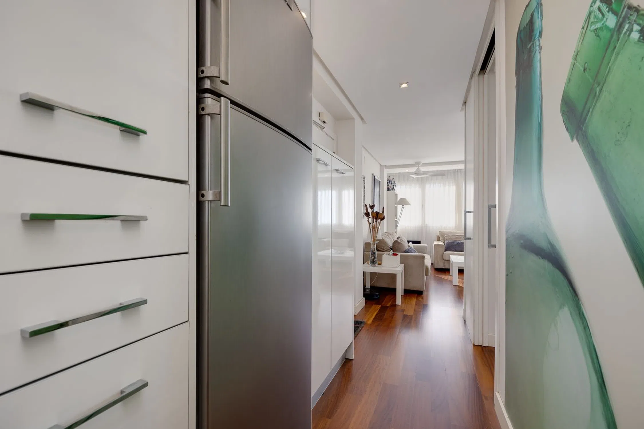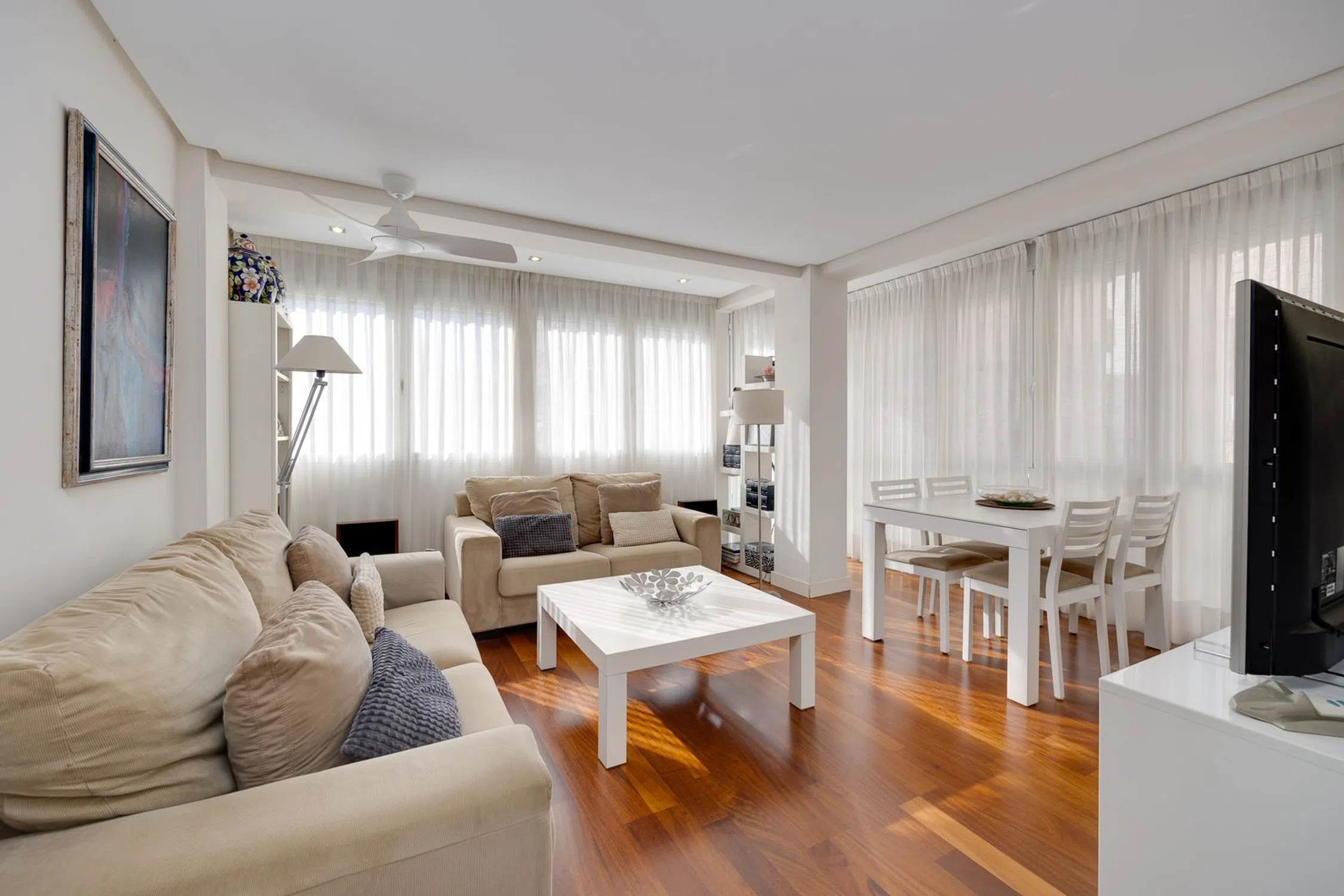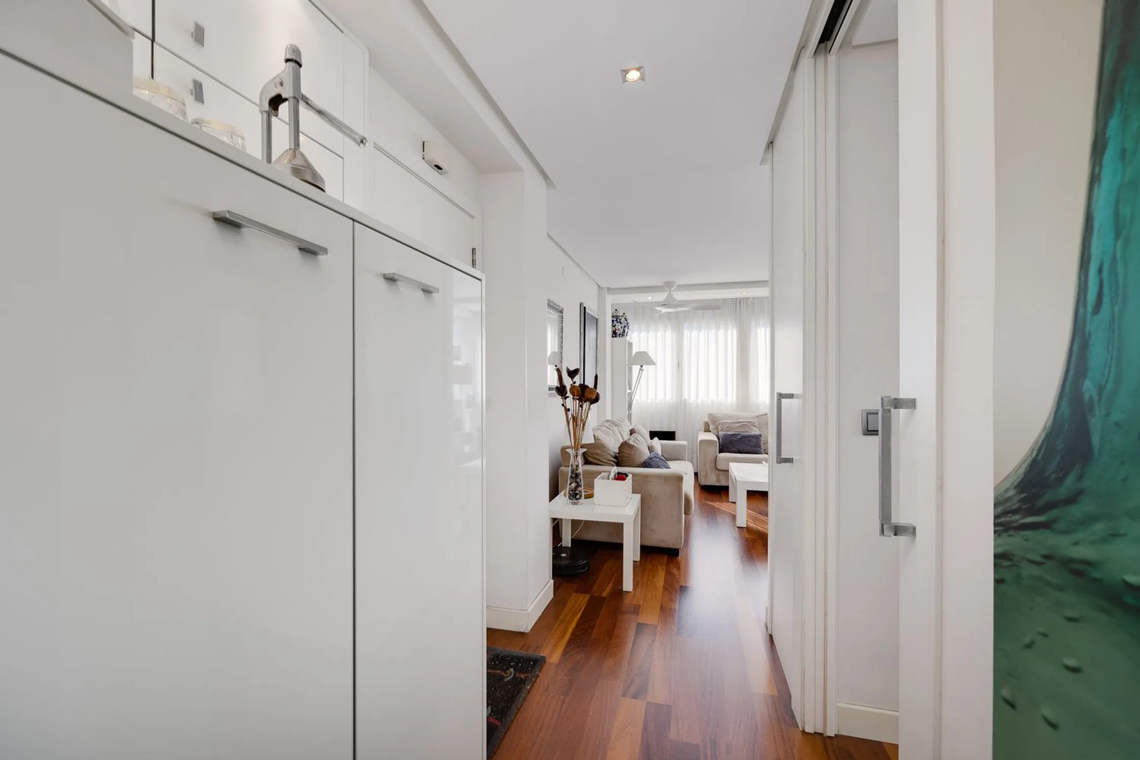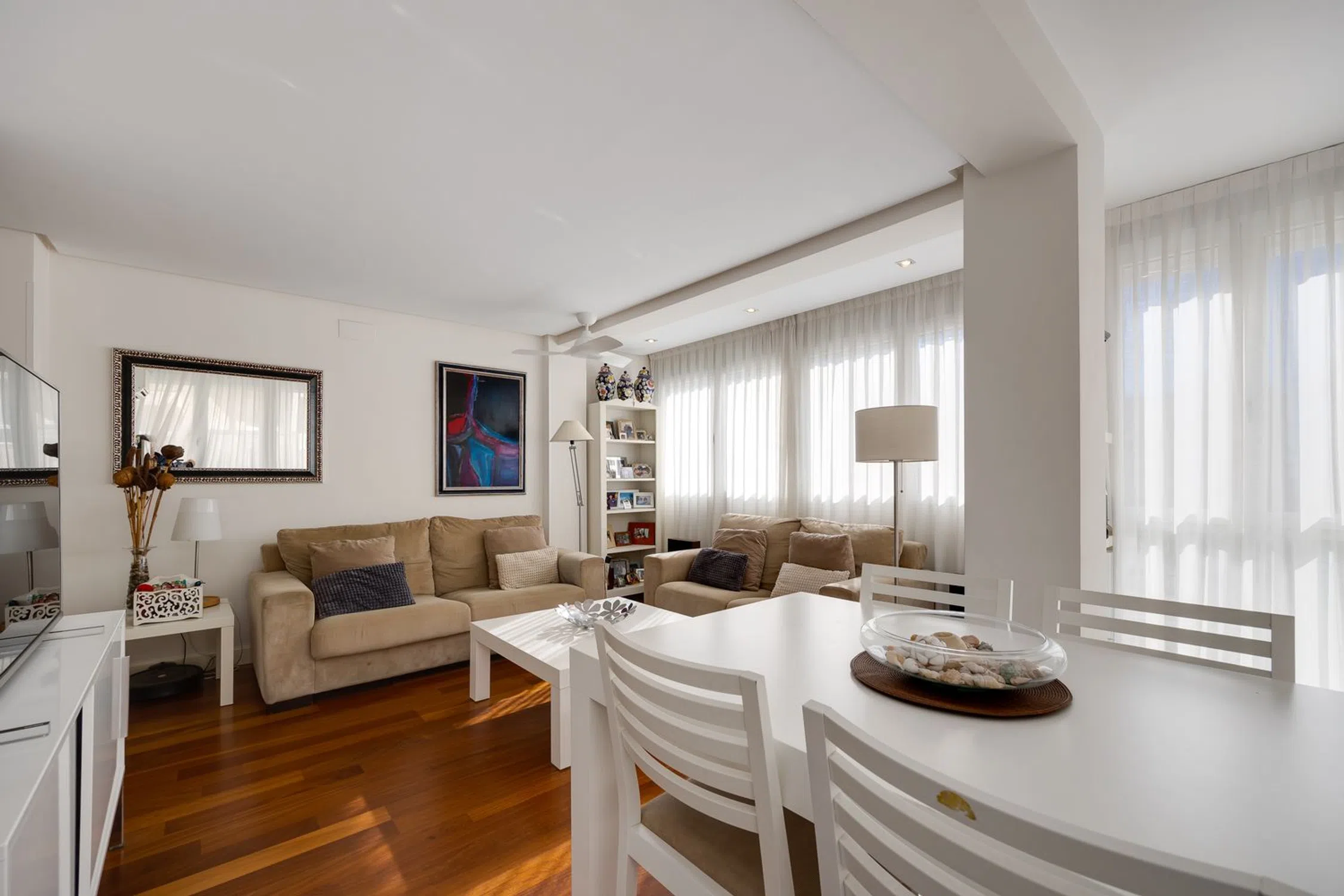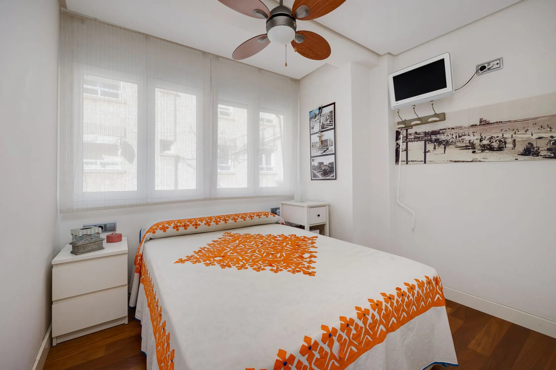 Vivienda de esquina totalmente exterior, renovada y llena de luz a dos minutos del paseo marítimo Descubra esta magnífica vivienda totalmente exterior y de esquina con 61,54 m2, bañada por la luz natural durante todo el día gracias a su orientación sur y suroeste. Su reforma integral realizada con profesionales hace pocos años ha convertido este piso en un espacio impecable, funcional y con un encanto singular, donde cada centímetro ha sido aprovechado con precisión —como en un barco— para lograr la máxima eficiencia sin renunciar al estilo. Todas las luces son LED, el salón cuenta con ventilador de techo con mando a distancia, y el toldo derecho, orientado al oeste, también se acciona cómodamente por control remoto. La cocina, concebida por una diseñadora de interiores, es un ejemplo excepcional de optimización del espacio y diseño contemporáneo. Semiabierta al salón, ofrece una experiencia de cocina cómoda, práctica y luminosa, con unas dimensiones poco habituales de 5 metros de largo por 2m de ancho aproximadamente. Cada detalle ha sido pensado: soluciones de almacenaje inteligentes, torre de horno y microondas junto a un frigorífico de integración, cajones interiores extraíbles en la zona de cocción y una superficie de trabajo amplia y despejada. La torre con la lavadora y secadora se ubican en el baño, liberando espacio y manteniendo una línea visual limpia y ordenada. El salón–comedor se integra de forma fluida con la cocina, creando una sensación de amplitud y continuidad. Toda la vivienda está elegantemente amueblada y se encuentra en estado impecable. Dispone de dos dormitorios con armarios empotrados, un baño con ventana exterior y ducha italiana, y unas ventanas oscilobatientes de PVC que garantizan un aislamiento acústico y térmico total. Su ubicación es inmejorable: a tan solo dos minutos a pie del paseo marítimo, rodeada de terrazas, cafeterías, comercios, farmacia y supermercados. Además, la zona vive una alta revalorización gracias al próximo Mega Centro de Ocio del Puerto de Torrevieja, cuya apertura está prevista para 2026. Podrá salir de casa con la toalla al hombro para disfrutar de un baño en las cercanas piscinas naturales, la zona de “Las Rocas” o la playa del Cura, todo a pocos minutos caminando. Y en caso de necesitar aparcamiento tiene el parking subterráneo de la plaza de Oriente justo enfrente del edificio con precio asequible para alquilar una plaza todo el año o por temporada En resumen, una vivienda soleada, moderna y perfectamente cuidada, ideal para quienes buscan confort, eficiencia y calidad de vida junto al mar bien sea para vivir en Torrevieja todo el año o bien para vacaciones. ¡Contáctenos para una visita!