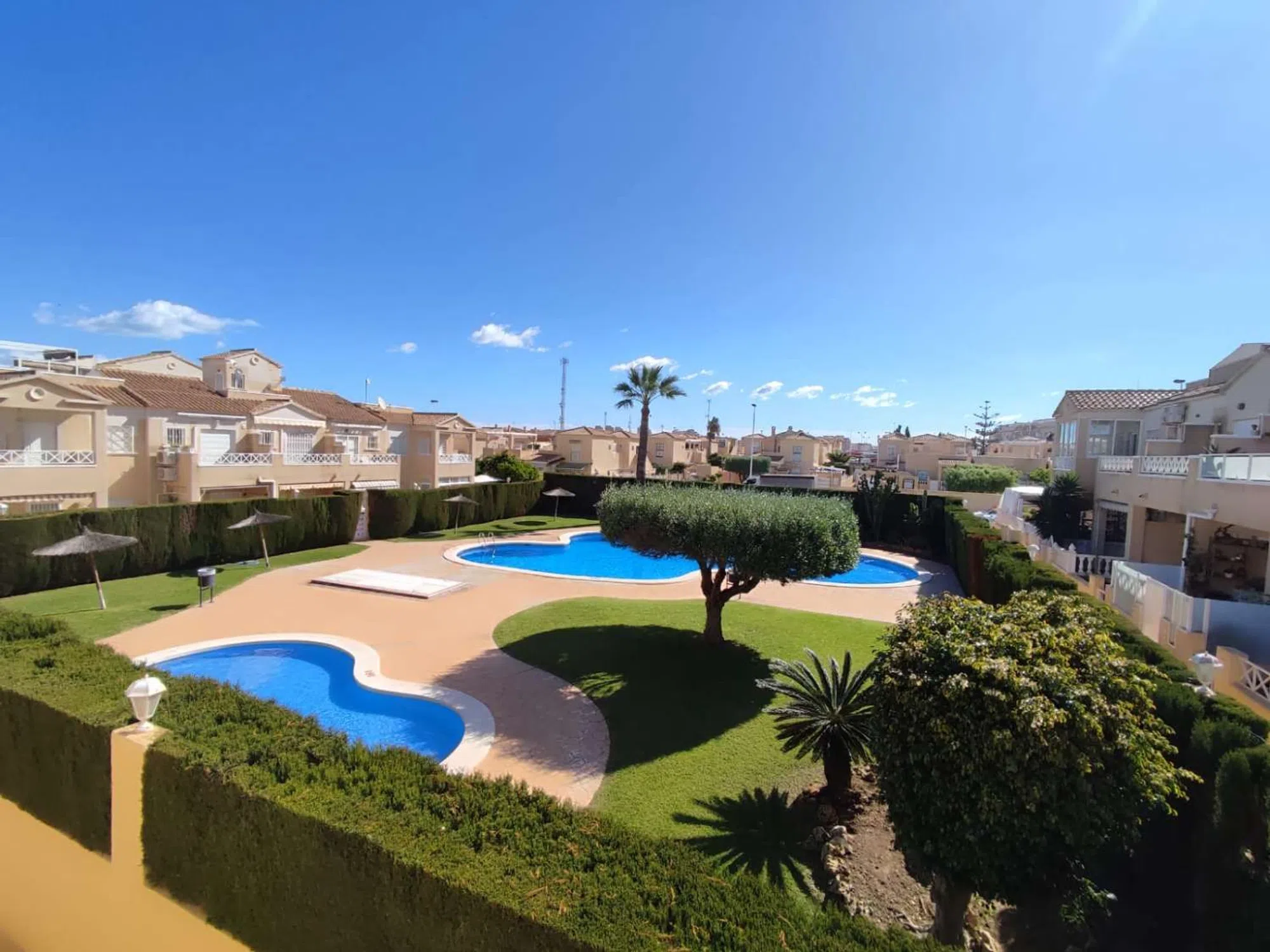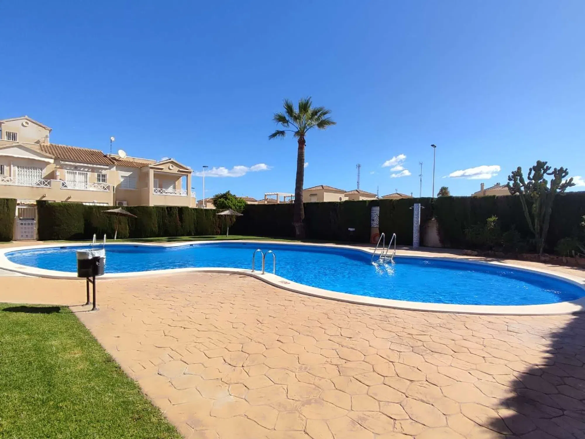 Luminoso y acogedor bungalow ático totalmente amueblado de 2 dormitorios, con un amplio solárium privado de 26 m² y una parcela independiente de 53 m², situado en la conocida comunidad cerrada Europa, que ofrece piscina comunitaria y amplias zonas verdes. Dirección: Calle Ramón Imbernón Verdú, Torrevieja Ubicación inmejorable: en pleno centro, justo frente al supermercado Consum y a un paso de Carrefour, del centro comercial Habaneras, tiendas, cafeterías y toda la infraestructura urbana necesaria, todo accesible cómodamente a pie. Características de la vivienda: Superficie habitable: 61 m² Terraza de entrada: 10 m² con toldos instalados Parcela privada frontal: 53 m² con portón y espacio de aparcamiento Solárium en la azotea: 26 m² perfecto para tomar el sol o crear una zona chill-out Garaje independiente con puerta eléctrica 2 dormitorios luminosos y confortables Cocina independiente completamente equipada Lavadero acristalado junto a la cocina Orientación sur, que garantiza luz natural y sol durante todo el año Totalmente amueblado, con electrodomésticos incluidos Aire acondicionado frío/calor Pintura reciente, cortinas de calidad, iluminación moderna y rejas de seguridad en todas las ventanas La vivienda forma parte de un residencial muy bien cuidado, con un ambiente tranquilo y seguro, piscina comunitaria y agradables zonas ajardinadas. Ideal para vivir todo el año, disfrutar como vivienda vacacional o como excelente inversión para alquiler. ¡No deje pasar la oportunidad de adquirir un hogar listo para entrar a vivir, con todo el confort y la mejor ubicación en el corazón de Torrevieja! Nota legal: Tasas e impuestos no incluidos. La información proporcionada es orientativa y no vinculante jurídicamente, pudiendo contener errores.