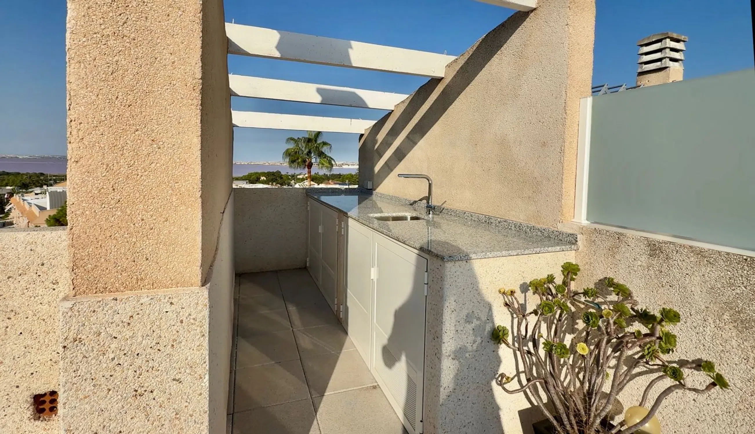 Descubre este encantador apartamento en planta alta situado en la prestigiosa zona de Los Balcones, con un solárium privado y unas vistas panorámicas impresionantes a las salinas rosadas de Torrevieja. El apartamento ofrece 1 dormitorio luminoso, 1 baño completo y un amplio salón con sofá cama, perfecto para alojar hasta 4 personas. El solárium privado es el rincón ideal para relajarte al sol, disfrutar de una cena al atardecer o simplemente contemplar las inigualables vistas del entorno natural. Su ubicación es inmejorable: � A solo 1 minuto andando del supermercado Mercadona � 5 minutos a pie del Hospital de Torrevieja �️ 8 minutos en coche de la playa de Los Náufragos Un hogar perfecto tanto para vivir todo el año como para disfrutar de unas vacaciones inolvidables junto al mar y la naturaleza.