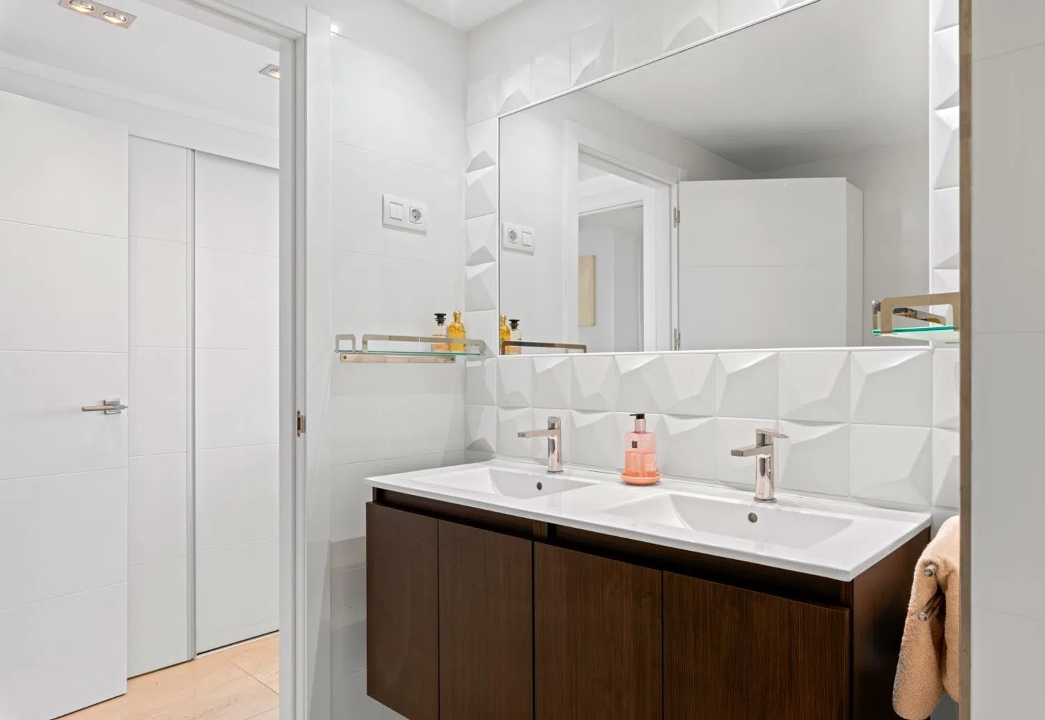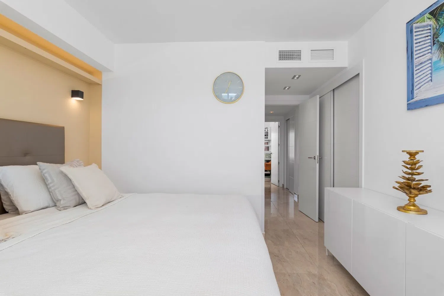 Dodatkowo, z tarasu można obserwować jachty, żaglówki i skutery wodne, które wpływają do portu, znajdującego się zaledwie kilka kilometrów od ośrodka, a także podziwiać malownicze miasto z tej perspektywy. Przestronna sypialnia główna oferuje piękny widok na morze oraz bezpośredni dostęp do dużego tarasu — czyż to nie marzenie budzić się każdego ranka, będąc pierwszym, który dostrzega wschód słońca na horyzoncie? Łazienka w sypialni głównej została urządzona z dbałością o szczegóły, oferując luksusowy prysznic bezprogowy z ogrzewaniem podłogowym. Druga sypialnia gościnna jest również wyposażona w podwójne łóżko oraz obszerne szafy wnękowe. Łazienka ogólna zawiera duży prysznic bezprogowy, toaletę oraz umywalkę z osobną przestrzenią do przechowywania, a także zapewnia ogrzewanie podłogowe.