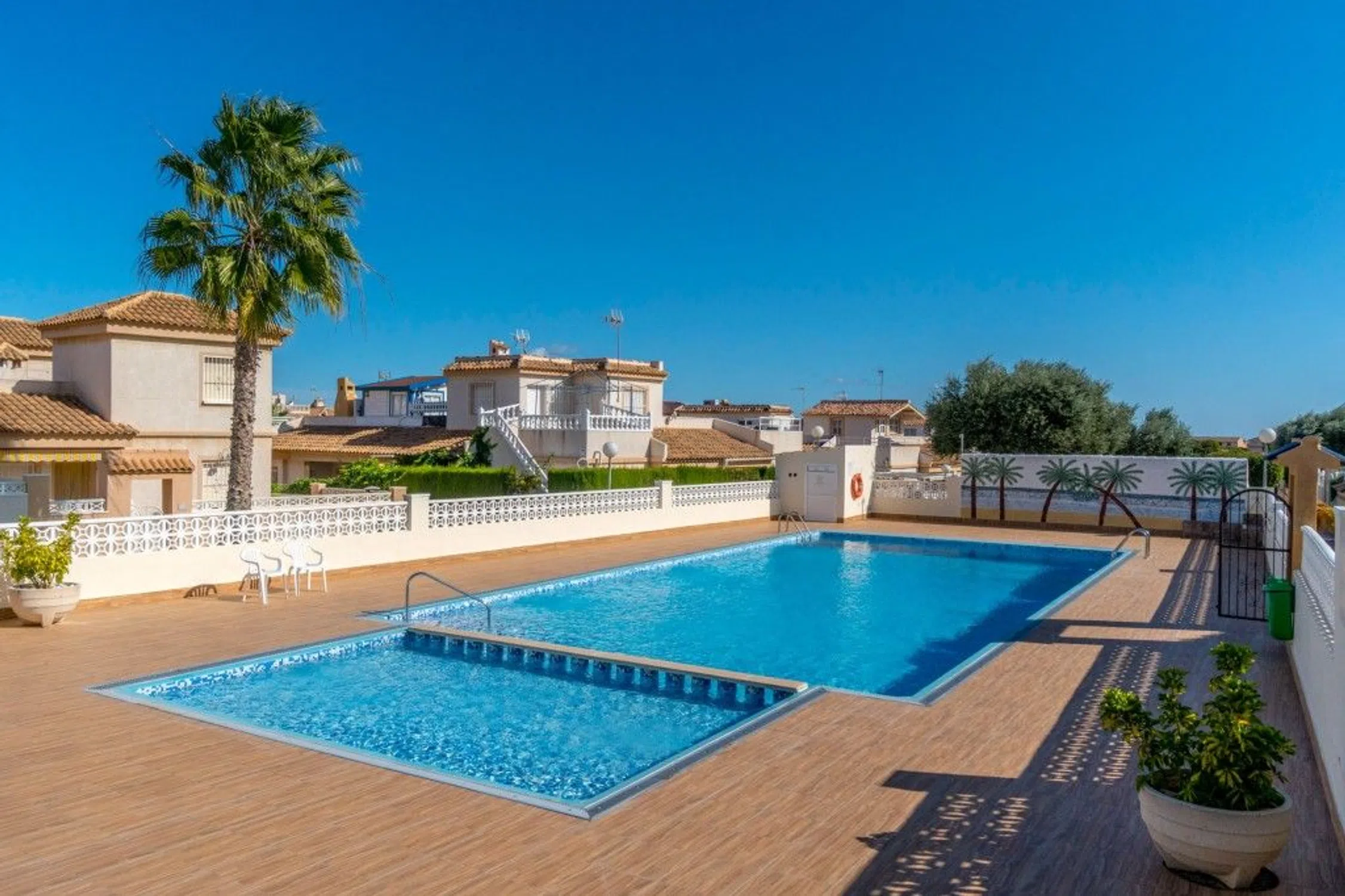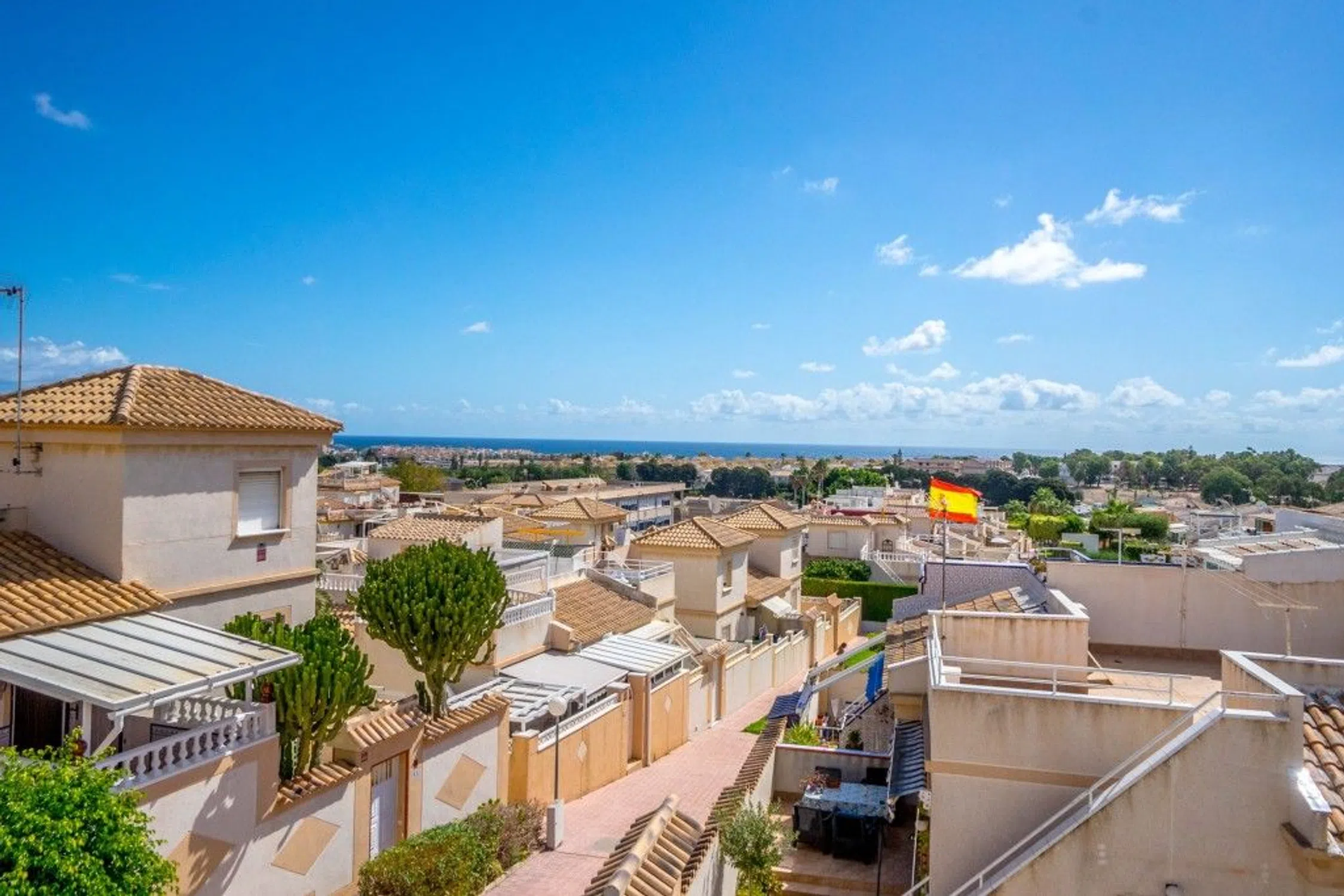 Encantadora casa adosada en la popular Punta Prima - con terrazas y cerca de todo En la popular urbanización Los Altos, con exuberantes zonas verdes y una gran zona de piscina comunitaria, tenemos el placer de ofrecer un adosado luminoso y agradable - perfecto como casa de vacaciones o para vivir todo el año. La propiedad tiene dos amplios dormitorios, un baño, una planta abierta y social entre la cocina y el salón y una gran terraza en la planta baja. En la planta superior hay una encantadora terraza en la azotea donde podrá disfrutar del sol y la relajación durante todo el año. Usted estará a poca distancia de restaurantes, bares y supermercados - y con la playa a sólo unos cinco kilómetros de distancia, es fácil bajar a darse un chapuzón en el mar. En Mäklarringen & Propertissimo le ofrecemos un servicio único y personalizado - póngase en contacto con nosotros para obtener más información o para reservar una visita. Bienvenido - ¡le ayudaremos en todo el camino a casa!