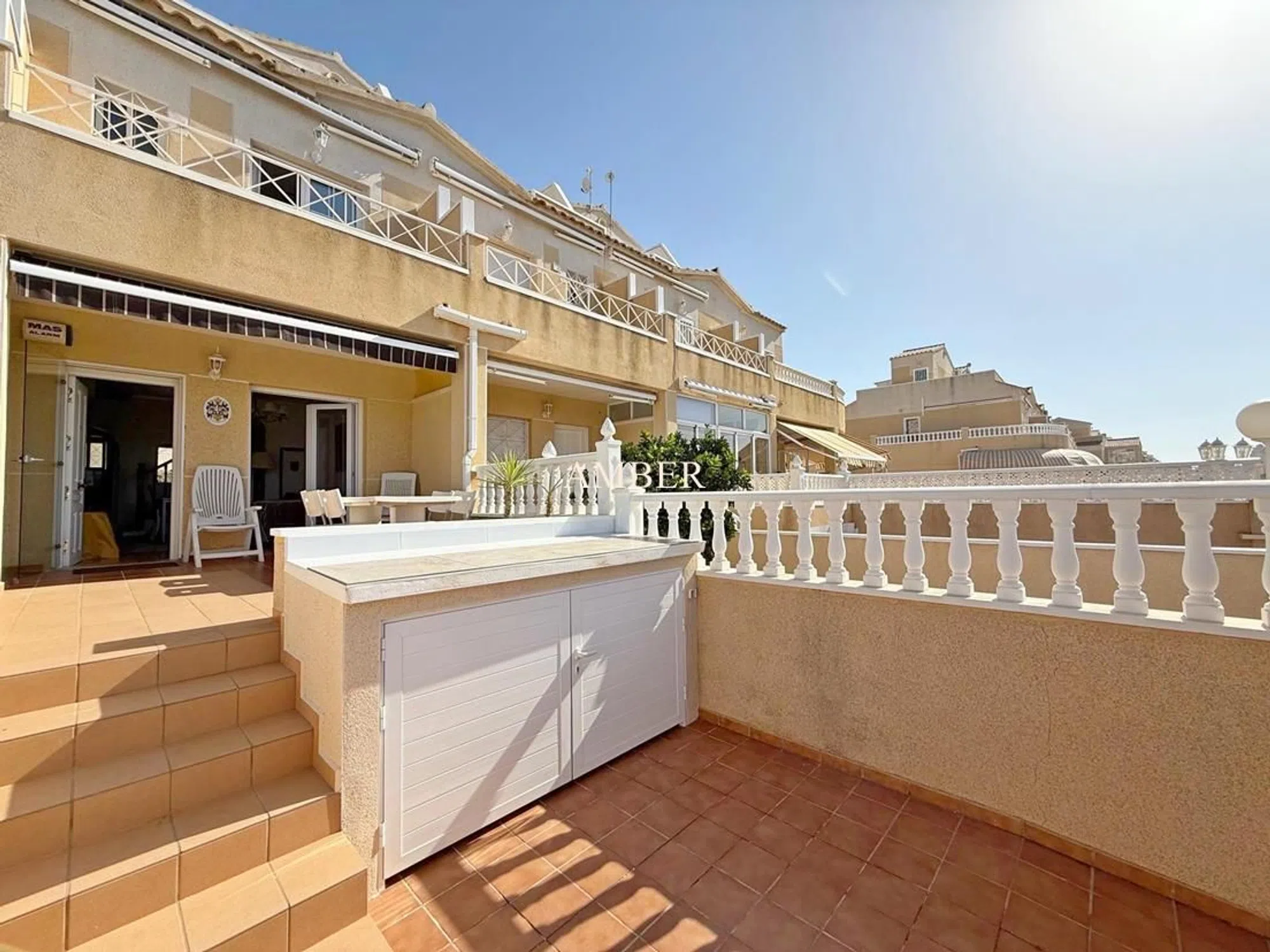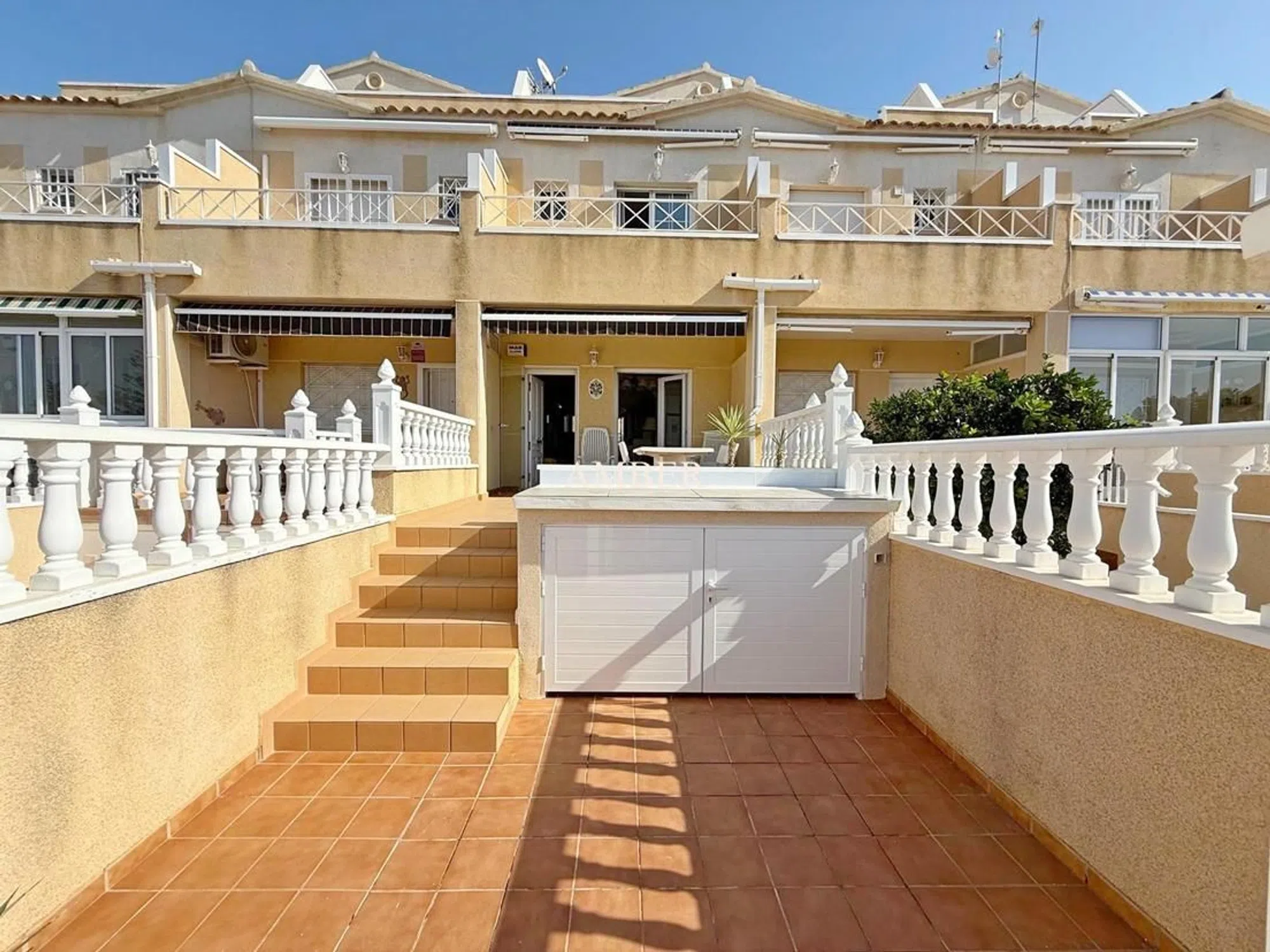 Casa adosada en Baños Europa, Torrevieja, Alicante, con vistas despejadas a las Salinas. Consta de 2 dormitorios, 1 aseo y 1 baño. Terrazas delantera y trasera. Azotea. Trastero. Piscina comunitaria. Totalmente amueblada. Aire acondicionado. Ubicada a 150 metros de las Salinas y a 2,5 km de la playa. Cerca de todos los servicios.