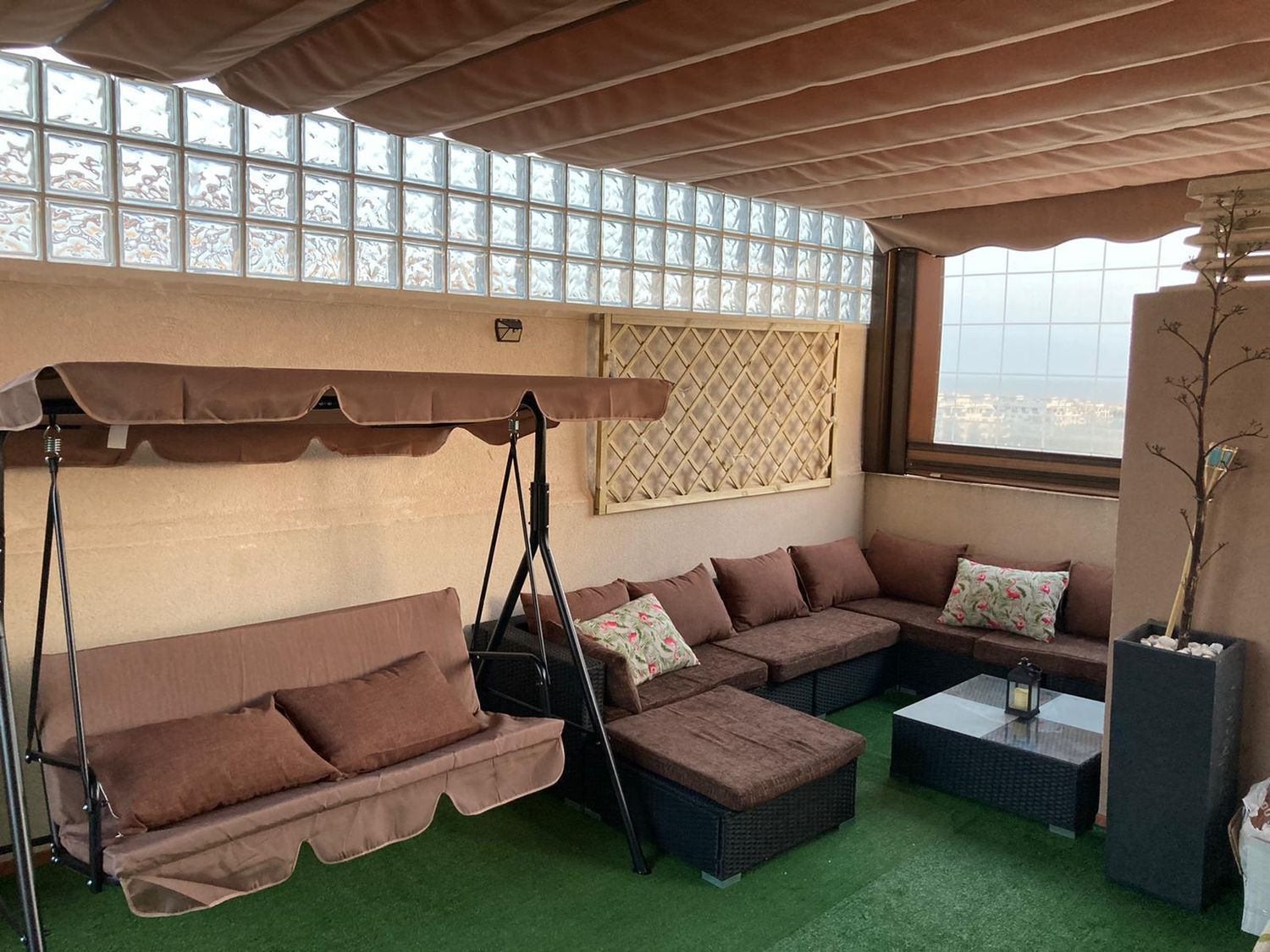 �ESPECTACULAR�ático dúplex en venta en el Toyo con vistas a la playa y al campo de golf, Hace esquina. Tiene una terraza de 75m2 que ofrece unas vistas increíbles, con cesped artificial zona de barbacoa, fregadero un trastero en la terraza con frigorífico y mini cocina, pérgola de aluminio con toldos que se pueden abrir y cerrar completamente y 75 m2 de vivienda, con un total de 150m2, posibilidad de hacer uno o dos dormitorios más. tiene dos terrazas una en salón cerrada con cortinas de cristal y una terraza en el dormitorio principal. suelo vinilico en toda la vivienda y pintada. Dispone de 2 dormitorios, uno de matrimonio con vistas a la piscina. La cocina está abierta al salón, creando un espacio moderno y funcional. En el precio incluye una plaza de garaje y un trastero. Además, el residencial cuenta con zonas de juegos infantiles, una pista de pádel y piscina. Directamente de particular sin ningún gasto de comisiones.
