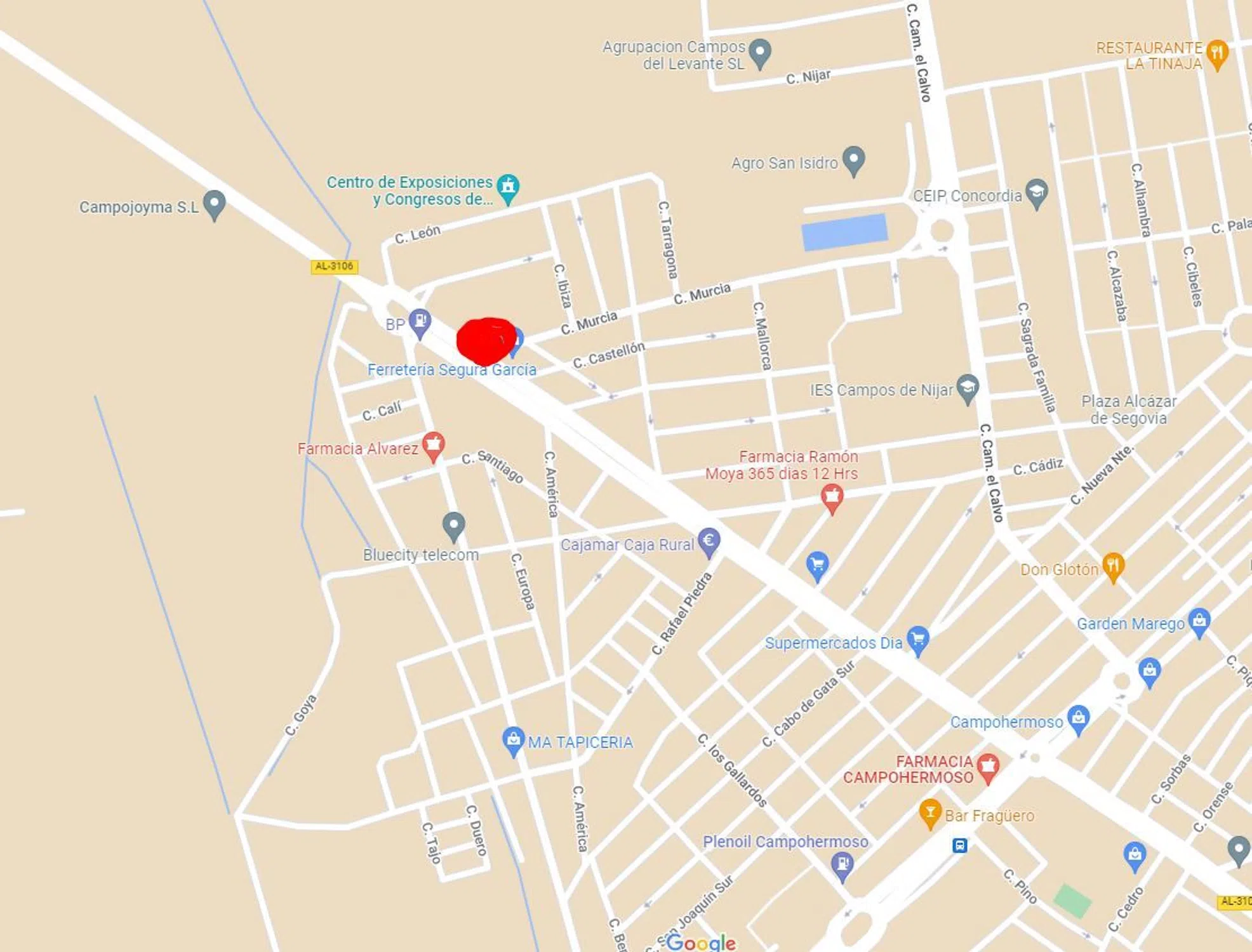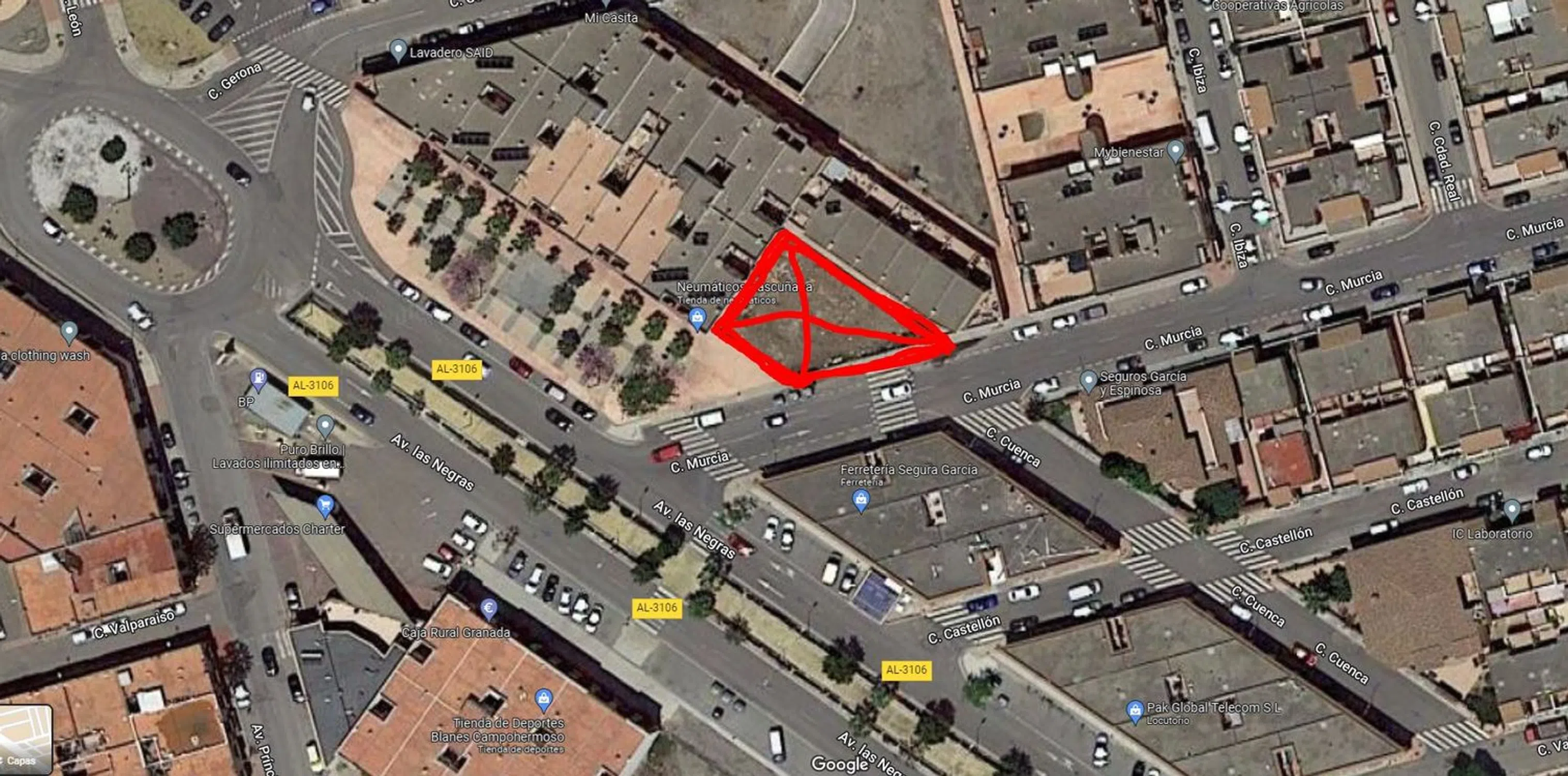Solar en ubicación excepcional! . En plena entrada a Campohermoso, haciendo esquina en Avenida Las Negras. Rodeado de área residencial y zonas comerciales en plena expansión. Muy cerca de Palacio de Exposiciones.