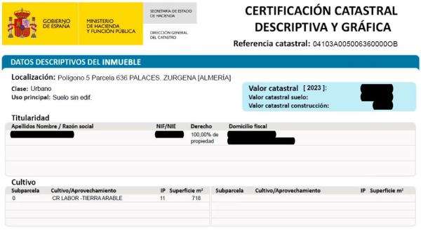 Finca urbana situada en la localidad de El Palacés, en el municipio de Zurgena (Almería). Solar ideal para construir un chalet, con piscina y un gran jardín, en una zona muy tranquila y con muy buen clima. Consta de una superficie de 718 metros cuadrados disponibles para construcción, con acceso directo a carretera y demás servicios públicos. Lindando con la misma se encuentran diversos chalets con piscina y jardín, residencia de familias muy tranquilas de origen británico. La finca se encuentra ubicada a 4 kilómetros del municipio de Zurgena, donde se encuentran todo tipo de servicios públicos (banco, supermercado, farmacia, centro sanitario, colegio, bares, etc. ). A tan solo 6 kilómetros se conecta con la autovía A-7, asimismo a 28 kilómetros, por esta misma autovía, a 25 minutos en coche se conecta con las playas de Vera, Garrucha, Mojácar o Villaricos. El hospital de Huércal-Overa se sitúa a solo 18 kilómetros de distancia. Para más información, puede ponerse en contacto telefónico o mediante correo electrónico.