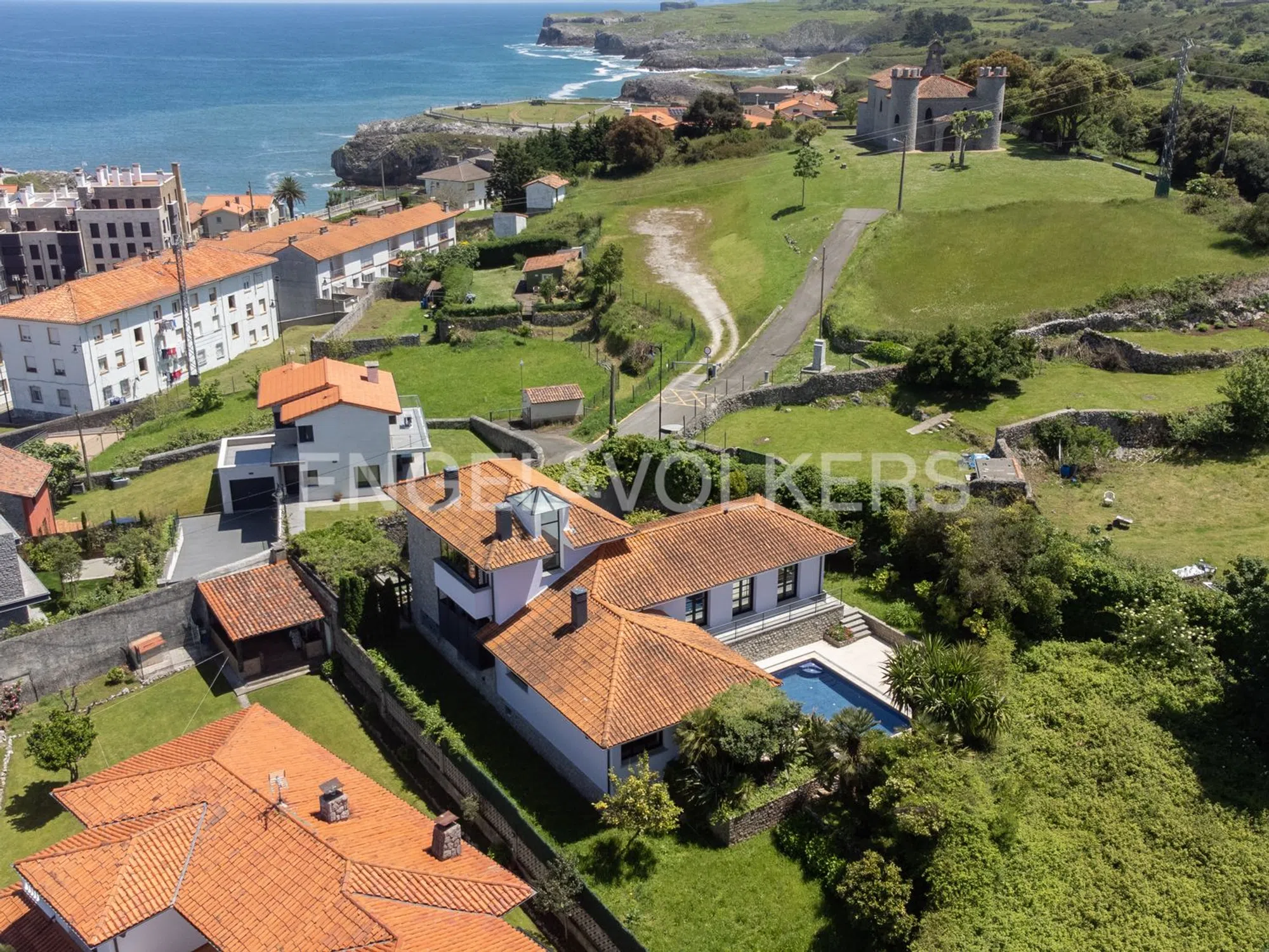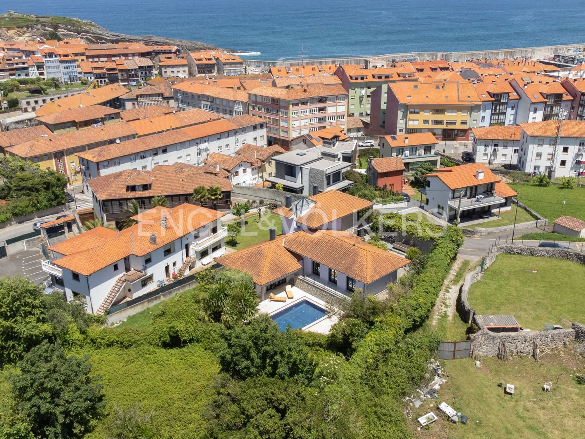 Engel&Völkers tiene el placer de presentar en exclusiva esta espectacular propiedad con unas vistas y un entorno inmejorables en la villa de Llanes. La vivienda cuenta con 401m² construidos sobre una finca de 1084m². Los cristales espejo, el impresionante muro de piedra que rodea la propiedad y una vegetación frondosa ofrecen una privacidad total a la casa. La planta principal cuenta con un espacioso hall de entrada iluminado por un tragaluz, una cocina estilo americano, un office con zona de lavandería, un amplio salón comedor con salida a la piscina y bajada al garaje, dos dormitorios, ambos con salida a la terraza y comunicados con el jardín y la piscina, un cuarto de baño completo y un aseo de cortesía. La primera planta nos deleita con unas espectaculares vistas panorámicas tanto desde el dormitorio principal como desde su baño en suite. Desde aquí podemos apreciar el mar, la Sierra del Cuera, la Capilla de la Guía y la Villa de Llanes. El sótano se compone de un amplio garaje, un txoko con cristales de pavés que proporciona una bonita luz natural, chimenea, y salida al cenador, un aseo, una sala de calderas, dos almacenes y un cuarto de máquinas. Accedemos a la propiedad a través de un portón automático con entrada directa al garaje. Nos recibe un jardín zen de estilo japonés con un cenador al que da sombra una preciosa glicinia. El jardín trasero ofrece un ambiente íntimo con una piscina rodeada de palmeras. La casa cuenta con sistema de vigilancia, suelo radiante y persianas eléctricas para mayor comodidad y confort. Si busca lujo y privacidad, no dude en contactar con nosotros. Esta singular propiedad domina la villa de Llanes, capital del concejo que lleva su nombre, en el Oriente de Asturias. Se encuentra a tan solo 200 m de la playa de Puertu Chicu, a 90 km de Santander y su aeropuerto, a 100 km tanto de Gijón como de Oviedo, y a 126 km del aeropuerto de Asturias. Sólo la separan 5 km del campo de Golf de Llanes. Llanes es una de las capitales turísticas de Asturias. Cuenta con un patrimonio artístico muy extenso en iglesias, casonas y palacios además de un puerto pesquero tradicional. Tres playas (El sablón, Puerto Chico y Toró) y un paseo espectacular sobre acantilados añaden encanto a la atmósfera costera. La capilla de La Guía, con aspecto de castillo, data del siglo XVI. Sufrió continuas reformas hasta alcanzar su estado actual. Situada en un alto con espectaculares vistas panorámicas tanto al Mar Cantábrico como a la montaña y la villa de Llanes. La Guía es uno de los tres bandos de Llanes, junto con San Roque y La Magdalena. La fiesta de la virgen de La Guía, declarada de interés turístico nacional, se celebra el día 8 de Septiembre. En definitiva, esta propiedad está ubicada en una zona que permite al propietario poder disfrutar del mar y de la playa, de la alta montaña o de la tranquilidad y el sosiego del campo.