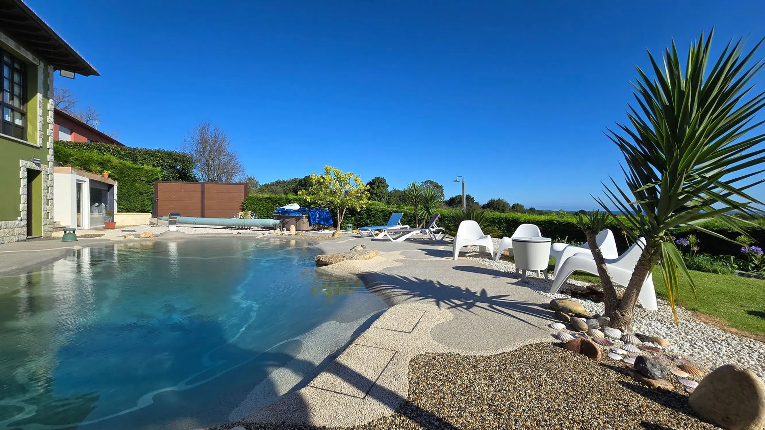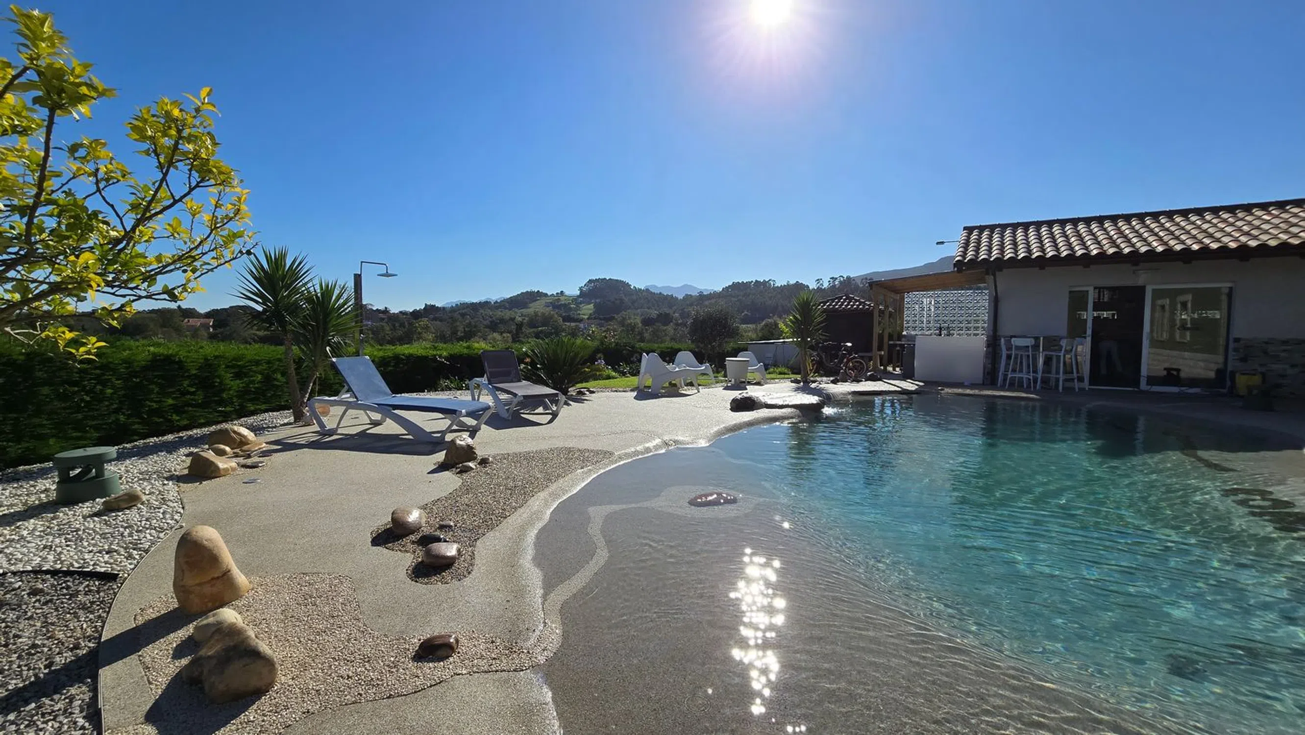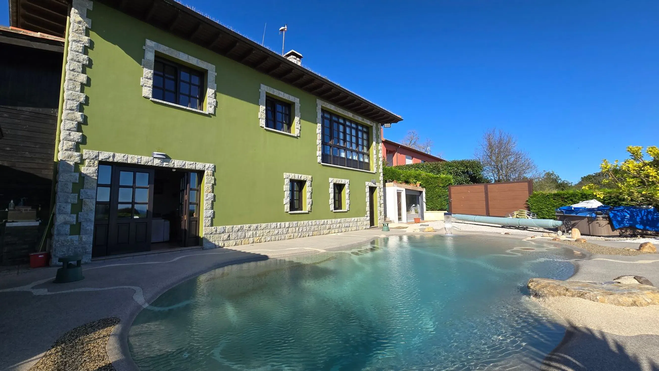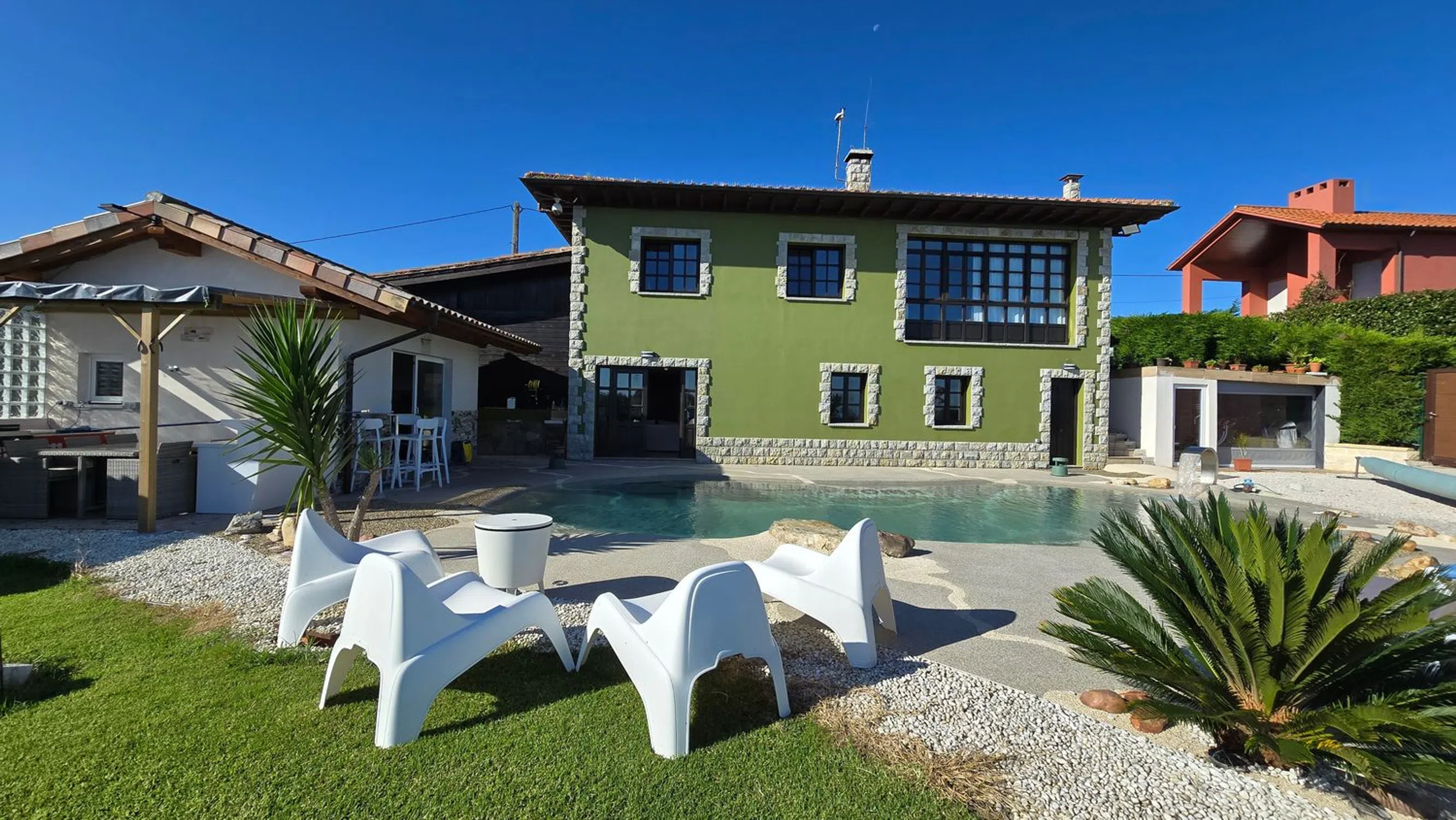 Exclusiva propiedad con impresionantes vistas y todas las comodidades Esta espectacular casa, diseñada al detalle, se encuentra en una ubicación inmejorable, rodeada de verdes campos y con los famosos Bufones de Pría en el horizonte. A solo 5 minutos de las playas de Cuevas del Mar y San Antonio, y a 15 minutos de Llanes y Ribadesella, ofrece fácil acceso tanto a la naturaleza como a todos los servicios de Nueva de Llanes, situada a solo 5 minutos. La propiedad está enclavada en un terreno soleado y se distribuye en dos plantas. La planta baja cuenta con un salón-cocina, un baño completo, y dos habitaciones, una de ellas utilizada actualmente como oficina. Además, dispone de un gran trastero. En la planta superior, un amplio salón comedor con grandes ventanales ofrece vistas privilegiadas al mar y a los Bufones de Pría, creando un espectáculo natural único. También incluye una cocina independiente equipada con electrodomésticos de gama alta y una suite principal con un baño de mármol de la India, que cuenta con un plato de ducha de piedra natural hecho a medida. Dos habitaciones adicionales comparten otro baño completo con plato de ducha. El exterior de la casa es ideal para disfrutar de momentos inolvidables con amigos y familiares. Las construcciones auxiliares incluyen: - Sala de juegos: Equipada con un billar de tamaño oficial, futbolín y diana. - Bar privado: Con varias televisiones, barra, cañero de cerveza, fregadero, neveras y cocina. - Gimnasio: Bien ventilado, con acceso directo al jardín y equipado con máquinas de alta calidad y baño propio. - Garaje: Espacioso, con altura suficiente para dos vehículos y equipado con un banco de herramientas. La joya de la propiedad es una impresionante piscina climatizada de 13 metros, con agua salina, zonas de spa, cascadas y un efecto volcán que transforma la piscina en un jacuzzi completo. Con diversas luces de colores, esta piscina ofrece una experiencia única tanto de día como de noche. Además, una ducha exterior con agua caliente complementa la experiencia de un baño nocturno. Esta propiedad está diseñada para disfrutar de la vida al máximo, con vistas espectaculares, detalles únicos y comodidades de lujo en una de las zonas más bellas de la costa asturiana.