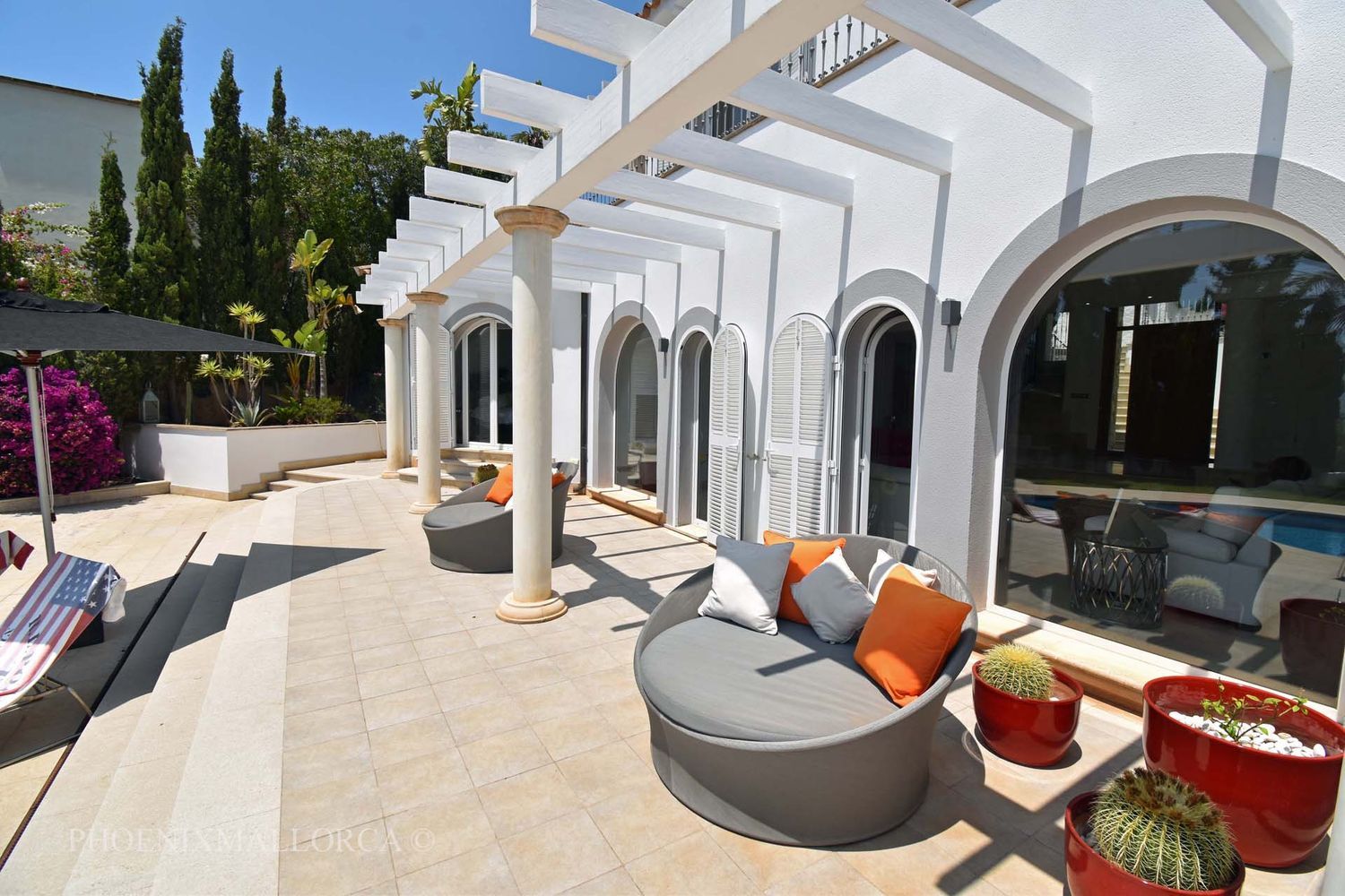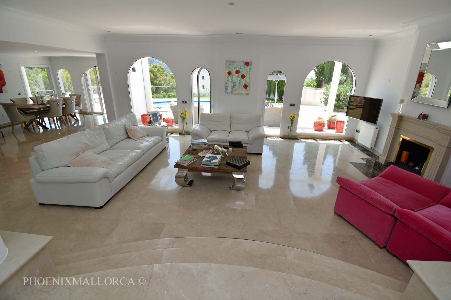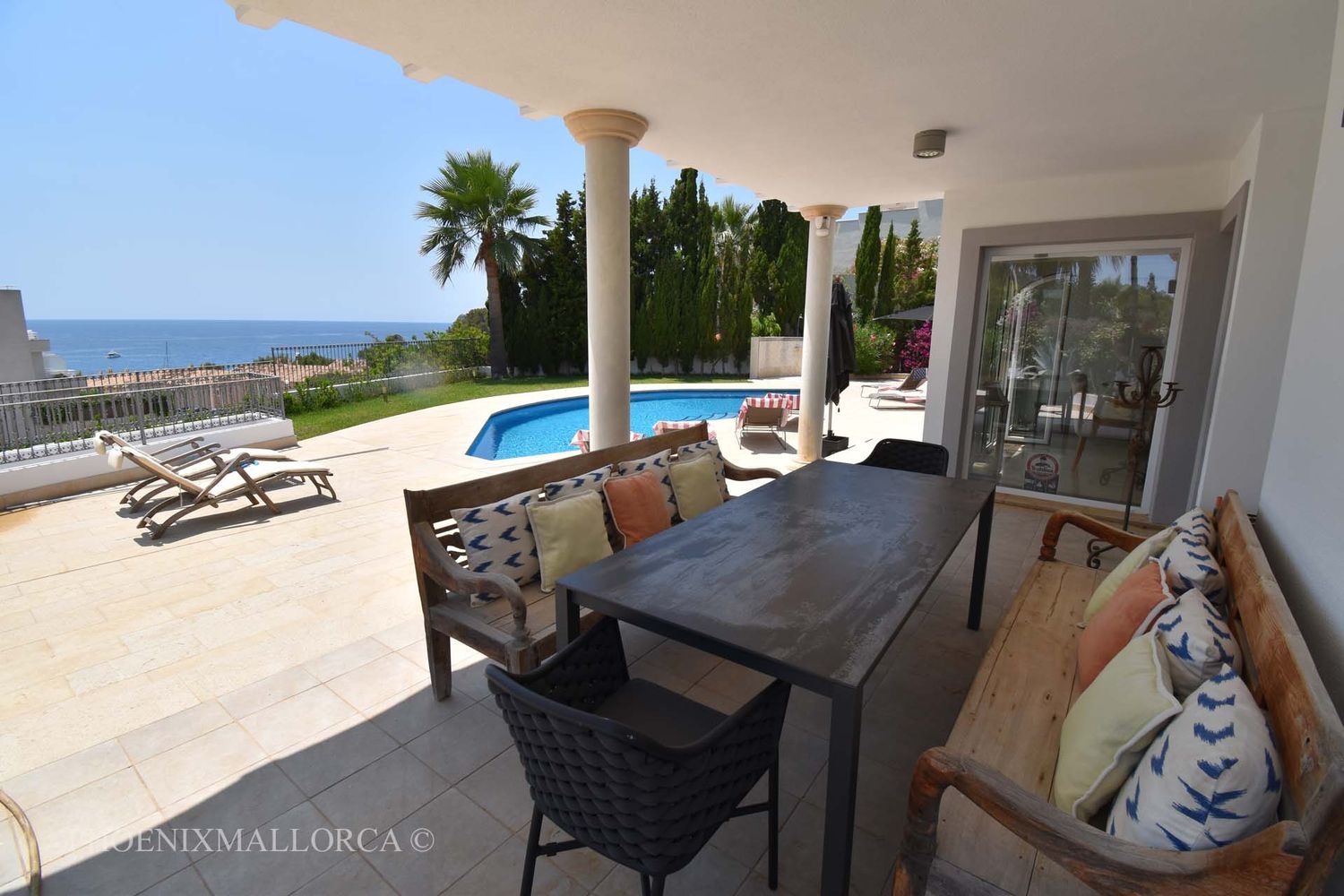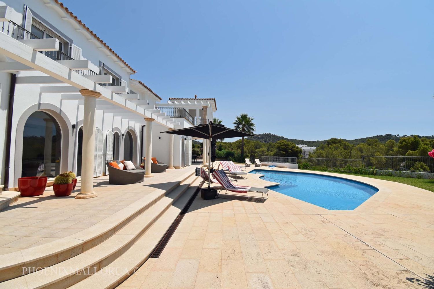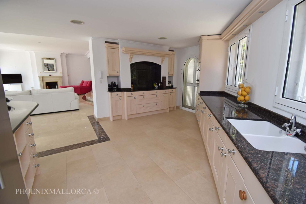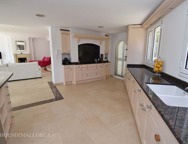 La villa ofrece en la planta baja un gran salón-comedor con acceso a una fantástica terraza con piscina, una cocina abierta, una despensa, un aseo de invitados y un dormitorio principal con baño en suite. La primera planta consta de una oficina en el rellano, 3 dormitorios con 2 baños (1 en suite), todos con acceso a una soleada terraza, con bonitas vistas al mar ya la montaña. También existe la posibilidad de crear un quinto dormitorio con baño en suite, si es necesario. La zona de la piscina ofrece amplias terrazas soleadas abiertas y cubiertas, jardín de césped con riego automático de agua, ducha exterior y aparcamiento para varios coches. La casa se vende amueblada, y está equipada con suelos de mármol, chimenea, doble acristalamiento con persianas de aluminio, A/C frío/calor, TV e Internet, y se encuentra a poca distancia andando del mar. El puerto de Andratx y la ciudad de Palma se encuentran a poca distancia en coche. Esta es una casa familiar ideal, rodeada de naturaleza, playa y golf. VENTA EXLUSIVA CON PHOENIXMALLORCA. COM.