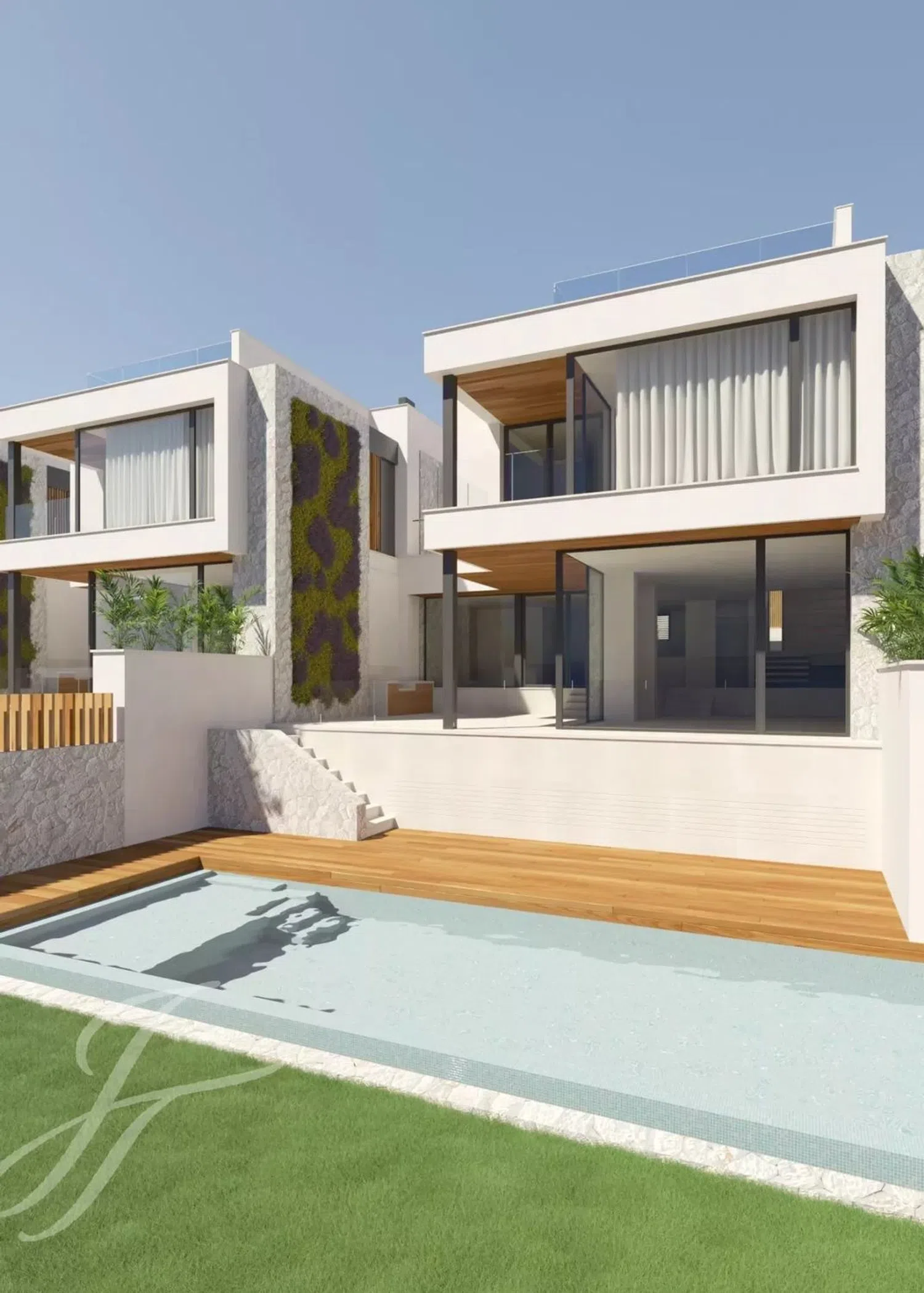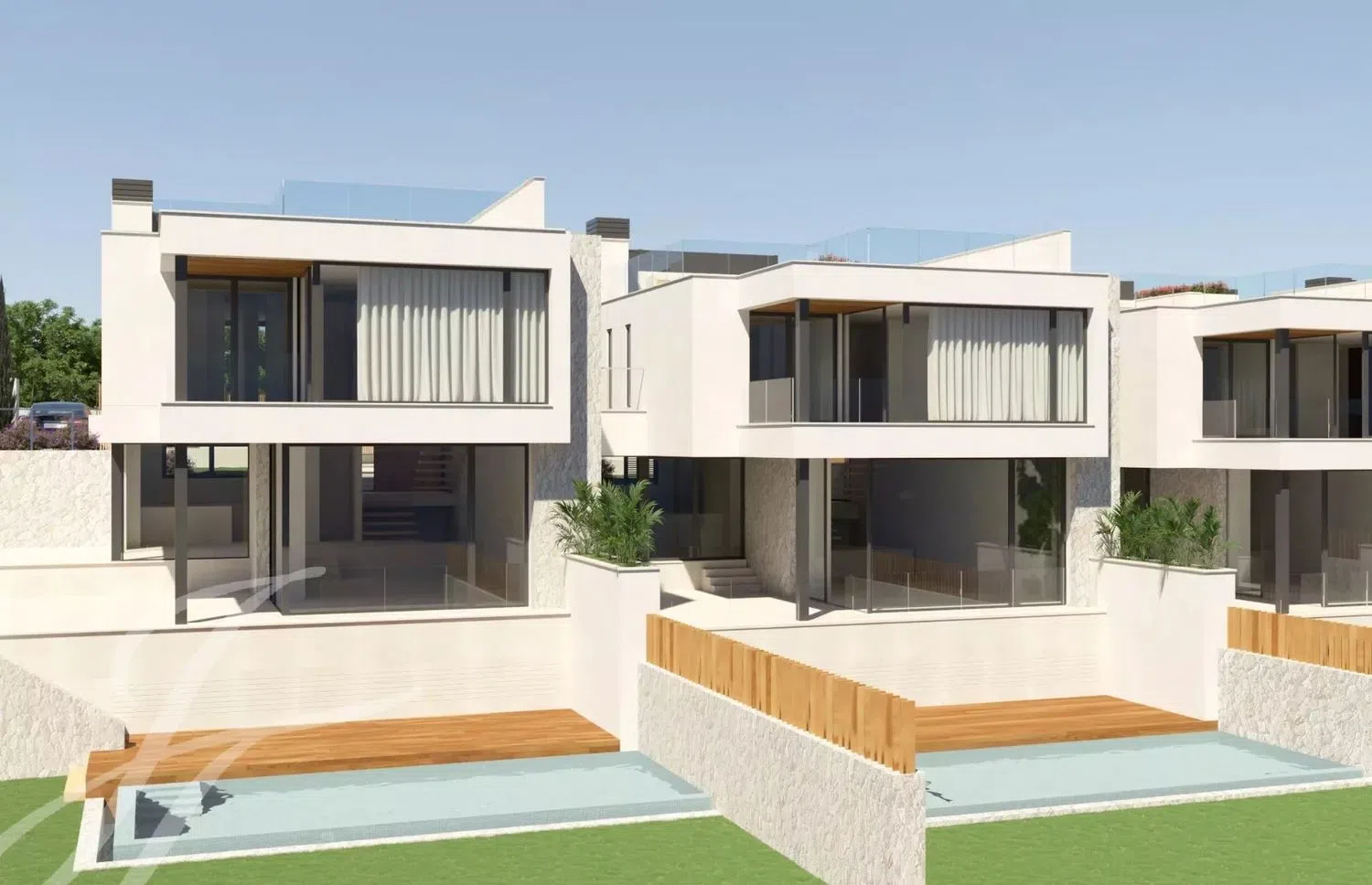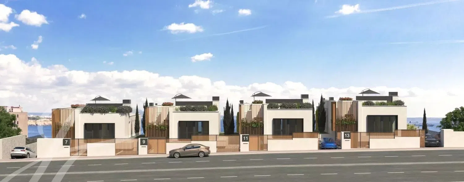 Nuevas villas de lujo con vistas al mar ¿Está buscando lo último en viviendas de lujo en el suroeste de Mallorca? ¡No busque más! Ya está aquí Bell Puig Villas, el proyecto de construcción más reciente de Gigaron Spain ubicado en el codiciado barrio de Ca's Catala. Esta pequeña comunidad de sólo cuatro villas exclusivas se encuentra a sólo cinco minutos a pie de la playa y ofrece lo mejor de ambos mundos: un entorno tranquilo y privado, pero a tiro de piedra de la vibrante ciudad cosmopolita de Palma, el campo de golf de Bendinat y el famoso puerto de Portals Nous. El equilibrio ideal de serenidad y comodidad tanto para vivir todo el año como para pasar sus vacaciones. Aquí disfrutará de lo mejor del estilo de vida mediterráneo en estas amplias villas con su propio jardín y piscina privada, generosas terrazas y vistas al mar desde la planta superior y la soleada azotea. El garaje subterráneo comunitario ofrece dos plazas de aparcamiento y un amplio trastero para cada villa. Para un uso más frecuente también hay una plaza de aparcamiento exterior a nivel de calle junto a la entrada de la casa. Cada una de las cuatro villas cuenta con 300 metros cuadrados de espacio construido con cuatro dormitorios en la planta superior, cada uno con baño en suite y armarios empotrados. En la planta baja, la distribución diáfana de la cocina y el comedor con el salón en un nivel ligeramente inferior conecta a la perfección con la generosa e íntima terraza, perfecta para el entretenimiento. El moderno diseño de inspiración mediterránea se ve realzado por una fachada de piedra, un jardín vertical y una delicada carpintería, todo lo cual contribuye a la sensación de alta gama de estas nuevas viviendas. En el interior encontrará todas las características que cabe esperar de una propiedad de lujo, como calefacción por suelo radiante, aire acondicionado y una chimenea para disfrutar del confort y el estilo durante todo el año. Además, también se podría instalar un gimnasio o una sauna. ¡No se pierda esta rara oportunidad de convertirse en el orgulloso propietario de una de estas impresionantes villas nuevas con precios a partir de 3.650.000 euros! La construcción de este proyecto en una de las ubicaciones más deseadas de Mallorca ya ha comenzado, y la finalización de estas casas de lujo llave en mano está prevista para finales del 2025. ¡Póngase en contacto con nosotros hoy mismo para obtener más información sobre este emocionante proyecto de nueva construcción y reservar su vivienda en esta exclusiva comunidad!