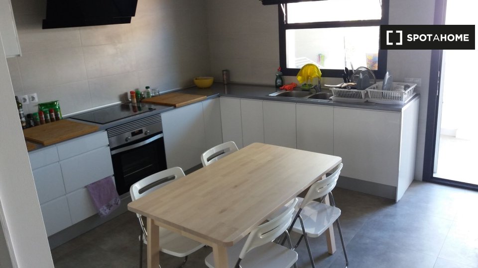 Piękny apartament z kuchnią, salonem, 3 łazienkami z prysznicem (dwie wspólne, jedna prywatna dla sypialni nr 6) i 6 sypialni, z których każda wyposażona jest w klimatyzację i biurko. Nieruchomość jest umeblowana, w której znajdziesz wszystko, czego potrzebujesz.
