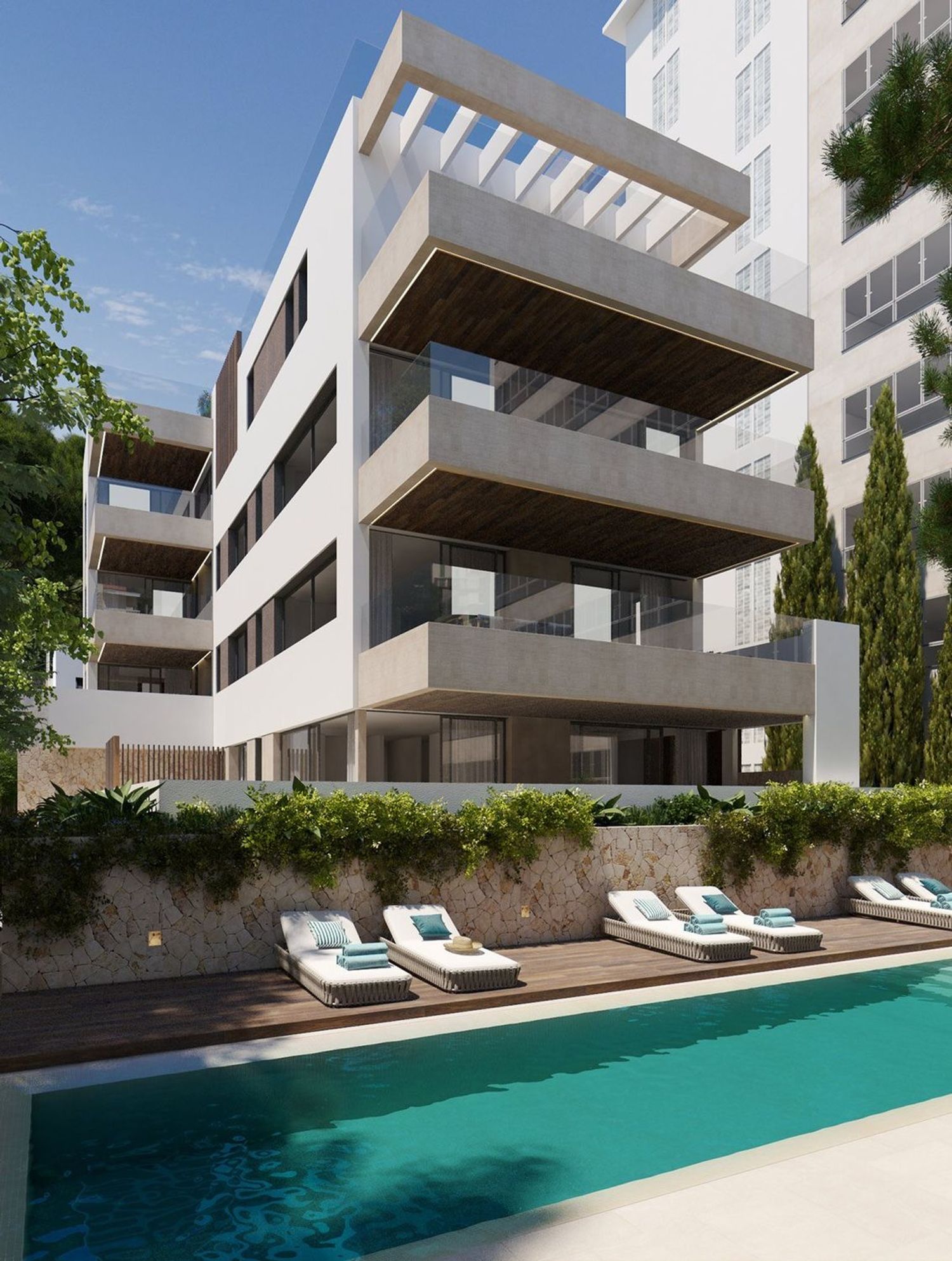 Siedem apartamentów o wysokiej jakości designie zaprojektowanych z myślą o uchwyceniu naturalnego światła poprzez przestronne okna i drzwi prowadzące na prywatne balkony. Dzięki sprzyjającemu klimatowi, można cieszyć się życiem na zewnątrz przez większą część roku. Apartamenty oferują eleganckie przestrzenie do wspólnego użytku, takie jak wejście, ogród i basen. Dodatkowo penthouse posiada prywatny taras na dachu z basenem. Każdy apartament jest wyposażony w komórkę lokatorską oraz miejsce parkingowe w podziemnym garażu.