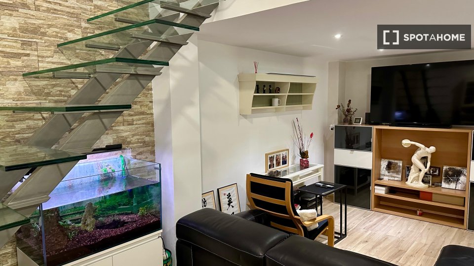 Odkryj pokój współdzielony w umeblowanym, trzypokojowym mieszkaniu w Sabadell. Ten zewnętrzny obiekt jest wyposażony we wszystko, co niezbędne, w tym w pełni wyposażoną kuchnię ze zmywarką i piekarnikiem. Dla wygody dostępne są klimatyzatory, a do wspólnych udogodnień należy pralka. Pary są mile widziane, bez ograniczeń ze względu na płeć i studentów. Wi-Fi i prąd są wliczone w cenę. Ogrzewanie jest dodatkowo płatne przez właściciela.