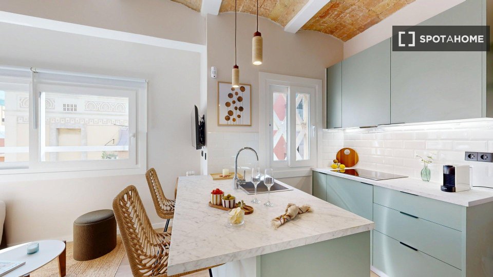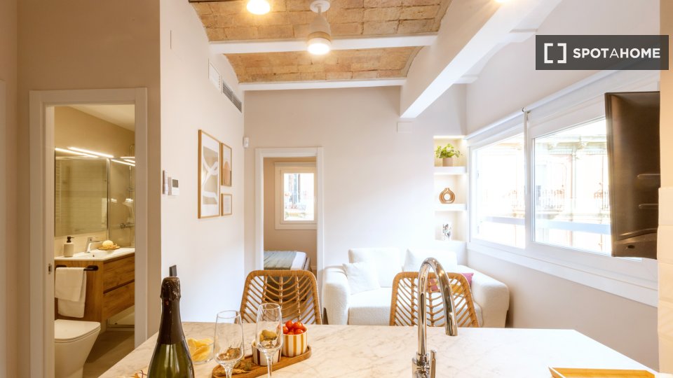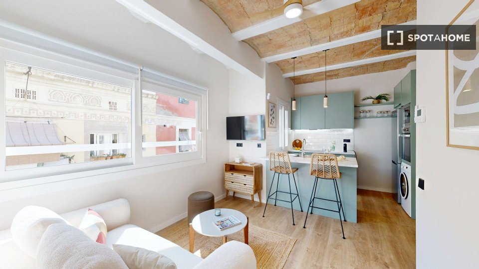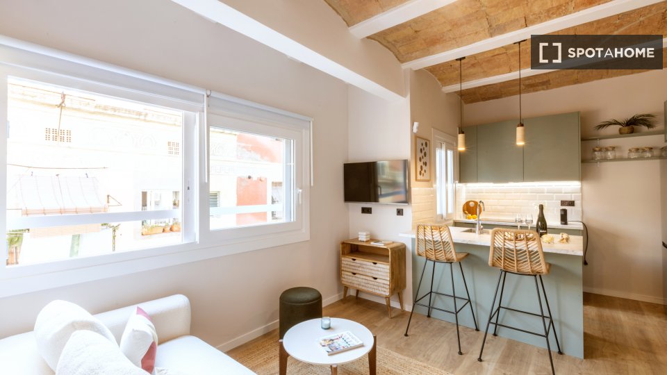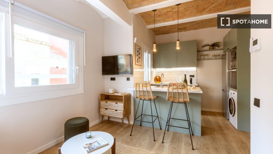 Odkryj to przytulne studio do wynajęcia w popularnej dzielnicy La Barceloneta w Barcelonie. To zewnętrzne studio jest w pełni umeblowane i wyposażone, w tym w zmywarkę i piekarnik w kuchni. Centralna klimatyzacja zapewnia komfort o każdej porze roku. Zapraszamy pary i osoby pracujące. Nieruchomość została osobiście sprawdzona przez Spotahome w celu zapewnienia jakości.