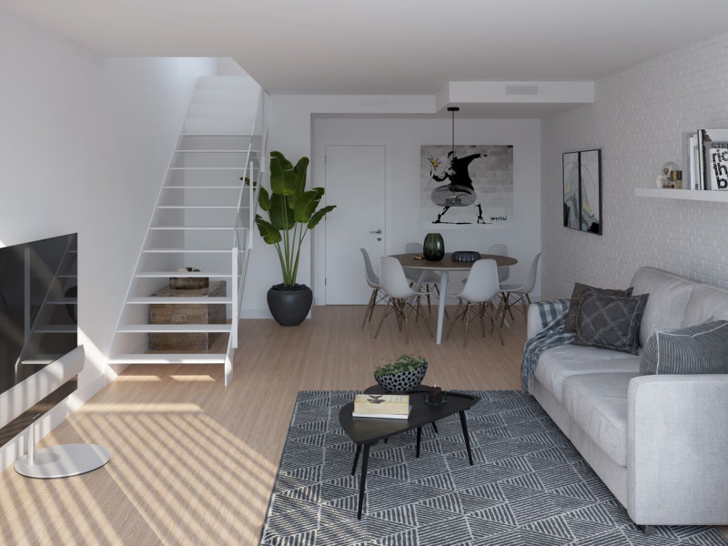 Planta Baja Dúplex con terraza privativaPrecio: 408.000€Superficie: 108m24 dormitoriosPlanta BajaTerraza: 17m2Espléndida planta baja dúplex de 108,24m2 y con atractivo porche de 9,54m2 y una terraza de 6,89m2.Es totalmente exterior (a excepción de los baños), todas las estancias están orientadas a la terraza o al porche y tiene una fantástica distribución.En la planta baja se encuentra el salón comedor con salida directa al porche, una cocina independiente con salida a la terraza, una habitación y un baño completo. En la planta superior están las otras tres habitaciones y dos baños completos.Va equipado con pavimento de parquet laminado; puertas de madera lacadas y puerta de entrada al piso blindada; armario en la habitación principal; carpintería exterior de aluminio lacado y con rotura de puente térmico; ventanas con acristalamiento con cámara y persianas motorizadas; cocina equipada con mueble alto y bajo, con encimera de Silestone y electrodomésticos de la casa Bosch; baños de diseño con espejo, plato de ducha con mampara y grifería termostática; instalación completa de climatización frío-calor con sistema de aerotermia ofreciendo máxima eficiencia energética y gran ahorro económico.APRESTADORA 101 es un edificio sostenible y actual con un total de 35 viviendas, de 2, 3 y 4 dormitorios, todas con amplios ventanales que aportan la máxima luz solar a las estancias. Podrás escoger entre exclusivos dúplex con porche y terraza privativa, áticos con fantásticas terrazas, y pisos totalmente exteriores con atractivos balcones. El edificio cuenta también con la posibilidad de parkings y trasteros opcionales, y locales comerciales.Sabemos que nuestros clientes buscan lo mejor, por esto hemos ideado este edificio aplicando la innovación tanto en el diseño como en los elementos constructivos. Cuidamos los acabados creando espacios acogedores y buscamos que nuestros pisos sean un hogar para ti. Como aspecto distintivo, te damos la opción de personalizar algunos elementos de tu casa y así darle tu toque personal. Te gustará poder escoger y combinar materiales y colores.APRESTADORA 101 está rodeada de todos los servicios que facilitan el día a día: colegios, institutos, centros de salud, supermercados, centros deportivos, hoteles de prestigio, oficinas de negocios y toda clase de establecimientos de proximidad.