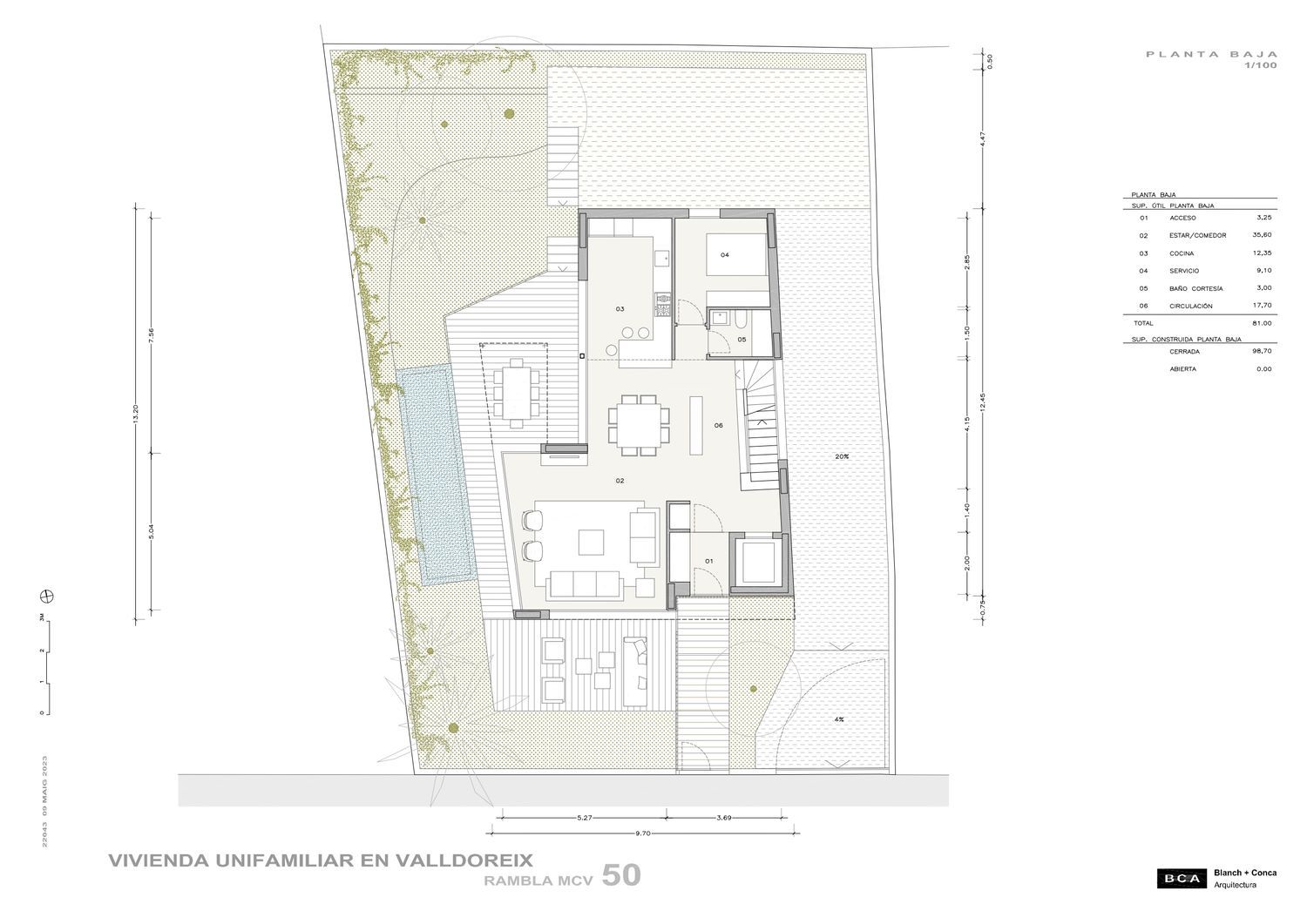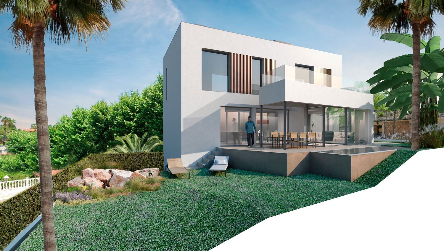 Espectacular propiedad de obra nueva ubicada en Sant Cugat del Vallés, ubicada en la calle Rambla Mossèn Jacint Verdaguer 28. Se trata de una casa de 537m2 distribuida en tres plantas con características y comodidades que la hacen muy atractiva. La planta baja, con una superficie de 163m2, consta de un amplio salón comedor, una cocina totalmente equipada, un baño completo y una habitación. Esta planta ofrece un espacio cómodo y funcional para el área de estar y la cocina, brindando un ambiente acogedor para la vida diaria. Tenemos un porche de 55m2 que recorre toda la fachada de la vivienda, además claro de una gran zona de jardín y piscina. La primera planta, con una superficie de 159m2, cuenta con cuatro dormitorios dobles y tres baños, uno de ellos en suite. Los dormitorios ofrecen un espacio generoso para la comodidad de los residentes. En la habitación principal tenemos un gran vestidor, y el baño en suite agrega privacidad y conveniencia. Para completar la planta, tenemos una terraza de 55m2 que recorre todo su perímetro. La planta -1 co 213m2 alberga un parking de gran capacidad y espacios de almacenaje. Esto es especialmente conveniente para aquellos que poseen vehículos y desean tener un lugar seguro y protegido para estacionar. La vivienda se encuentra en la mejor zona de Valldoreix, una ubicación privilegiada en Sant Cugat del Vallés. Además, está cerca de los ferrocarriles catalanes, lo que facilita el acceso al transporte público. Es importante destacar que este proyecto ha sido desarrollado por el prestigioso estudio de arquitectura BCA. Esto es garantía de diseño y calidad, así como una atención al detalle en cada aspecto de la construcción, teniendo muy en cuenta la eficiencia energética de la misma.