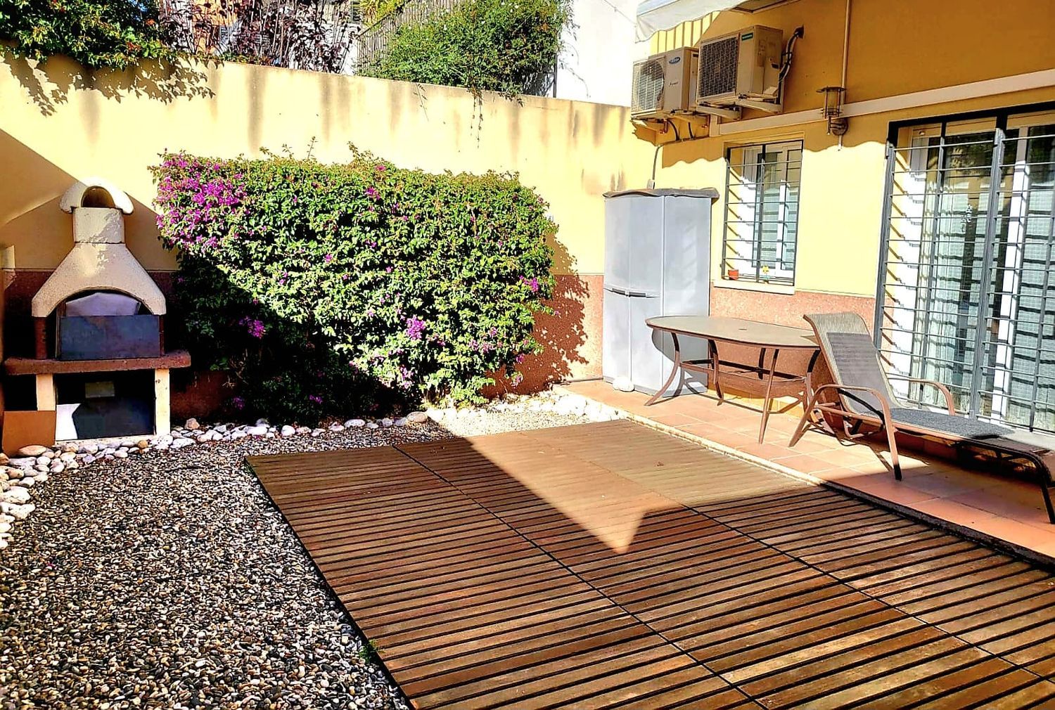 Planta baja con 87 metros cuadrados + 41 de terraza, situada en una calle muy tranquila, con 3 habitaciones, dos dobles y una individual y dos baños completos, todo ello muy bien conservado. Muy soleado, con orientación sur oeste y situado en Sitges centro, a 8 minutos caminando del Mercado Municipal y de la Renfe. Con Farmacia, Supermercado y parada del Bus muy cerca de la vivienda y al lado de un bonito parque.
