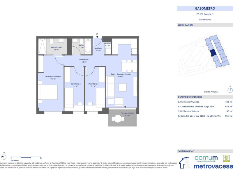 Gasòmetre es una promoción ubicada en Terrassa, en pleno barrio Segle XX. Un proyecto con 98 viviendas plurifamiliares de 1, 2, 3 y 4 habitaciones repartidas en dos edificios, uno de ellos con zona comunitaria con piscina.Las viviendas disponen de unas excelentes distribuciones. Dispone además de dos plantas sótano con garajes y trasteros. La excelente orientación de ambos edificios, con una nueva plaza con parque y zonas de descanso como eje de ambos, permite el aprovechamiento del asoleamiento en todas las viviendas, así como la integración con el entorno de la plaza de nueva creación.A su vez, dispone de unos interiores modernos con materiales nobles y de primera calidad, con buenas distribuciones que permiten una gran calidez en sus estancias. Esta promoción es un referente de calidad medio ambiental y urbano. Su buena ubicación en Terrassa le sitúa en una zona residencial bien comunicada, con fácil acceso a todo tipo de servicios y a escasos minutos del centro. Es tu vida, elige dónde vivirla.