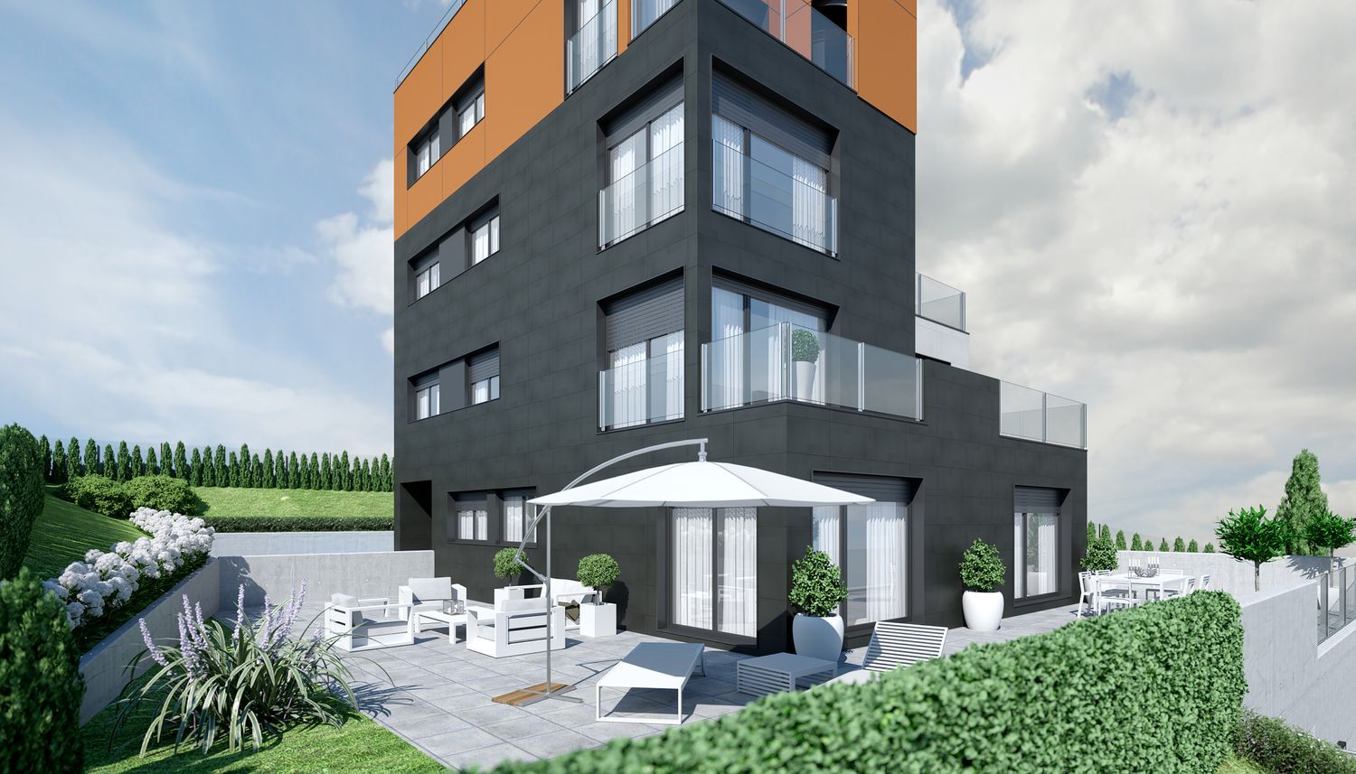 Na działce o powierzchni 800 m² z frontem do ulicy Ernest Lluch planuje się budynek z wentylowaną fasadą i porcelanowym wykończeniem, oferujący trzy rodzaje mieszkań: na parterze mieszkanie z 4 sypialniami, dużym tarasem i ogrodem w pobliżu basenu, dwa mieszkania z 3 i 4 sypialniami z południowymi tarasami na pierwszym i drugim piętrze oraz ekskluzywne mieszkanie na poddaszu z 3 sypialniami i południowymi tarasami na trzecim piętrze, obejmujące całą powierzchnię dachową budynku.