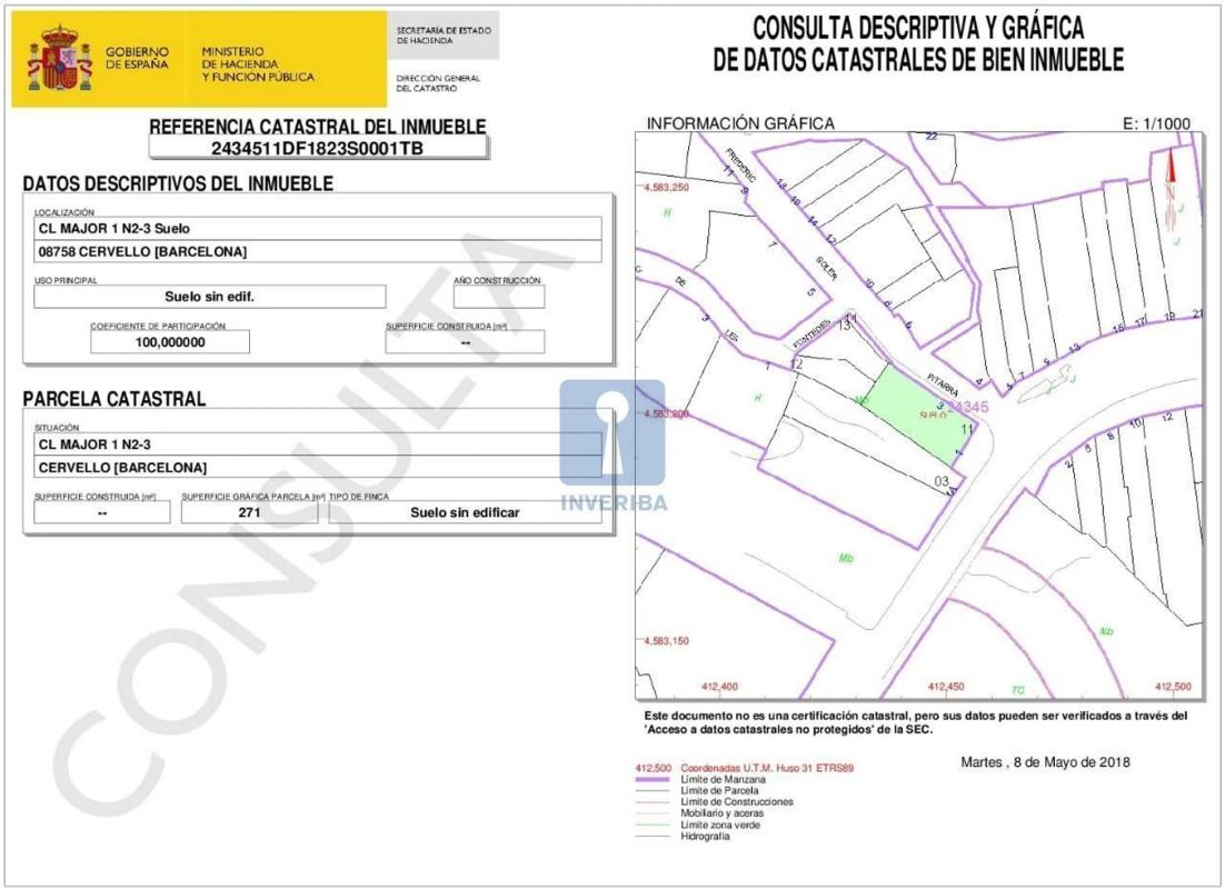 La parcela analizada se trata de un solar sin edificación existente, en una urba...