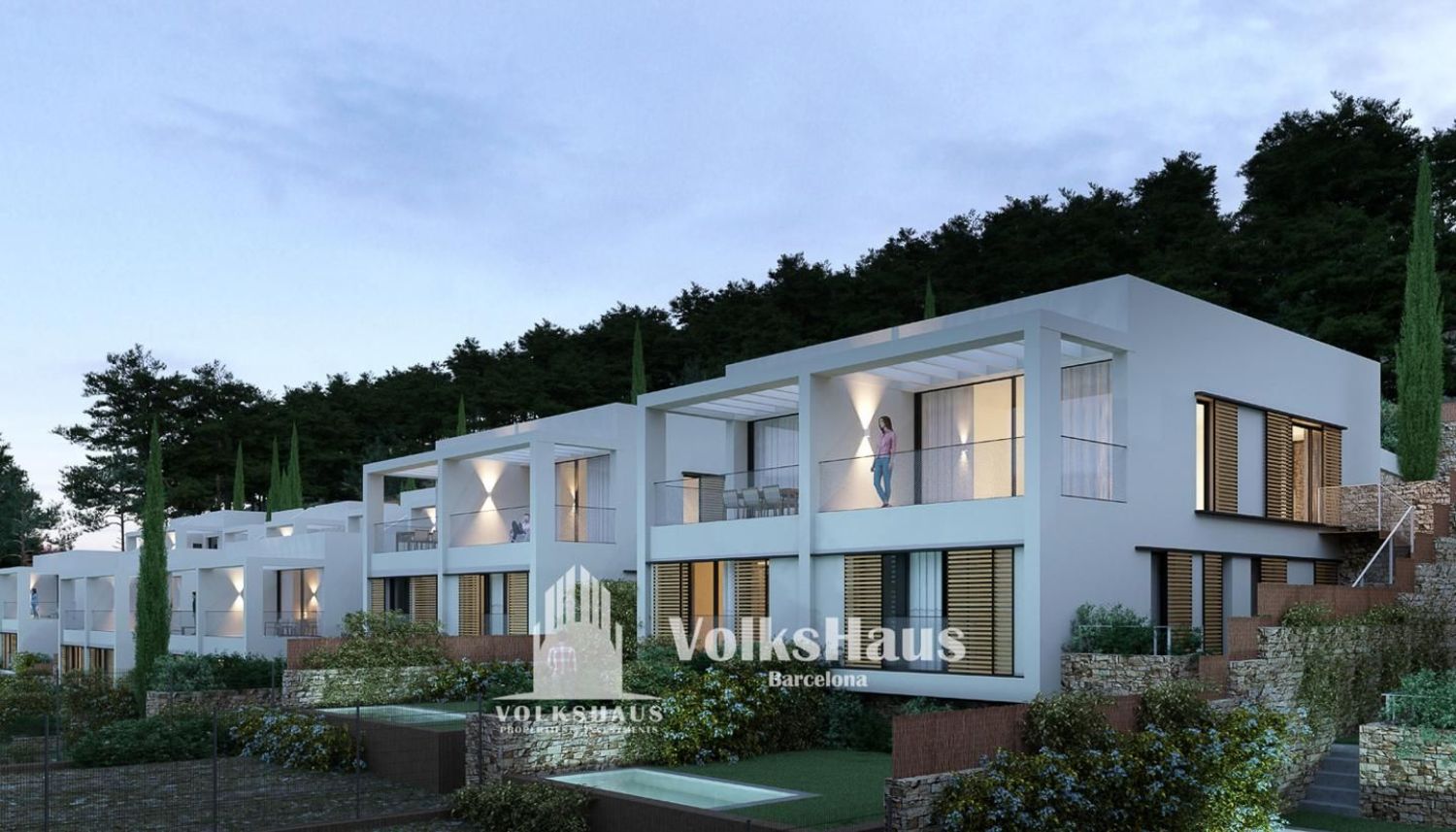 VOLKSHAUS comercializa esta exclusiva promoción de villas de lujo en Begur, una de las localidades más emblemáticas y exclusivas de la Costa Brava. SA BLAVA BEGUR RESIDENCIAL nace en lo alto de una suave ladera, integrándose al espectacular paisaje de estas costas, a tan solo 4 minutos del centro y con fácil acceso a las playas más bonitas como Sa Tuna, Aiguablava, o Sa Riera.Viviendas de líneas depuradas, minimalistas y acabados exquisitos, donde la naturalidad y sostenibilidad de los materiales se funde con el entorno, creando un ambiente lleno de luz, de belleza y paz.Se trata de un conjunto residencial de 12 viviendas de lujo organizadas en 6 edificaciones de dos casas pareadas en cada una. Cada vivienda dispondrá de su propio jardín privado con piscina, así como de dos plazas de aparcamiento. Viviendas con hermosas vistas al mar, al pueblo de Begur y a las maravillosas Islas Medas.Distribución:El conjunto dispondrá de dos tipos de viviendas, todas con similar distribución interior, cocina abierta al salón-comedor de grandes ventanales, soleadas terrazas, baño completo en planta principal, tres dormitorios-suite, todos con salida al jardín, lavadero, piscina, garaje para dos coches y trastero.Villas tipo A:Constan de dos plantas, con una superficie de vivienda a partir de 186 m2 construidos y jardines que oscilan entre los 127 m2 y los 220 m2. Parcelas a partir de 314 m2.En la planta principal encontramos un espacioso comedor de grandes ventanales con acceso a la soleada terraza con vistas. En la misma planta tenemos una moderna cocina abierta totalmente equipada y un baño de cortesía completo. En ella accedemos al jardín y a la piscina por una escalera exterior.En la planta baja tenemos tres amplias suites, todas ellas con salida directa al jardín y un lavadero. Villas tipo B:Constan de 3 plantas, con una superficie de vivienda a partir de 245 m2 construidos y jardines que oscilan entre 132m2 y los 168m2. Parcelas a partir de los 314m2.Esta tipología de villa dispone de ascensor interior.En la planta superior y de acceso a la vivienda, tenemos un luminoso hall, a través de él accedemos a la escalera y al ascensor. En la misma planta y a diferencia de las Villas tipo A encontramos una gran terraza de unos 35m2.En la planta principal nos encontramos con un amplio comedor de grandes ventanales con acceso a la soleada terraza con vistas. En la misma planta tenemos una moderna cocina abierta totalmente equipada y un baño de cortesía completo. En ella accedemos al jardín y a la piscina.En la planta baja tenemos tres amplias suites, todas ellas con salida directa al jardín y un lavadero. Todas las villas están preparadas para instalar chimenea en el salón según preferencia del cliente.Los garajes se encuentran situados delante de cada vivienda, acceso a ellos por una calle privada perteneciente al mismo complejo de villas. Acabados de primera calidad tanto en exteriores como en todas los estancias de la vivienda.