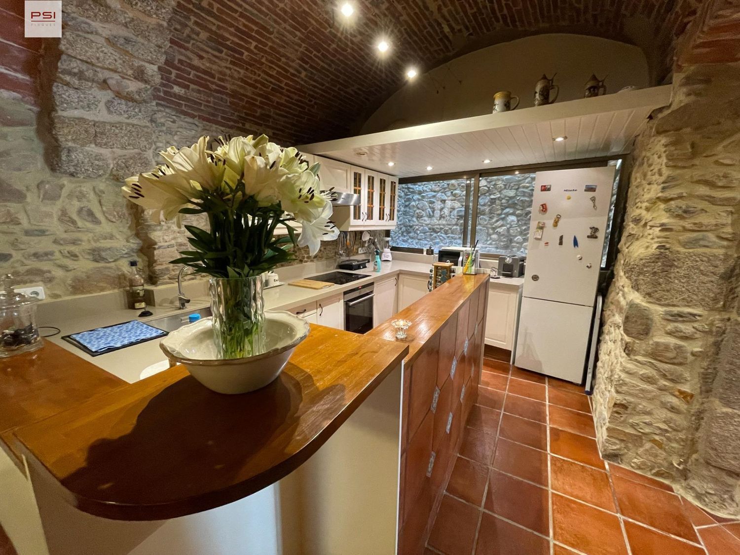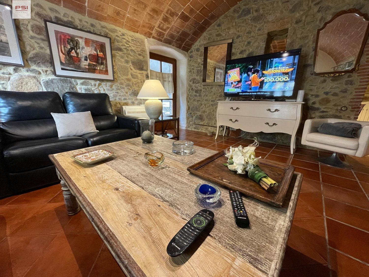 La planta baja acoge un salón espacioso y elegante, que invita a la convivencia y al descanso, con acceso directo a una acogedora terraza. Esta área exterior es un verdadero oasis, equipado con una chimenea y una barbacoa, perfecta para disfrutar de las noches frescas o para entretenimiento al aire libre. La cocina, un espacio de ensueño para cualquier chef, está totalmente equipada y se abre a una sala de comedor diáfana. Aquí, los techos originales de bóveda catalana y una chimenea típica de la región añaden un encanto histórico inigualable. Además, un aseo de cortesía complementa esta planta. La funcionalidad se ve reforzada por un parking que incluye armarios decorativos, la caldera y una zona de lavandería equipada con electrodomésticos de última generación.Subiendo a la primera planta, nos encontramos con cuatro habitaciones dobles en suite. Cada una de estas habitaciones es un santuario de luz y espacio, con armarios empotrados y paredes de piedra que añaden un carácter rústico y acogedor. La segunda planta alberga una habitación en suite especial, que se distingue por su terraza privada ofreciendo vistas pintorescas del pueblo, un lugar perfecto para relajarse y contemplar la vida local.La casa está equipada con calefacción mediante radiadores eléctricos y aire acondicionado por splits, asegurando confort en cualquier estación del año. A pesar de poseer una licencia turística para ocho personas, este permiso nunca ha sido utilizado, lo que sugiere un potencial sin explotar para futuros propietarios interesados en el alquiler vacacional.Lo que realmente hace especial a esta propiedad es su reforma, llevada a cabo por un arquitecto de renombre que ha sabido respetar la esencia de la casa a la vez que incorpora las mejores calidades de construcción. La elegancia de la piedra y las vigas de madera son testimonio del diseño característico de las masías catalanas.El entorno de la casa está a punto de enriquecerse aún más, con un proyecto del Ayuntamiento para construir una casa señorial destinada a promocionar degustaciones de vinoteca con firmas nacionales e internacionales. Además, frente a la casa, se ha aprobado la creación de un gran parque que promete embellecer aún más la zona.