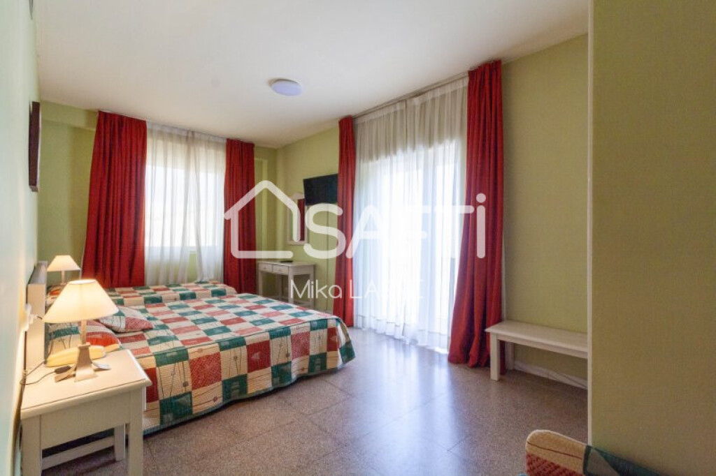 En Venta Edificio Hotelero situado cerca del mar y zona deportiva con fuerte atractivo turístico .Edificio con licencia hotelera reformado en 2000 se compone de 4 plantas con una superficie de 4315 m2 construido y un total de 58 habitaciones . Hotel con Parking privado, piscina 160 m2, Bar-Terraza lounge 60 m2 ,terraza cubierta 128 m2 con capacidad 140 personas, zona ajardinada ,mini golf de 8 hoyos, restaurante con cocina equipada de 150 m2 , cuarto de lavanderia, dos ascensores uno para los huéspedes del hotel y el otro para el personal .En la planta principal recepción , restaurante que dispone dos salas de 60 y 80 comensales actualmente una de ellas para el de desayuno, sala de conferencia y 6 habitaciones que podrían ser reconvertidas en SPA o Gimnasio .En la primera planta se encuentra 24 habitaciones ,en la Segunda planta 21 habitaciones y en la tercera planta 3 habitaciones y en la ultima planta encontraremos un amplio piso de 95 m2 ,terraza de 50 m2 , jacuzzi con 4 habitaciones.