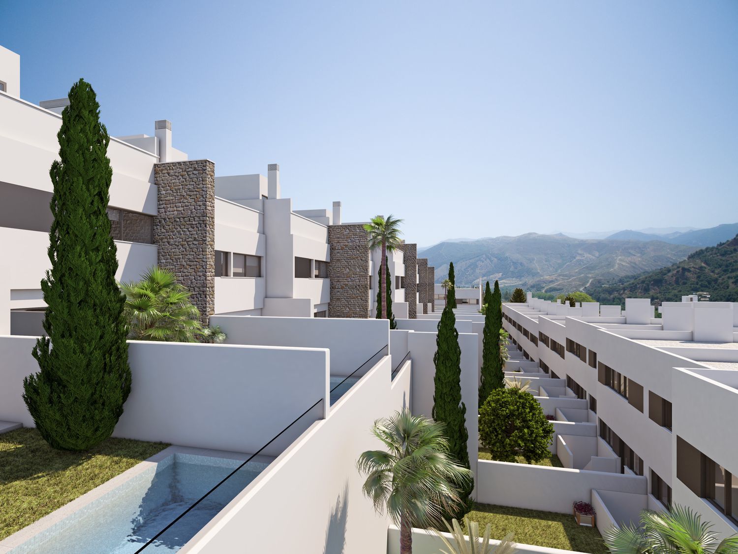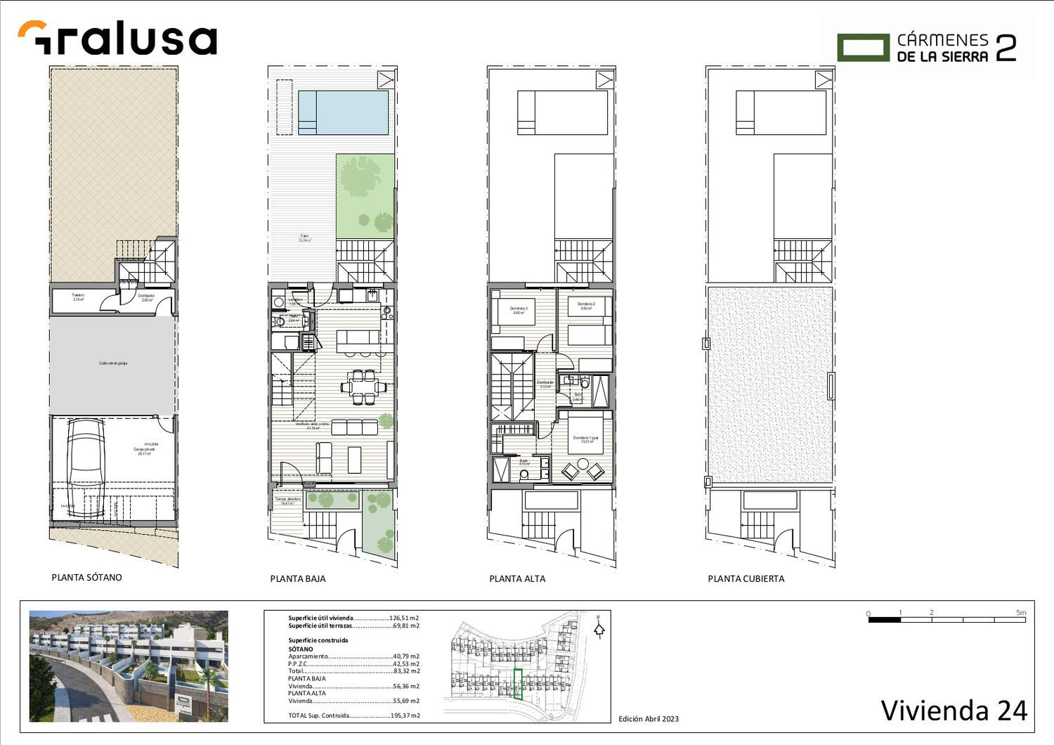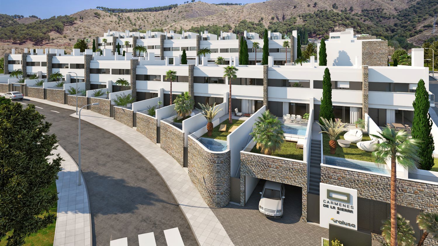 Promoción de modernos chalets adosados con amplia parcela y piscina individual. Están ubicadas en la Ctra de la Sierra en Granada capital, una de las mejores zonas residenciales de Granada por comunicaciones, ya que combina el estar rodeado de zonas verdes con tener accesos directos al centro de Granada por el paseo del salón y a la autovía. Todas las viviendas cuentan con 3 dormitorios, 2 baños y aseo, salón con amplio ventanal a la parcela individual y piscina. Las viviendas cuentan con garaje individual en semisótano para dos vehículos. Todos los chalets tienen un amplio jardín con piscina individual y algunas con dos jardines con espectaculares vistas. Algunas viviendas tienen torreón con terraza solárium. La promoción tiene unas calidades muy estudiadas para el confort de nuestros clientes, calefacción por aerotermia con suelo radiante y refrescante en toda la vivienda, piscina individual con depuración salina, ventanas con doble acristalamiento y rotura de puente térmico, calidades interiores marca Porcelanosa tanto en baños como en solerías interiores. Precios DESDE 275.000€ más IVA.