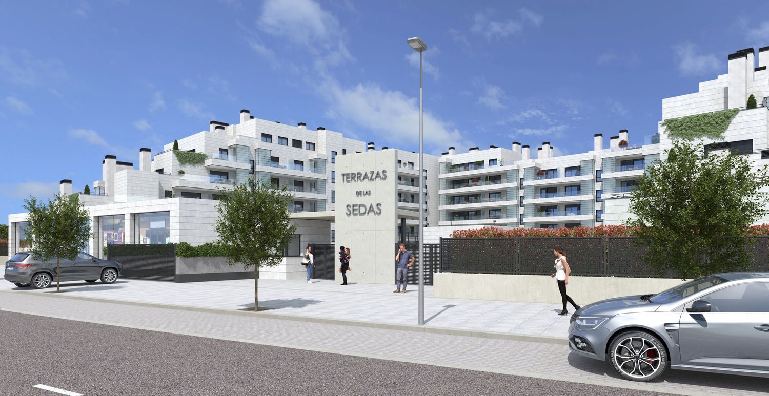 Terrazas de las Sedas, promoción de 133 viviendas ubicada en Las Sedas, Alcalá de Henares.Esta promoción incluye viviendas de 2, 3 y 4 dormitorios con terraza, así como una gran cantidad de Áticos y bajos con grandes terrazas y jardines. Las viviendas de esta promoción destacan por su luminosidad y ventilación, gracias al hecho de ser pasantes y tener varias orientaciones. El precio de la vivienda incluye una plaza de garaje y un trastero. Hay opción de comprar una segunda plaza de garaje por 11.500€. El edificio destaca por su arquitectura aterrazada y su fachada ventilada de piedra, combinada con balcones acristalados, dejando espaciosas zonas comunitarias, entre las que destacan la piscina con un jardín de césped natural, pista de pádel, zona de juegos infantil, gimnasio equipado y sala de co-working equipada. Un montón de jardineras por todas las zonas comunes, que ayudan a dar intimidad y a refrescar el ambiente. Las Sedas se sitúa al norte del término municipal de Alcalá de Henares. Este proyecto cierra el perímetro de la ciudad, interconectando su periferia con el casco urbano, Universidad de Alcalá, Hospital Príncipe de Asturias, Centro Deportivo del Atlético de Madrid… Con las mejores conexiones, por trenes de cercanías y autovías. A 5 minutos del Centro de Alcalá, 14 minutos del aeropuerto y a 24 minutos del centro de Madrid. En Las Sedas la vida se moverá entre zonas verdes, senderos urbanos y puntos de cohesión vecinal y su gran plaza.