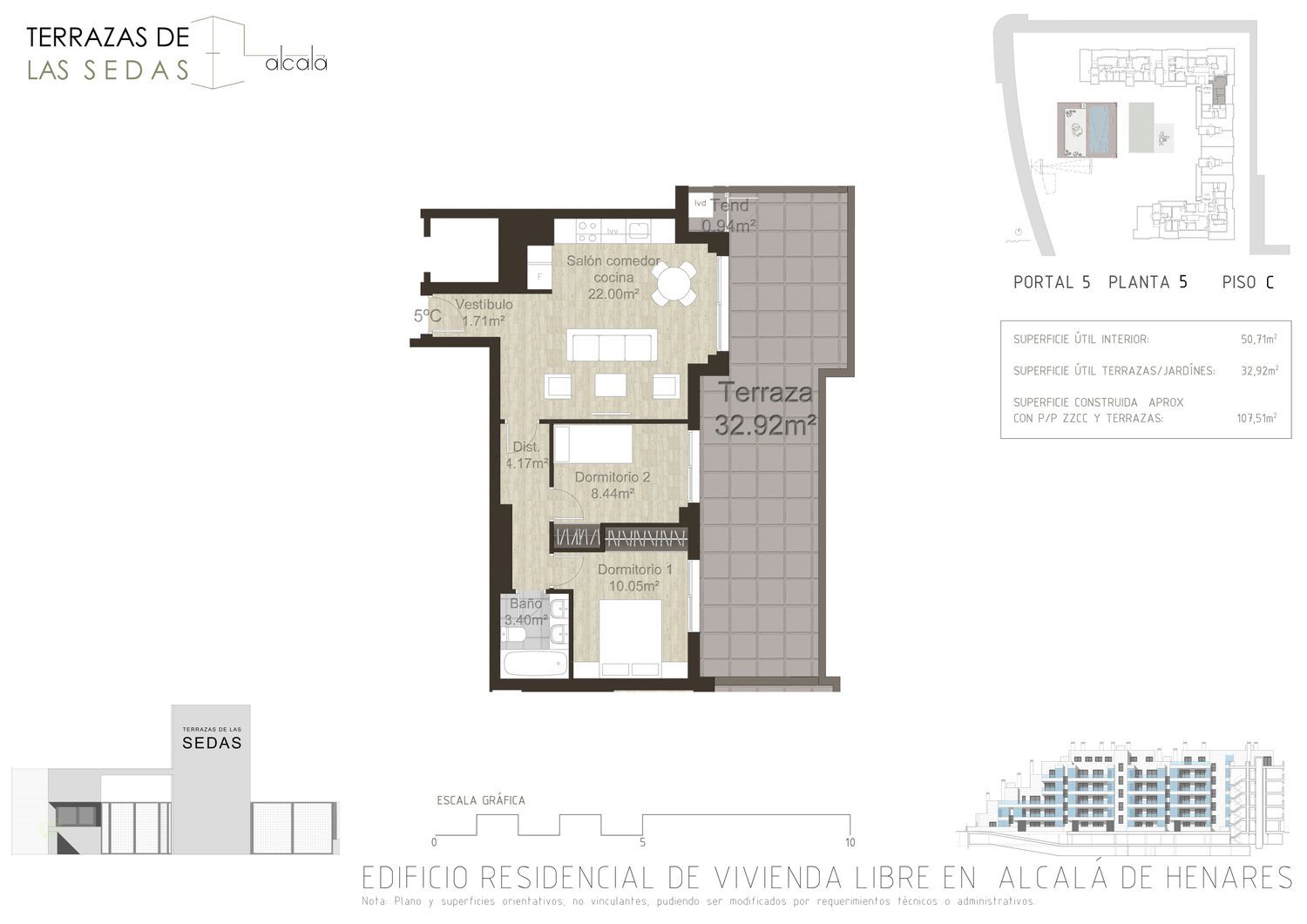 Terrazas de las Sedas, promoción de 133 viviendas ubicada en Las Sedas, Alcalá de Henares.Esta promoción incluye viviendas de 2, 3 y 4 dormitorios con terraza, así como una gran cantidad de Áticos y bajos con grandes terrazas y jardines. Las viviendas de esta promoción destacan por su luminosidad y ventilación, gracias al hecho de ser pasantes y tener varias orientaciones. El precio de la vivienda incluye una plaza de garaje y un trastero. Hay opción de comprar una segunda plaza de garaje por 11.500€. El edificio destaca por su arquitectura aterrazada y su fachada ventilada de piedra, combinada con balcones acristalados, dejando espaciosas zonas comunitarias, entre las que destacan la piscina con un jardín de césped natural, pista de pádel, zona de juegos infantil, gimnasio equipado y sala de co-working equipada. Un montón de jardineras por todas las zonas comunes, que ayudan a dar intimidad y a refrescar el ambiente. Las Sedas se sitúa al norte del término municipal de Alcalá de Henares. Este proyecto cierra el perímetro de la ciudad, interconectando su periferia con el casco urbano, Universidad de Alcalá, Hospital Príncipe de Asturias, Centro Deportivo del Atlético de Madrid… Con las mejores conexiones, por trenes de cercanías y autovías. A 5 minutos del Centro de Alcalá, 14 minutos del aeropuerto y a 24 minutos del centro de Madrid. En Las Sedas la vida se moverá entre zonas verdes, senderos urbanos y puntos de cohesión vecinal y su gran plaza.