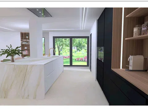 Pierwsze piętro skrywa dwa dodatkowe sypialnie, każda z łazienką oraz garderobą. Dodatkowy atut stanowi dzielony patio wewnętrzny, wzbogacający urok tej wyjątkowej nieruchomości. Każde z drzwki wewnętrznych o szerokości 0,82 cm zostały zaprojektowane z myślą o wygodnym dostępie dla osób z ograniczoną mobilnością czy rodziców z wózkami. Dopełnieniem jest ogrzewanie podłogowe oraz system chłodzenia bazujący na aerotermii. Okna o podwyższonej odporności wyposażono w podwójną taflę szkła z nowoczesnymi rozwiązaniami cieplnymi i akustycznymi.