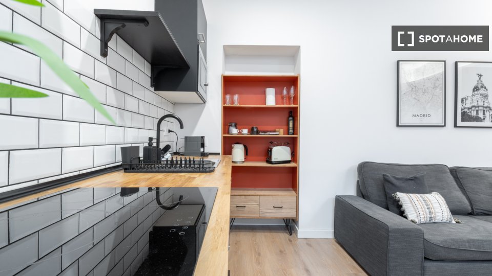 Odkryj ten 1-pokojowy apartament dostępny w madryckiej dzielnicy Palacio. Apartament jest w pełni umeblowany i wyposażony w centralną klimatyzację, ogrzewanie elektryczne oraz w pełni wyposażoną kuchnię z piekarnikiem. Palenie jest dozwolone, a zwierzęta są akceptowane, choć obowiązują pewne ograniczenia. Dodatkowo, wszystkie rachunki, w tym za prąd, wodę, gaz i Wi-Fi, są wliczone w czynsz. Ta nieruchomość została sprawdzona przez Spotahome.
